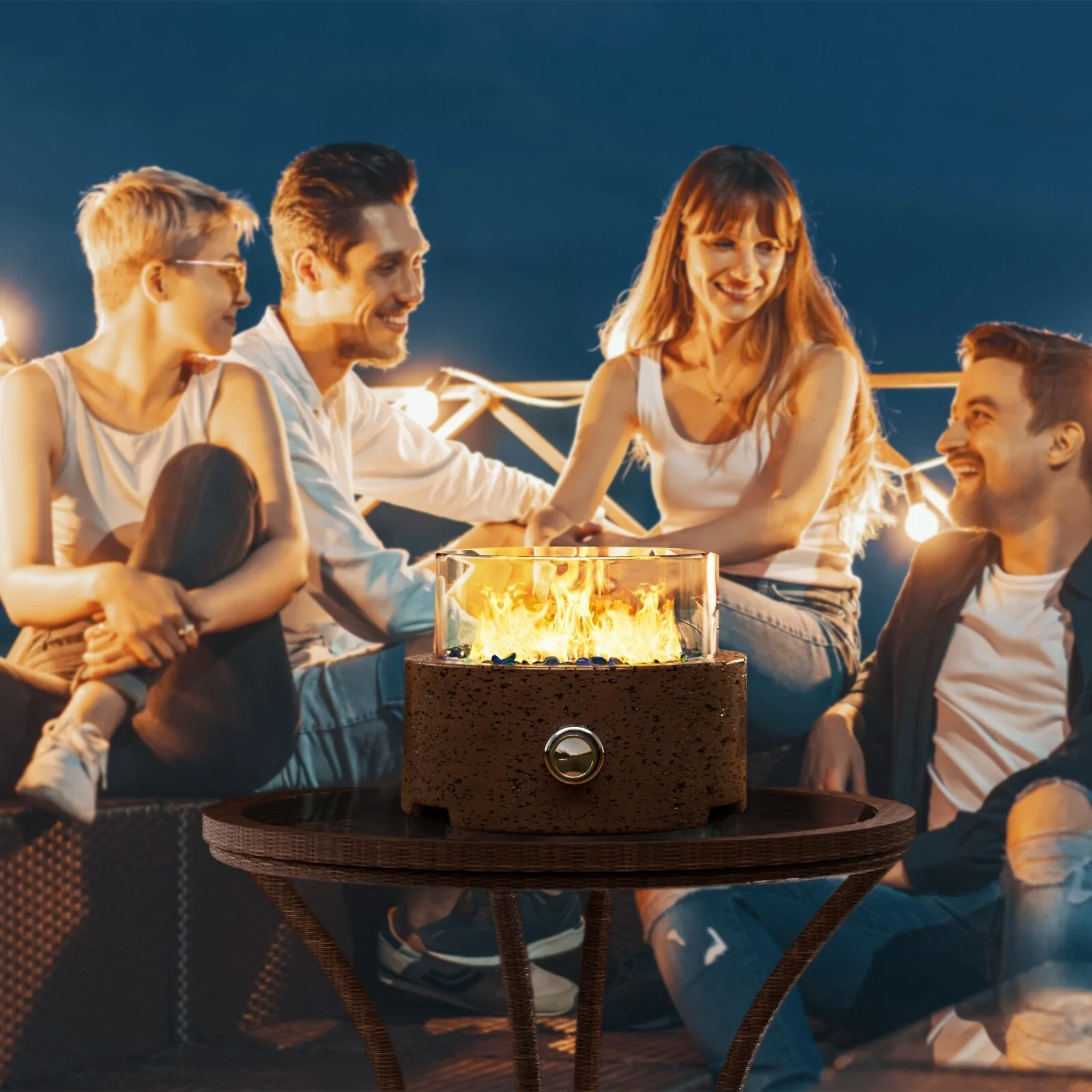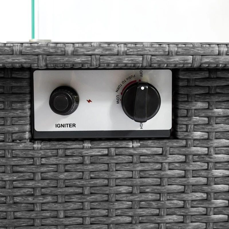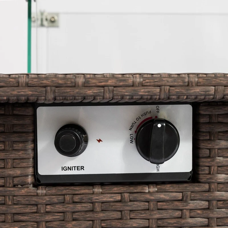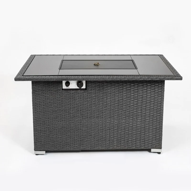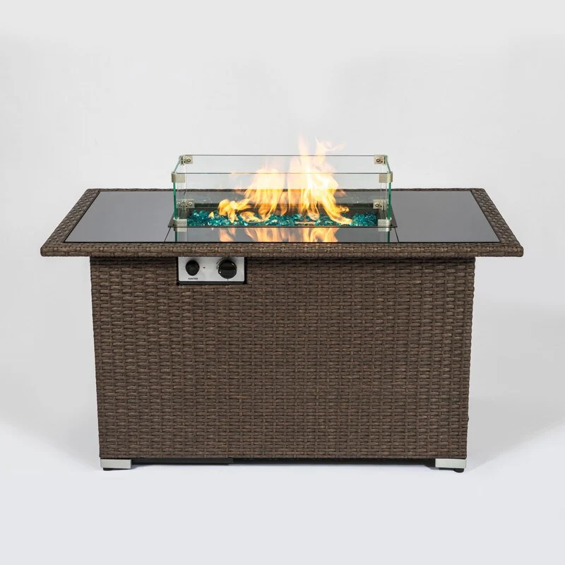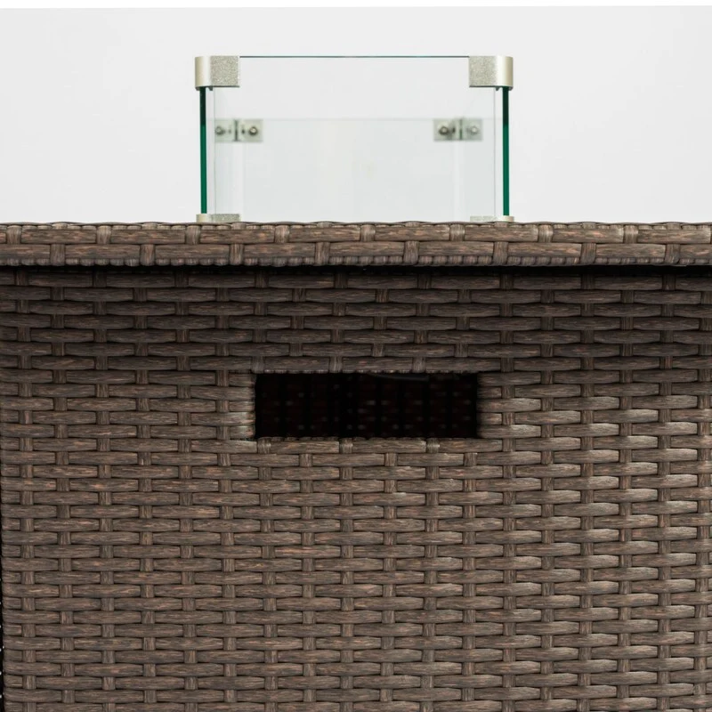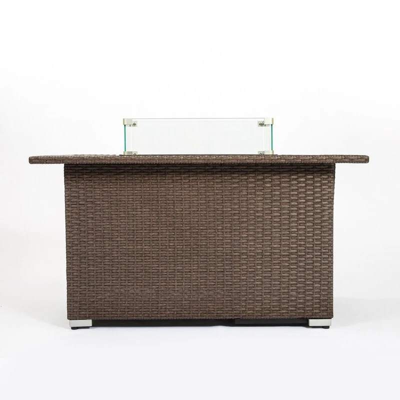 GDFStudio - Verona Outdoor Rattan Gas Fire Table with Ceramic Tile Tabletop