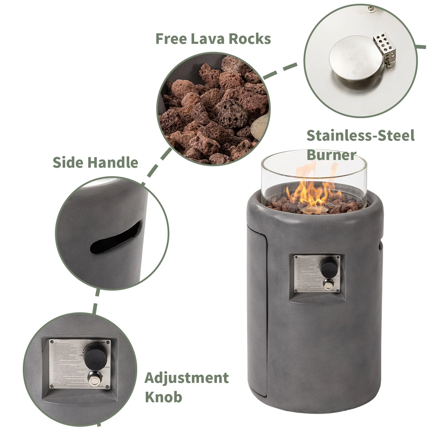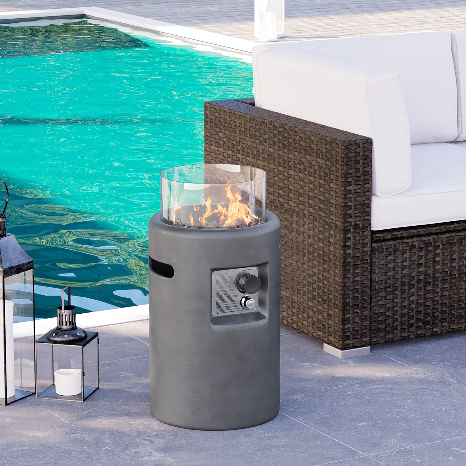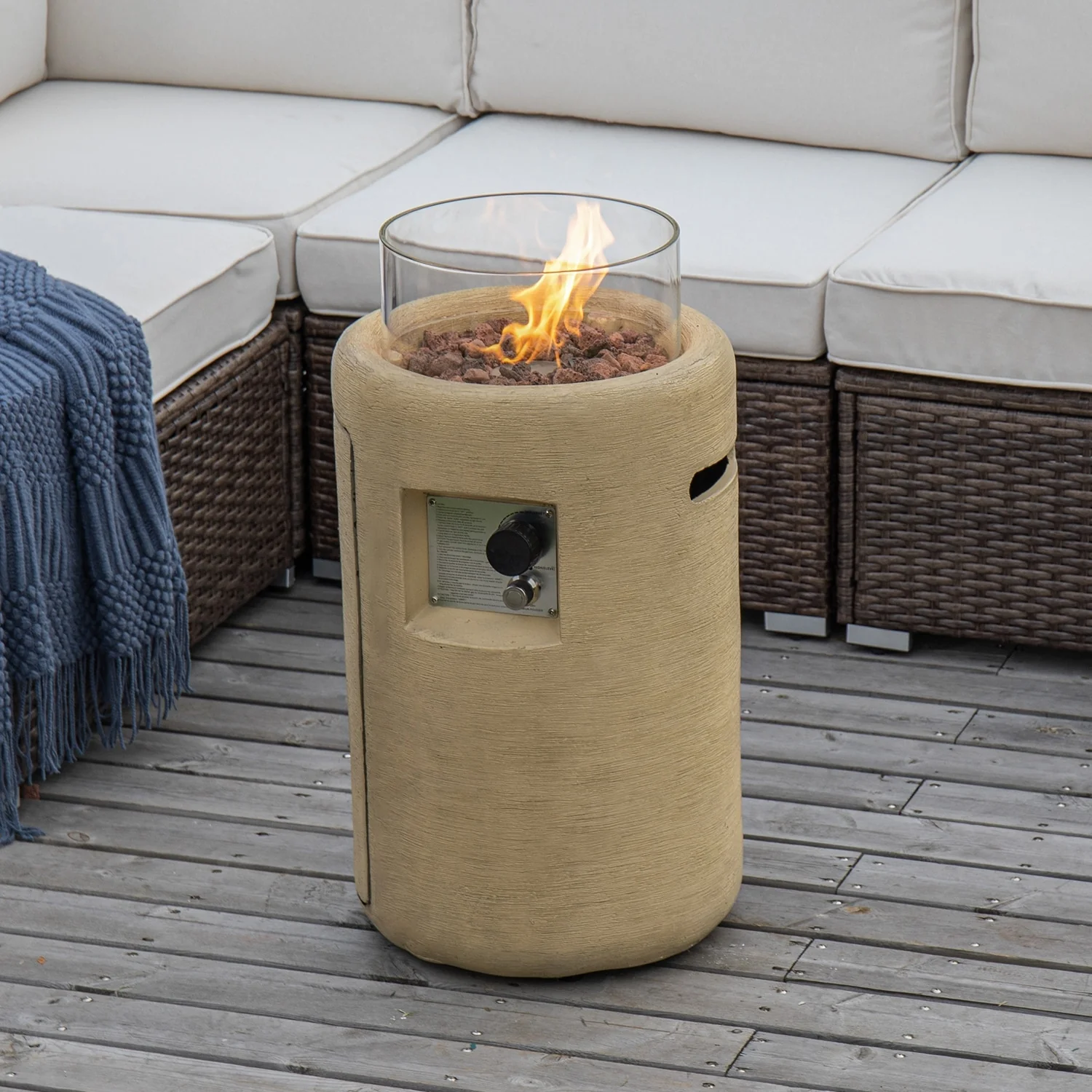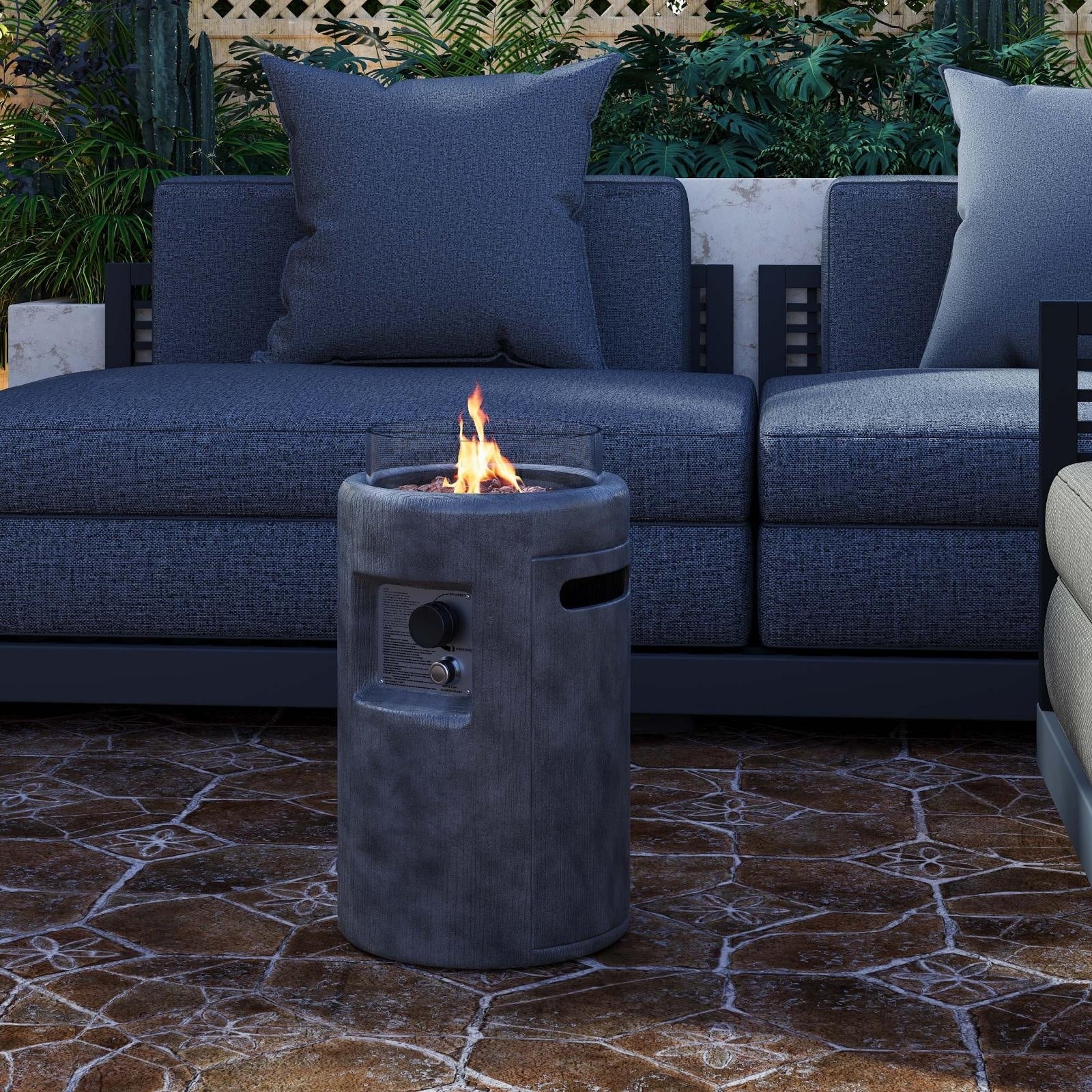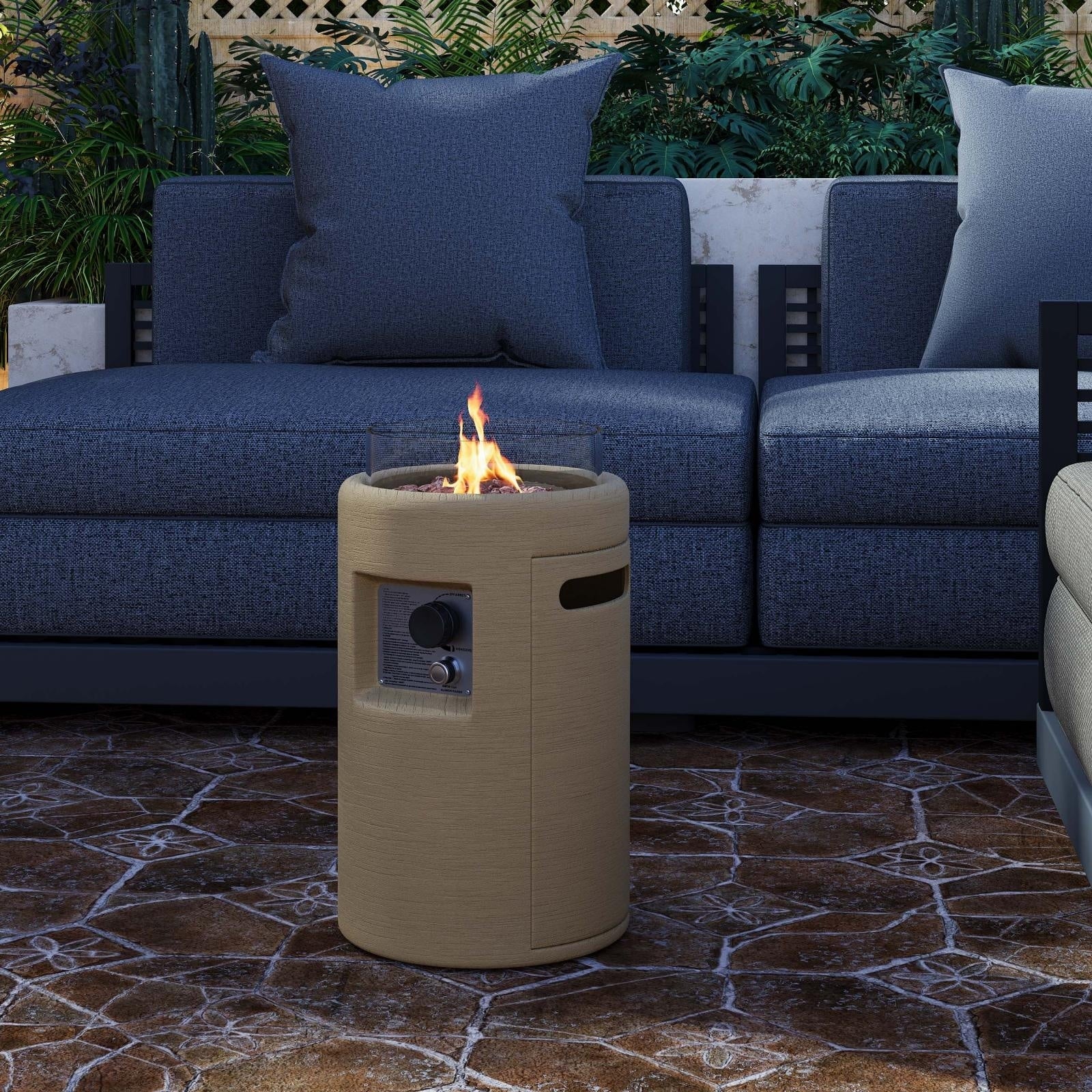 COSIEST 16" Outdoor Column Propane Fire Pit with Glass Wind Guard