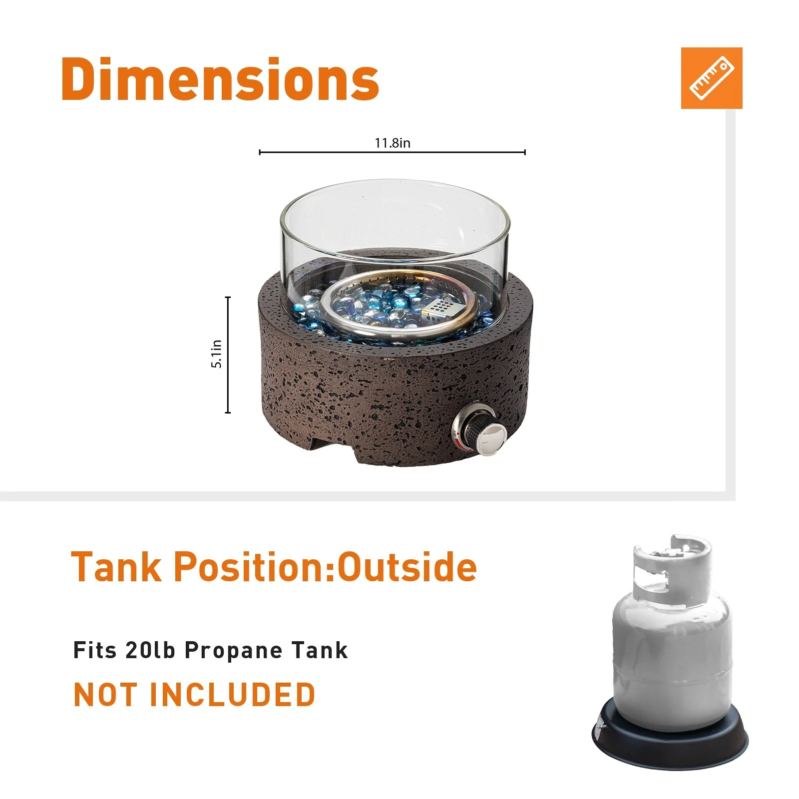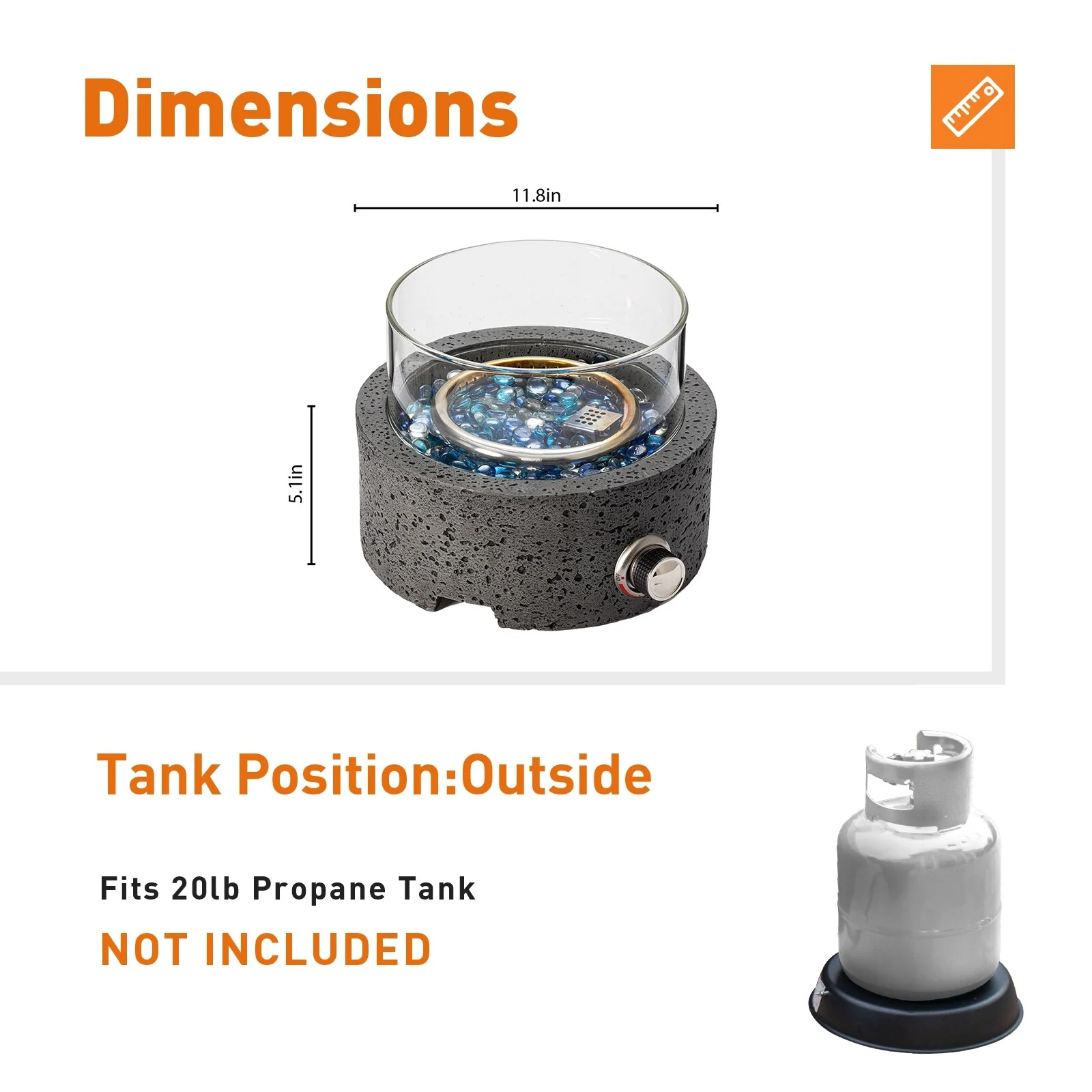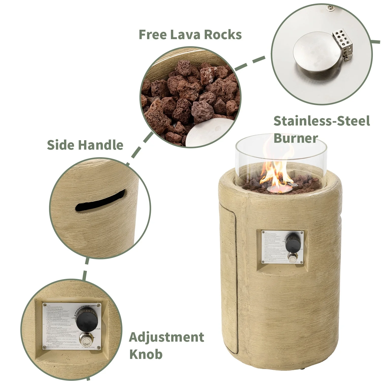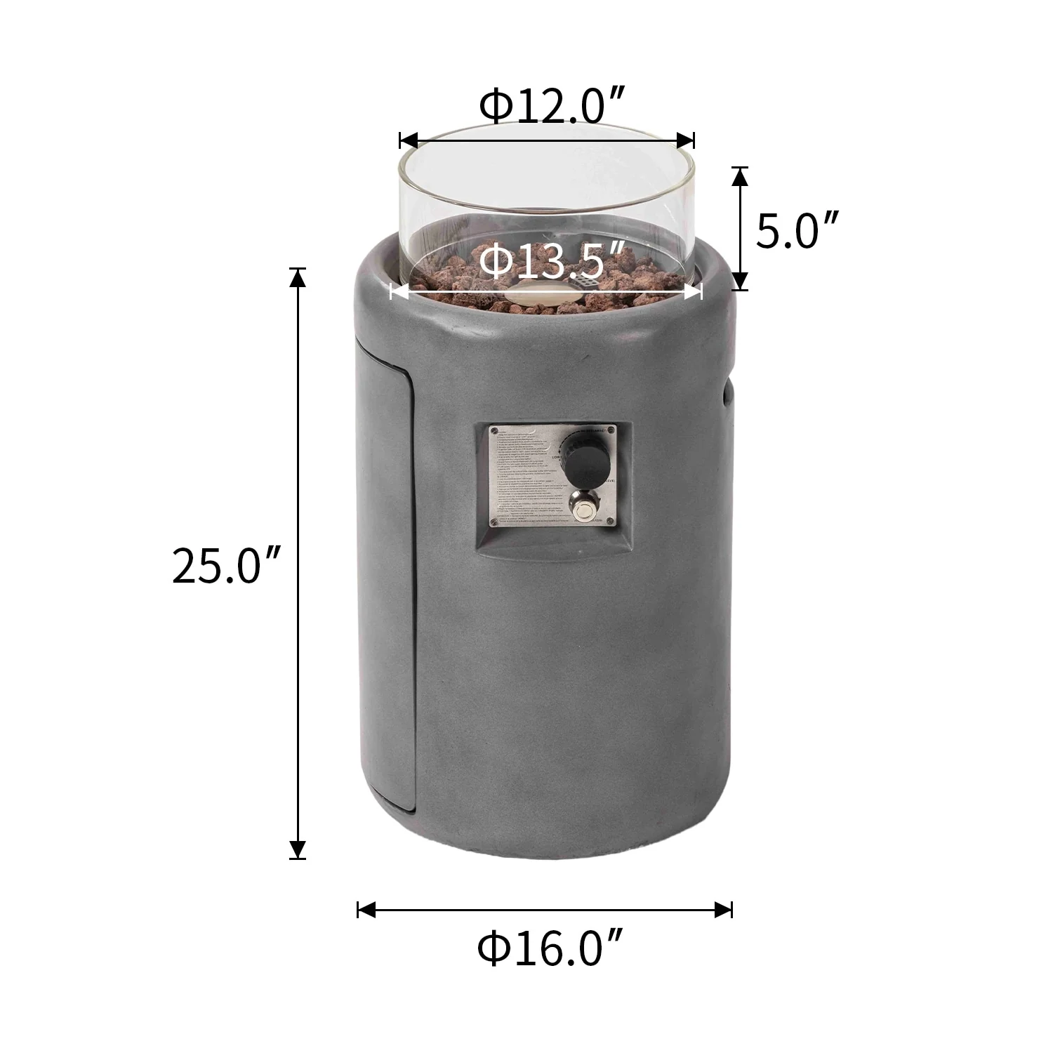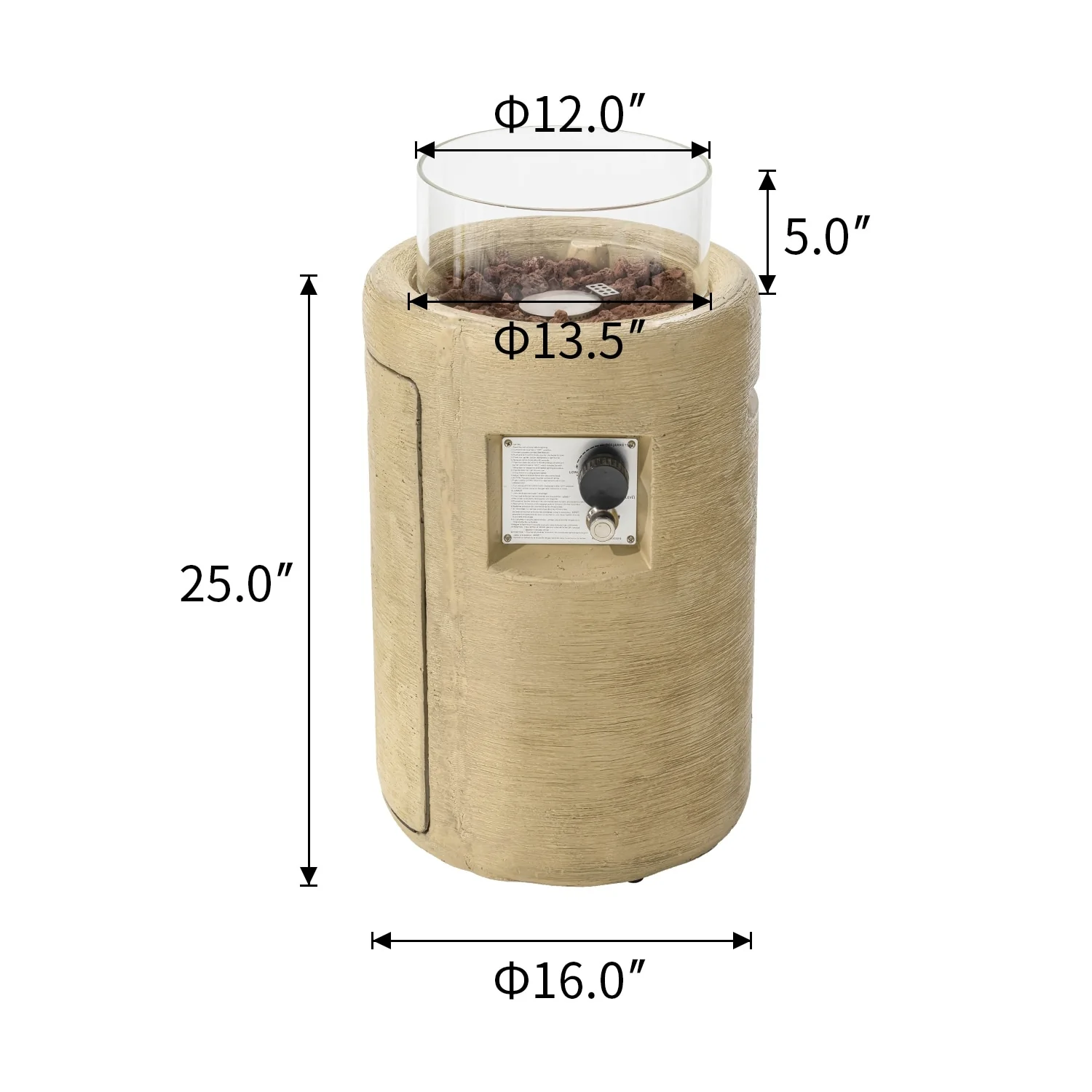 COSIEST 16" Outdoor Column Propane Fire Pit with Glass Wind Guard