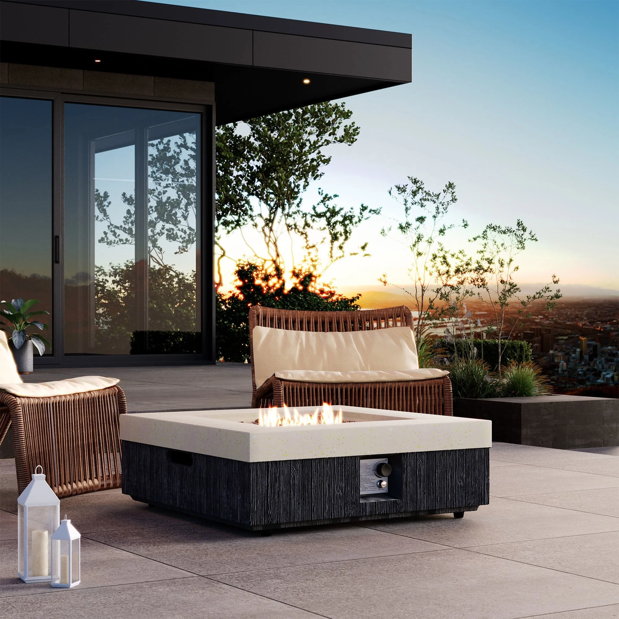 33 in. W x 33 in. D x 24.5 in. H Square Propane Burning Outdoor Fire Pit in Gray