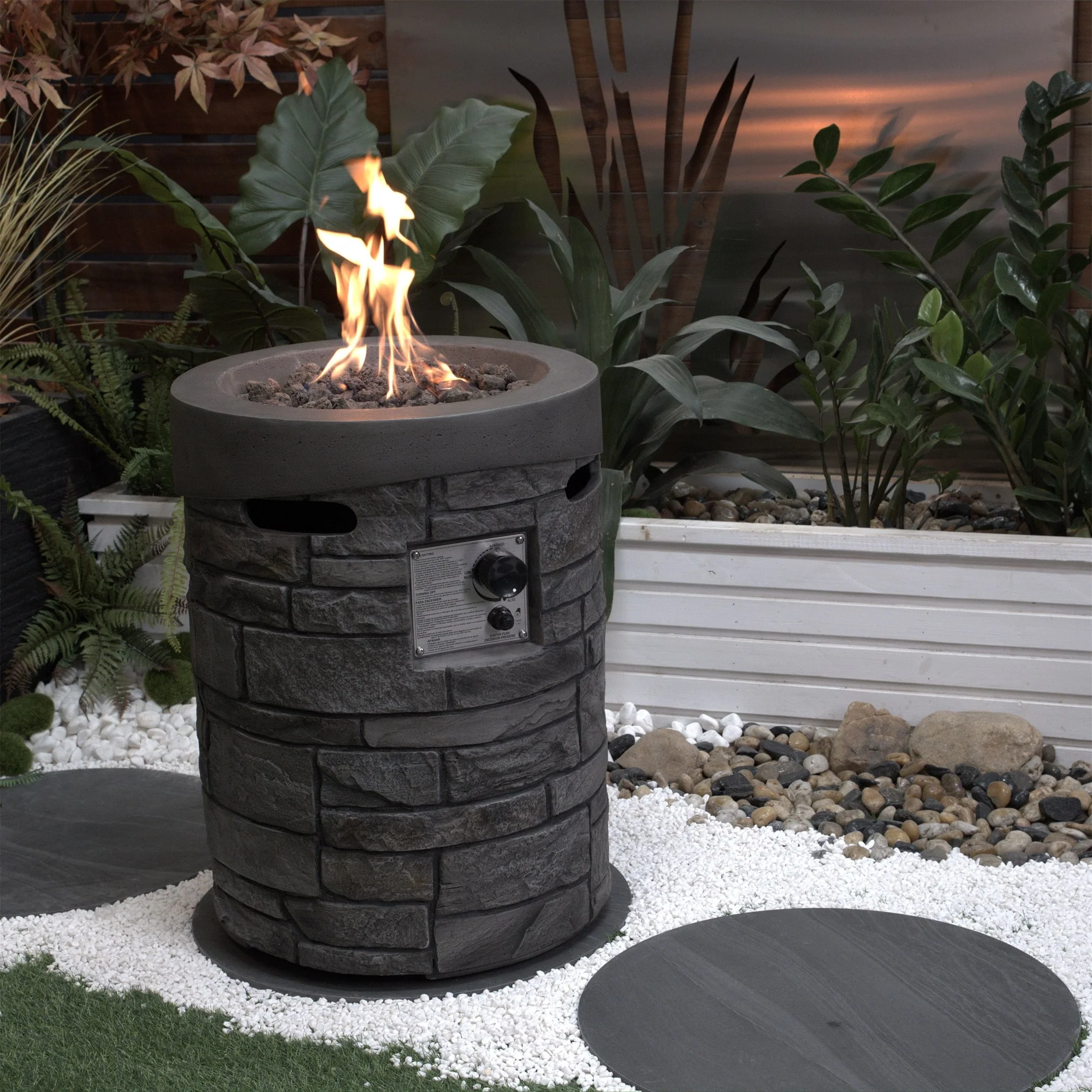 20 in. W x 20 in. D x 26 in. H Round Gas Burning Outdoor Fire Pit in Stone Gray