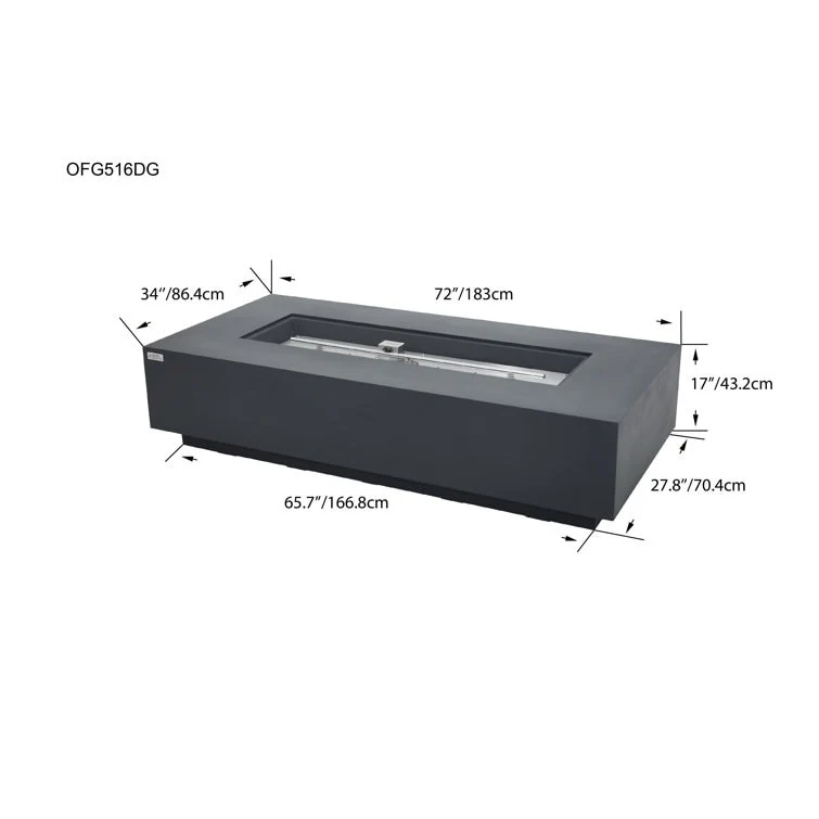 Savanah 72" Rectangular Outdoor Concrete Fire Pit Table by AMS Fireplace