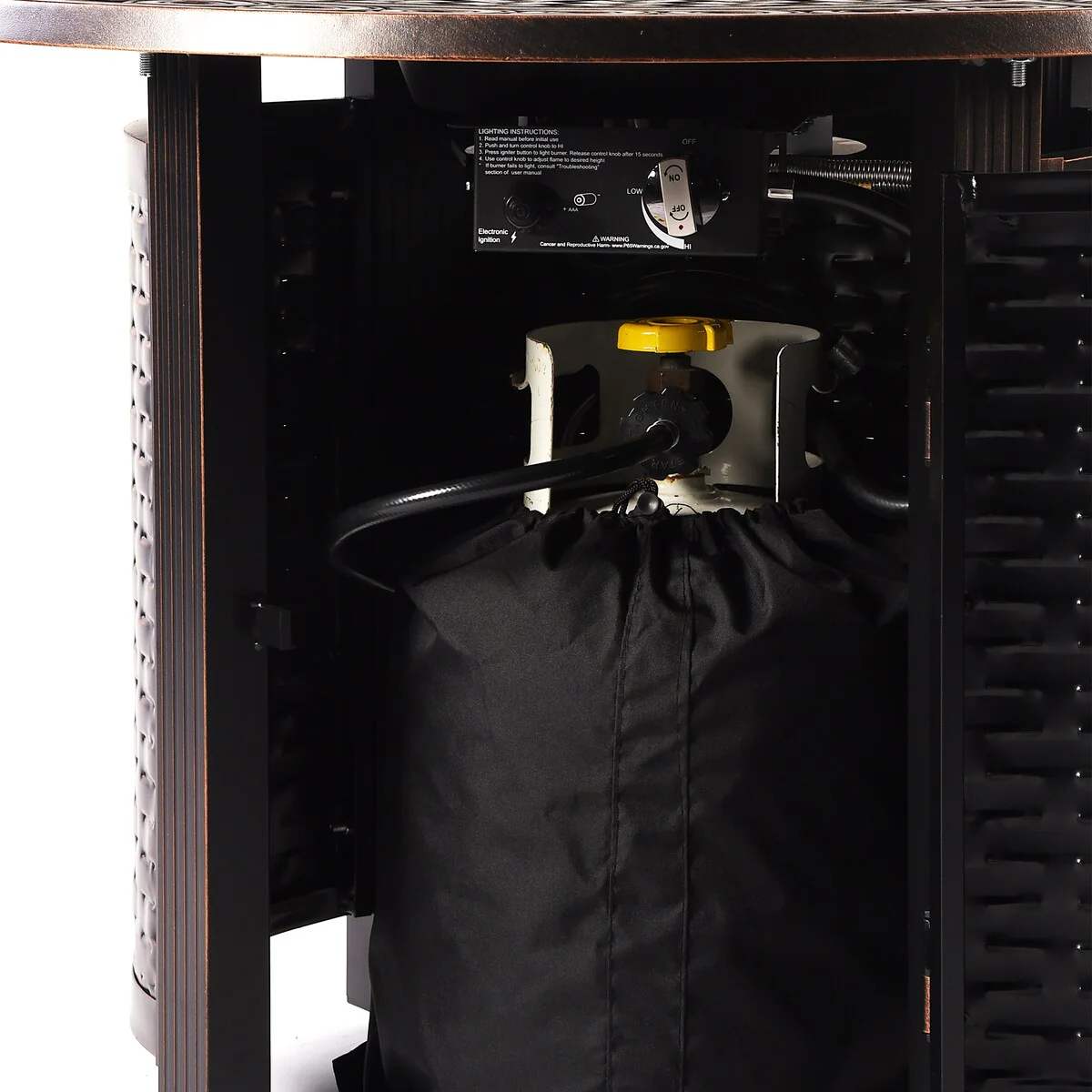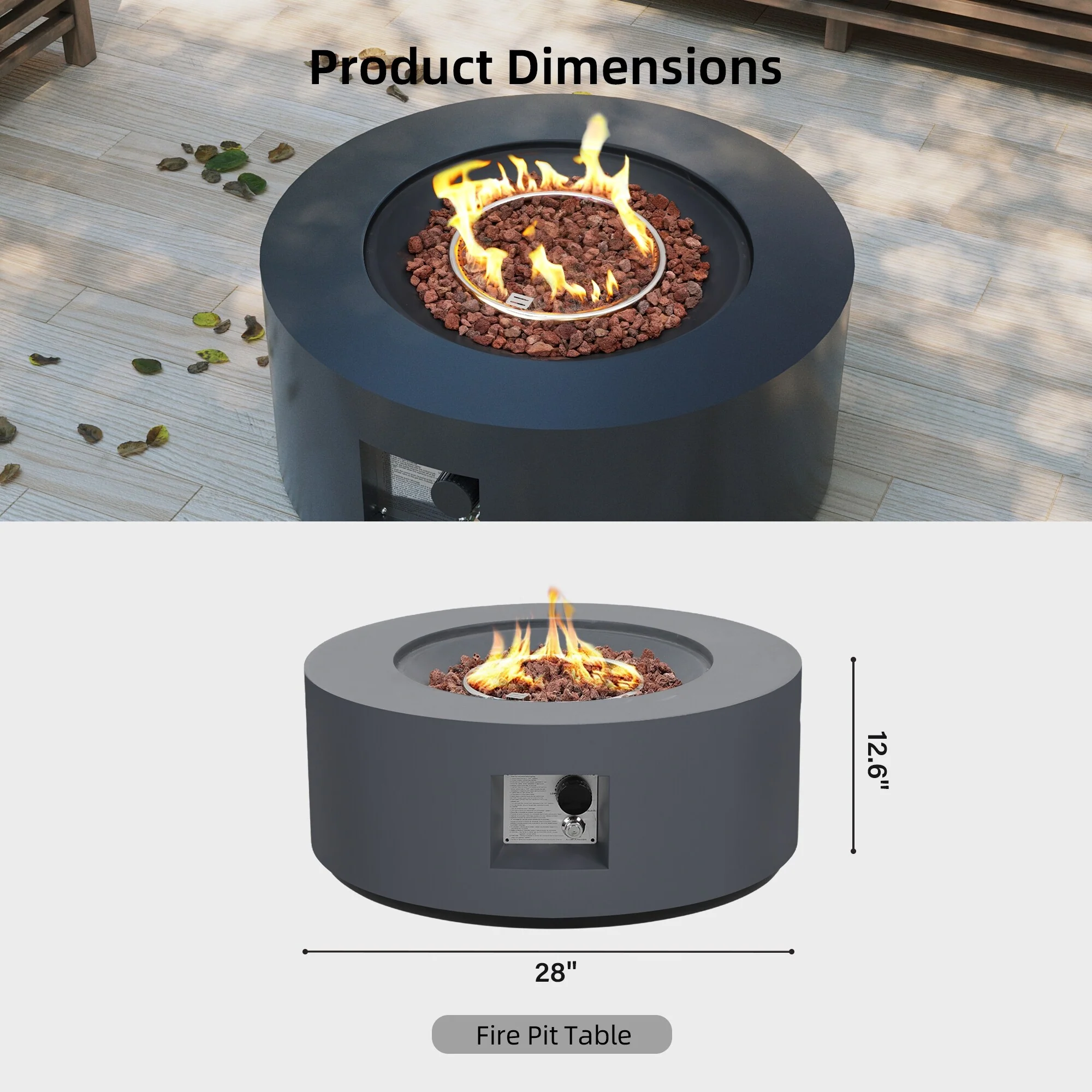 Patio Watcher Outdoor 28in. Round Iron Fire Pit Table with Propane Tank Cover