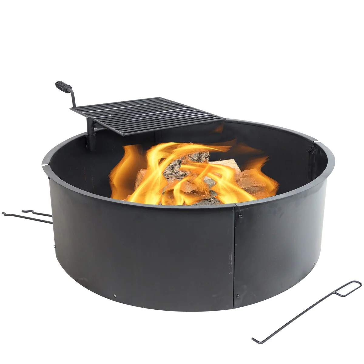34" Steel Fire Pit Ring with Swivel Cooking Grate and Poker