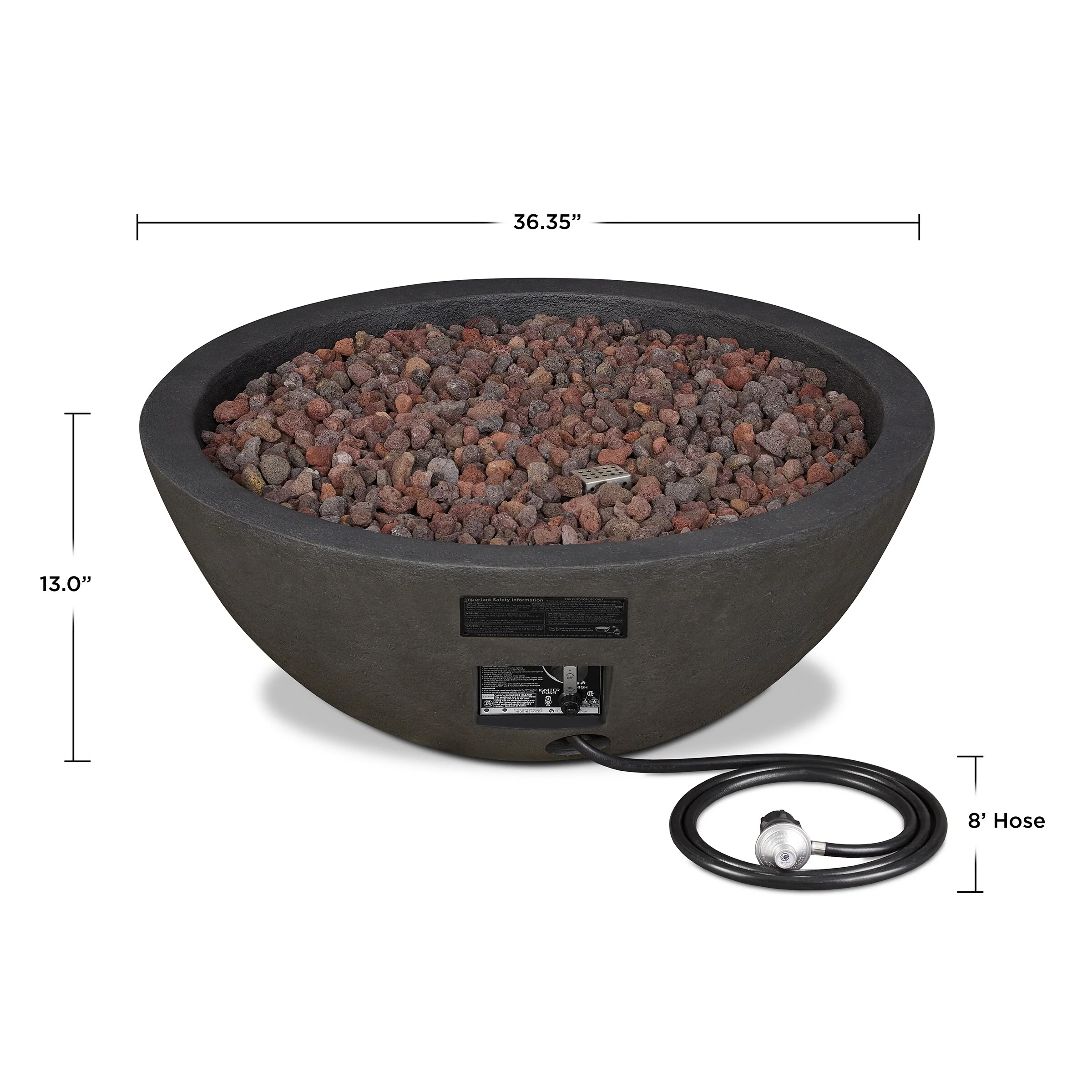 Riverside 36.5" Round Gas Fire Bowl in Shale by Real Flame