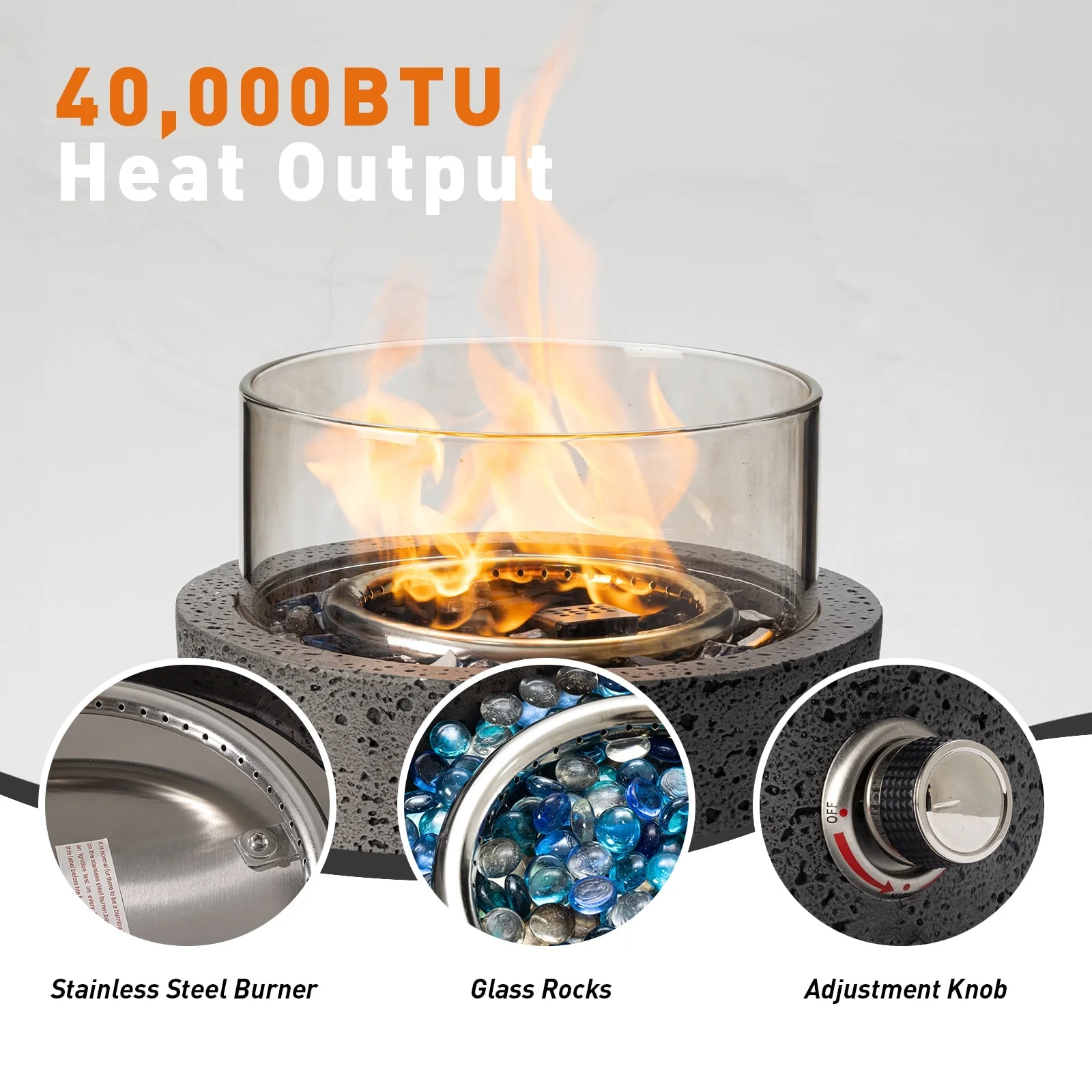 28'' Powder Exterior Faux Stone Propane Fire Pit - 28"