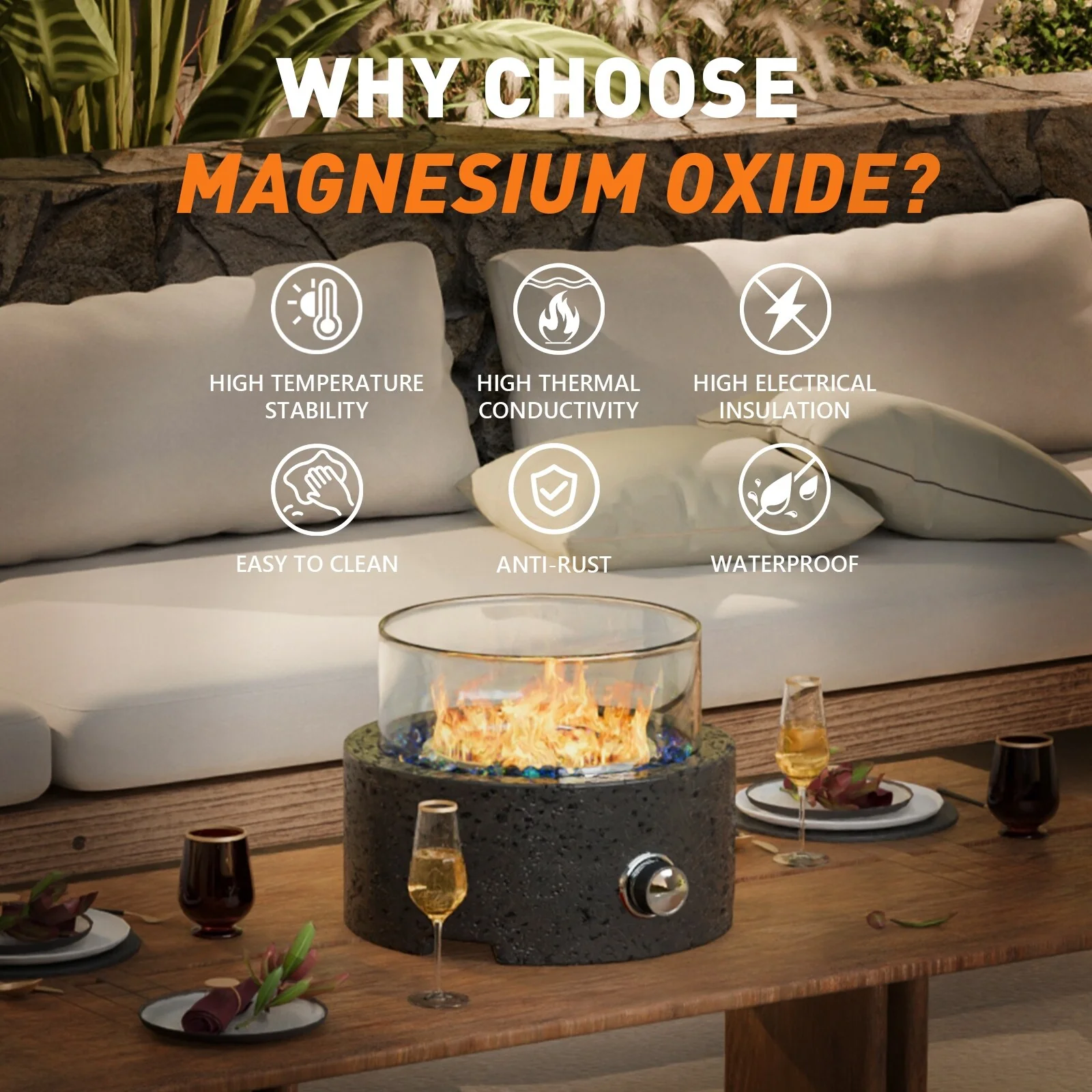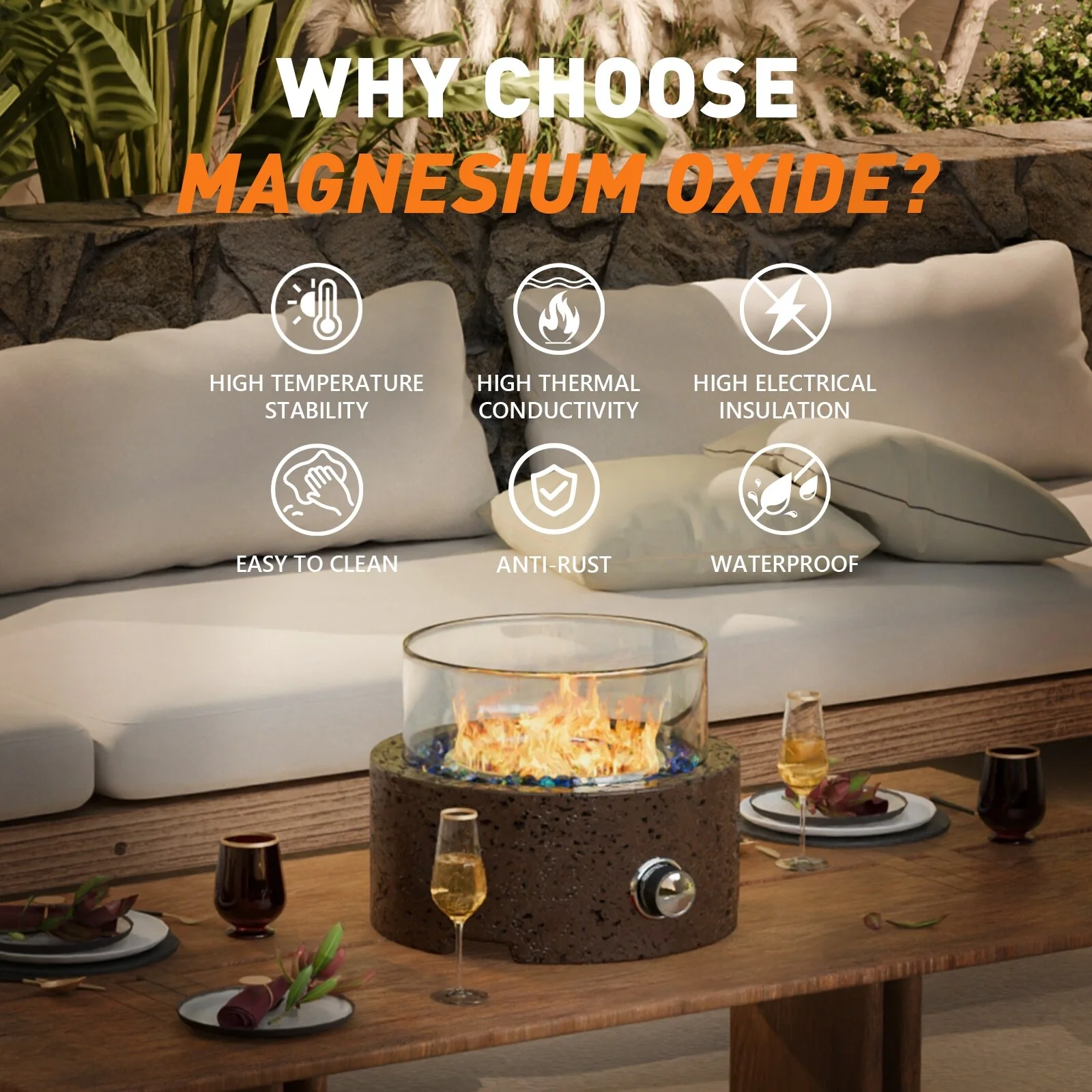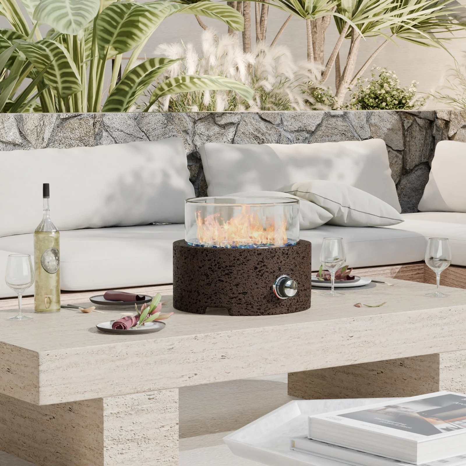 COSIEST Travertine Outdoor Patio Tabletop Fire Pit