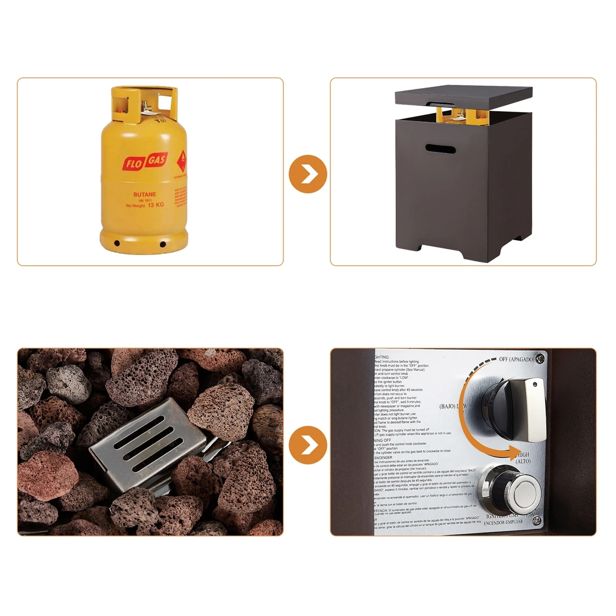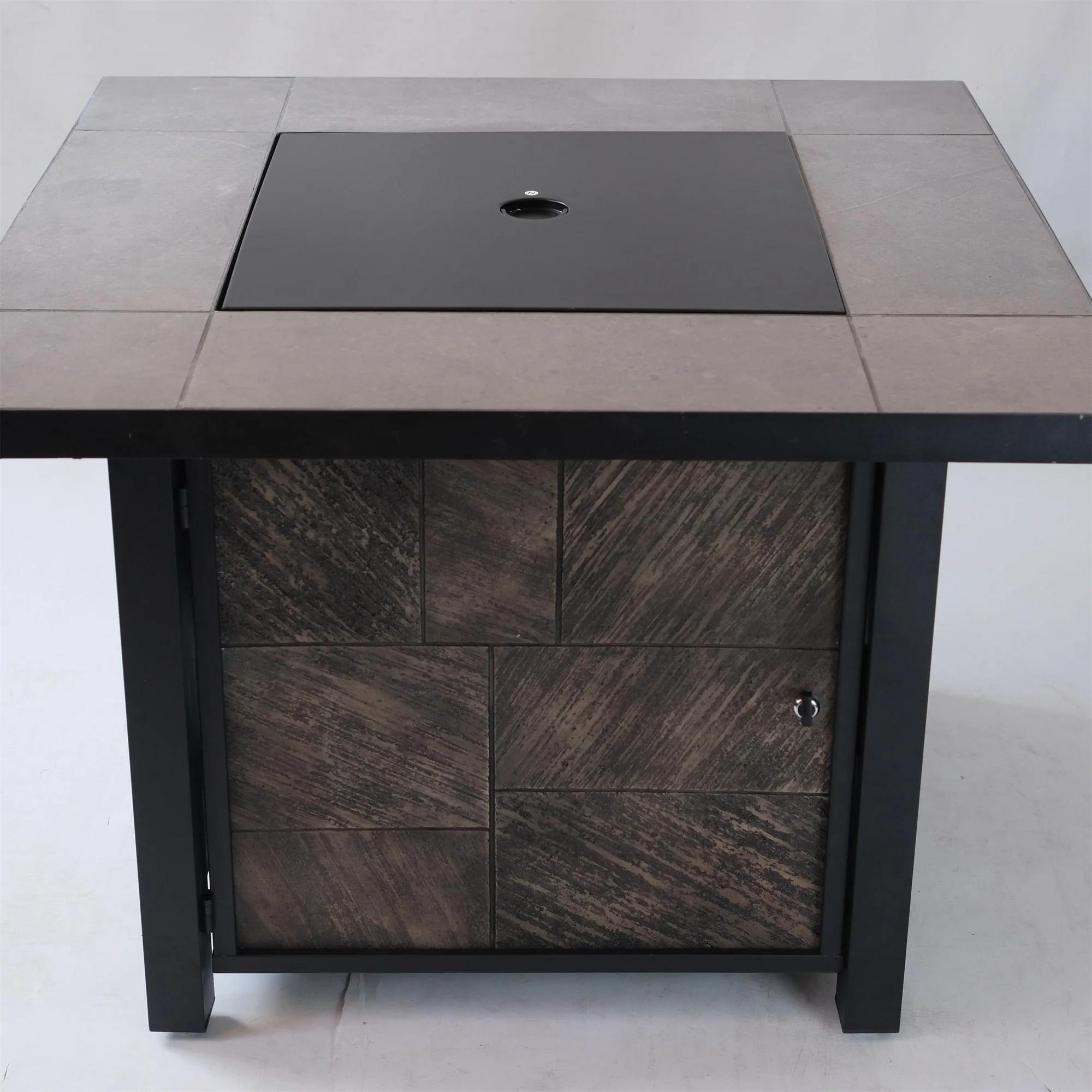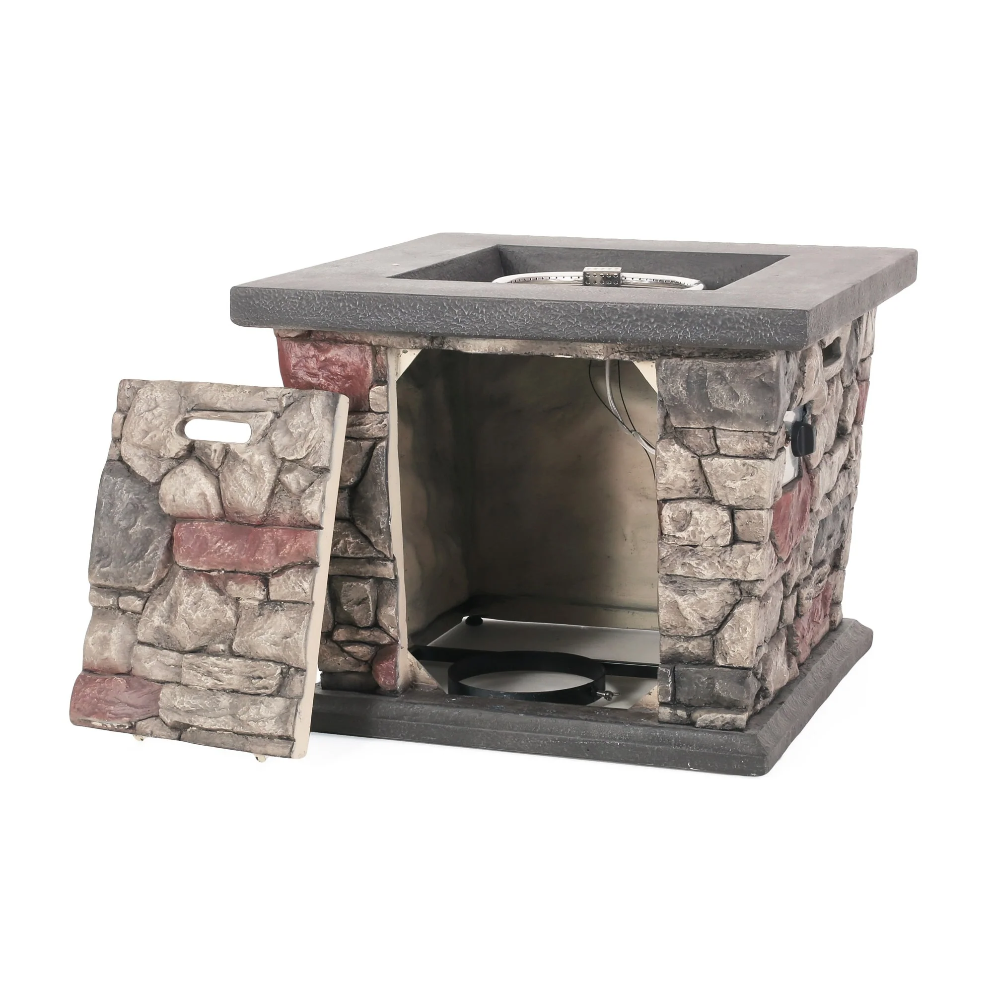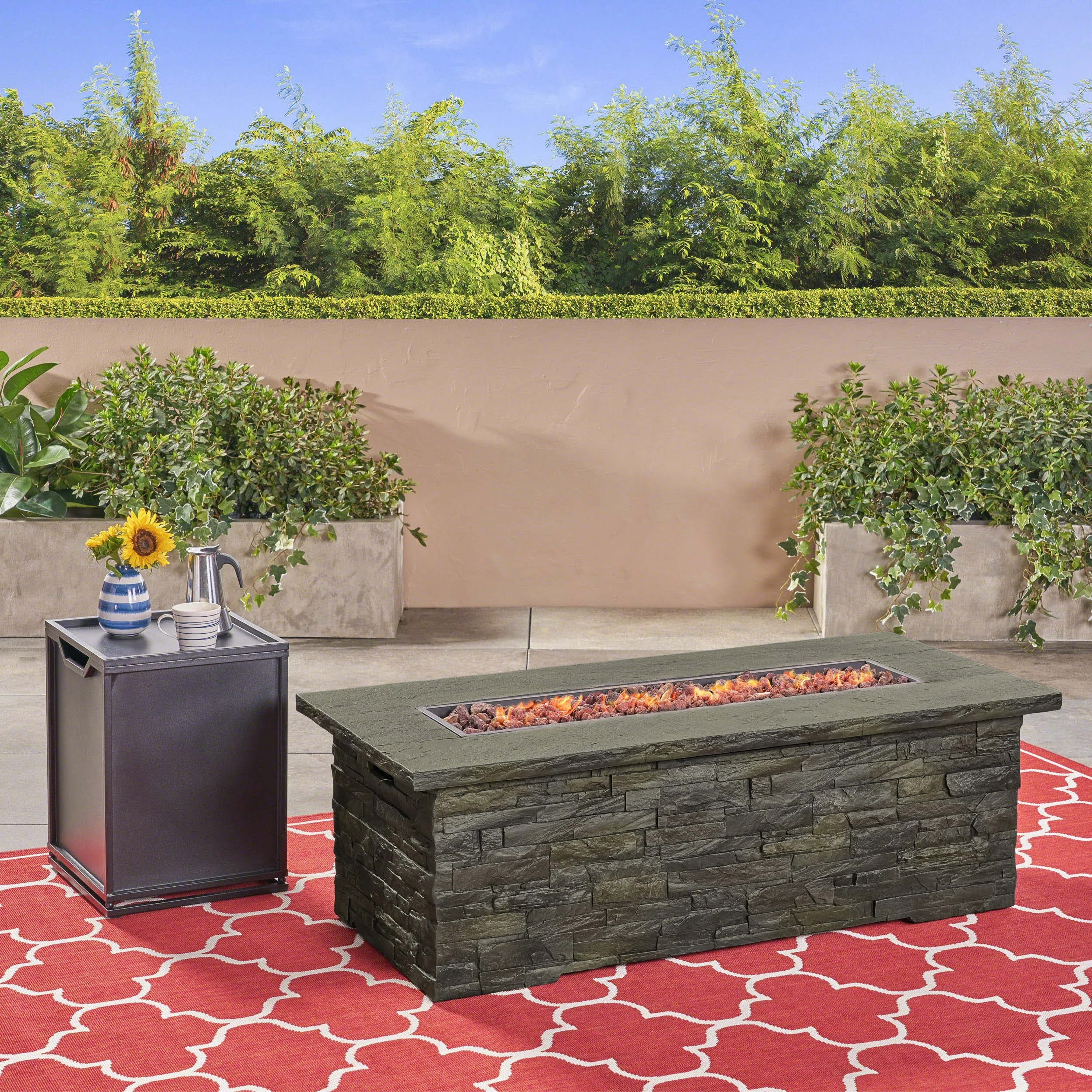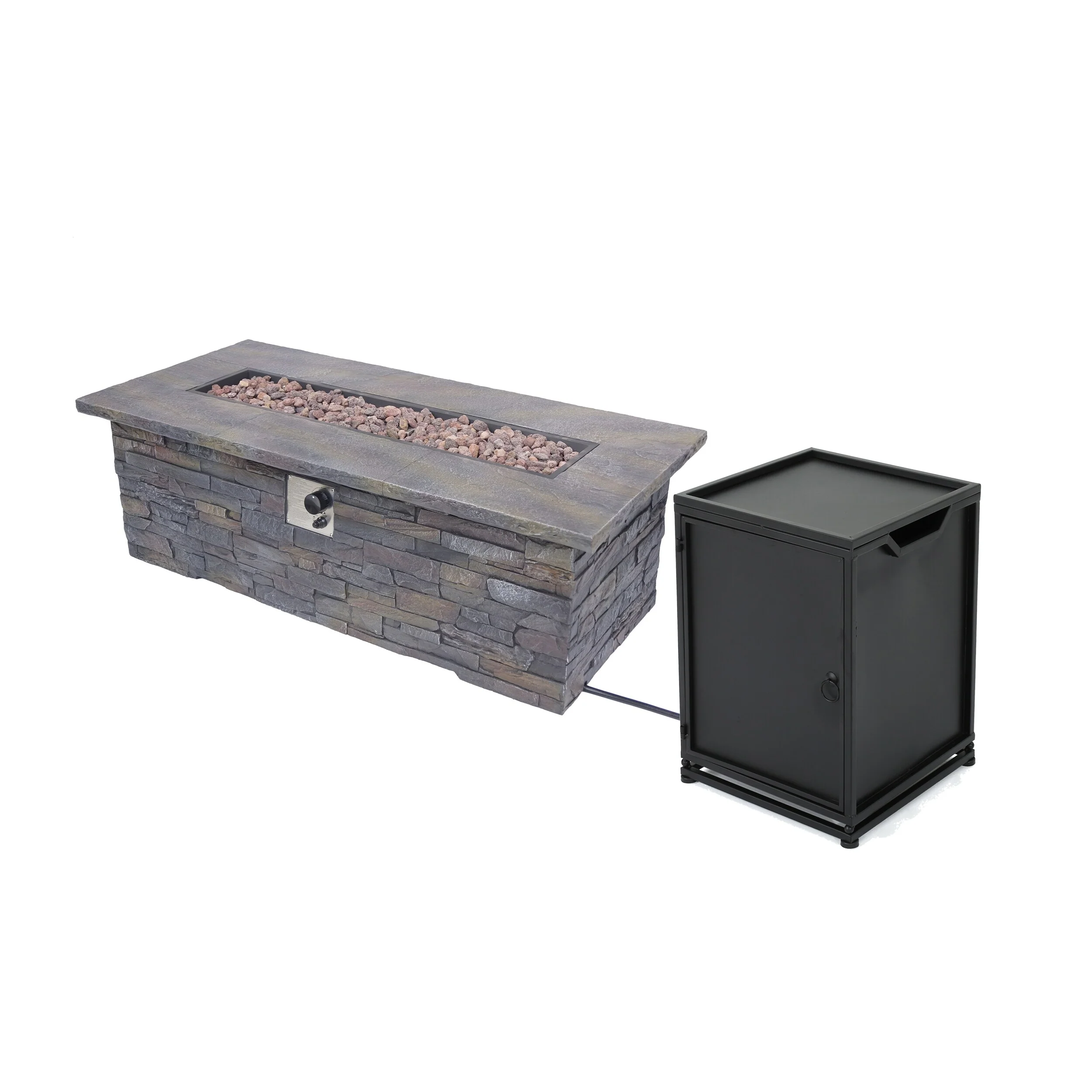 GDFStudio - Mason Combo Outdoor Rectangular Propane Fire Table with Wind Guard and External Tank Holder