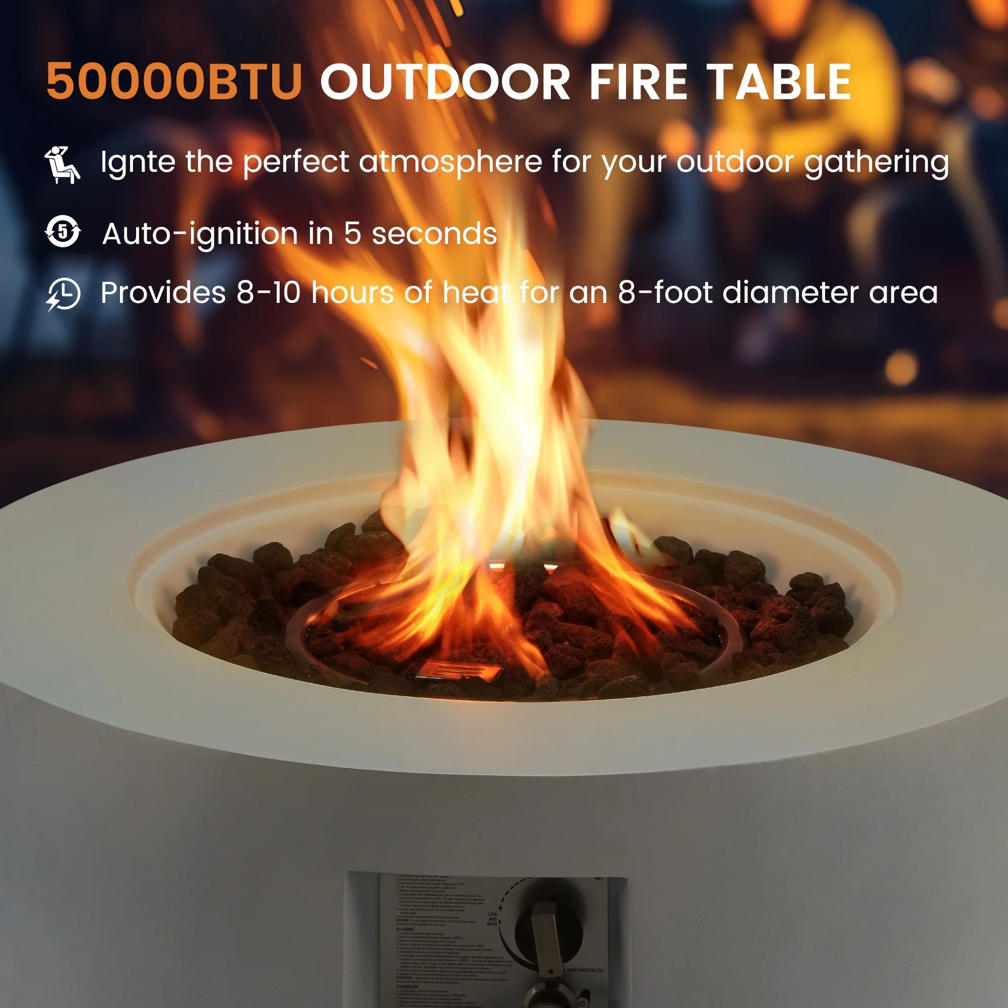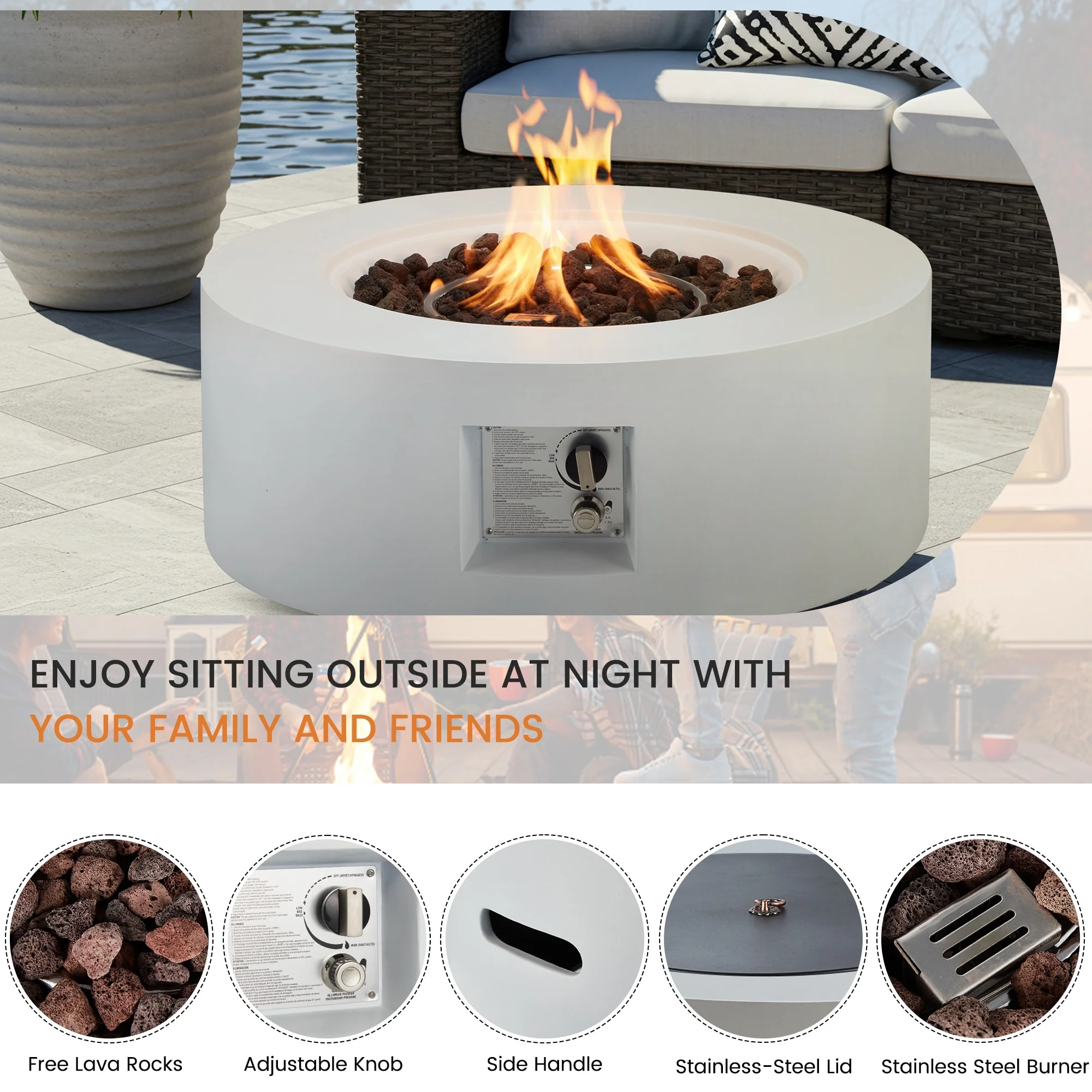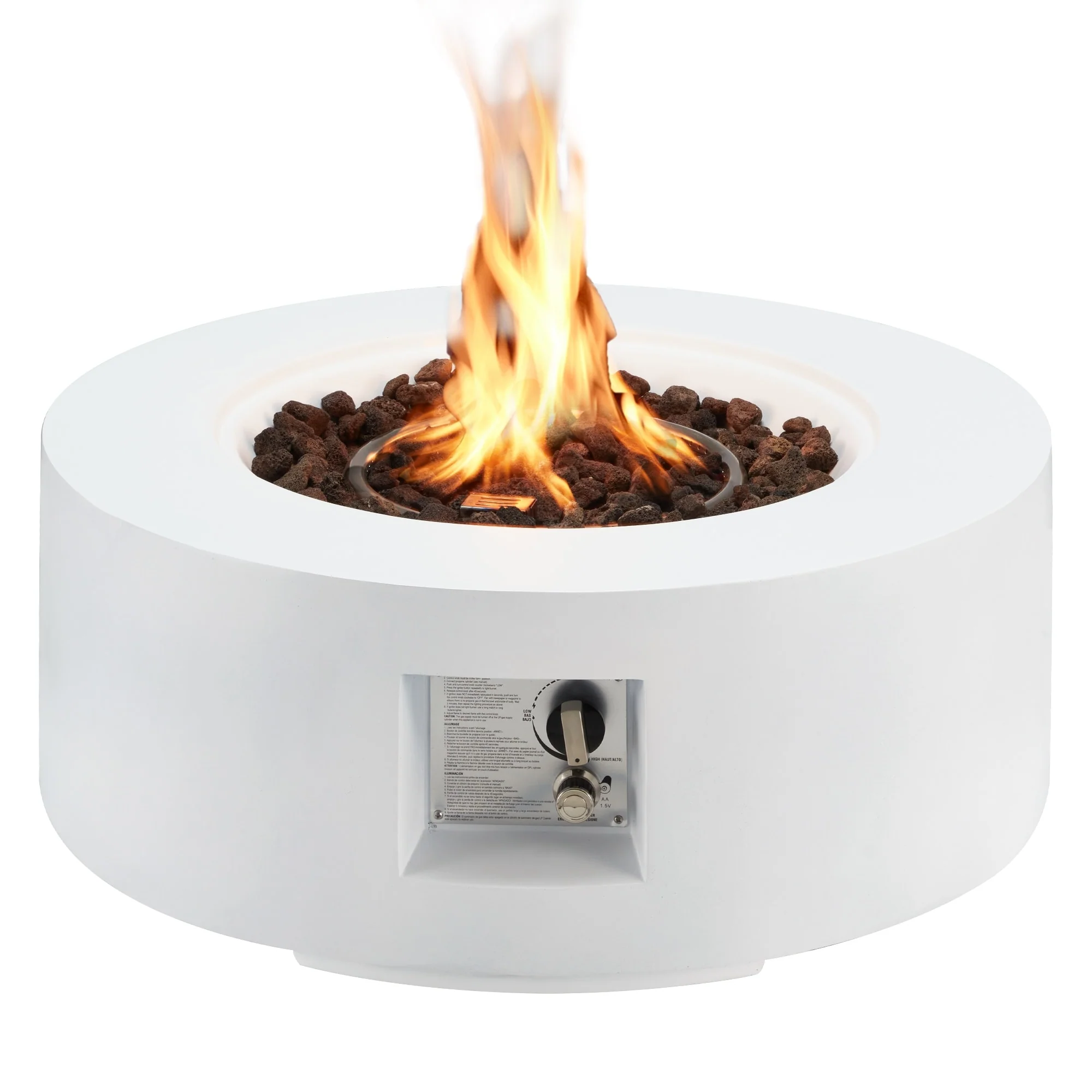 AVAWING 50,000 BTU 30" Outdoor White Round Propane Fire Pit Table and Set (Set Includes Tank Holder)