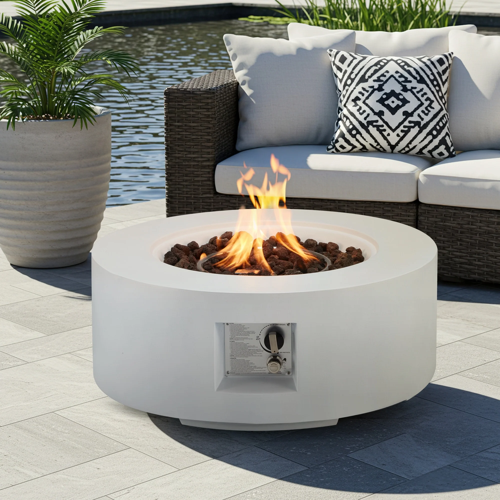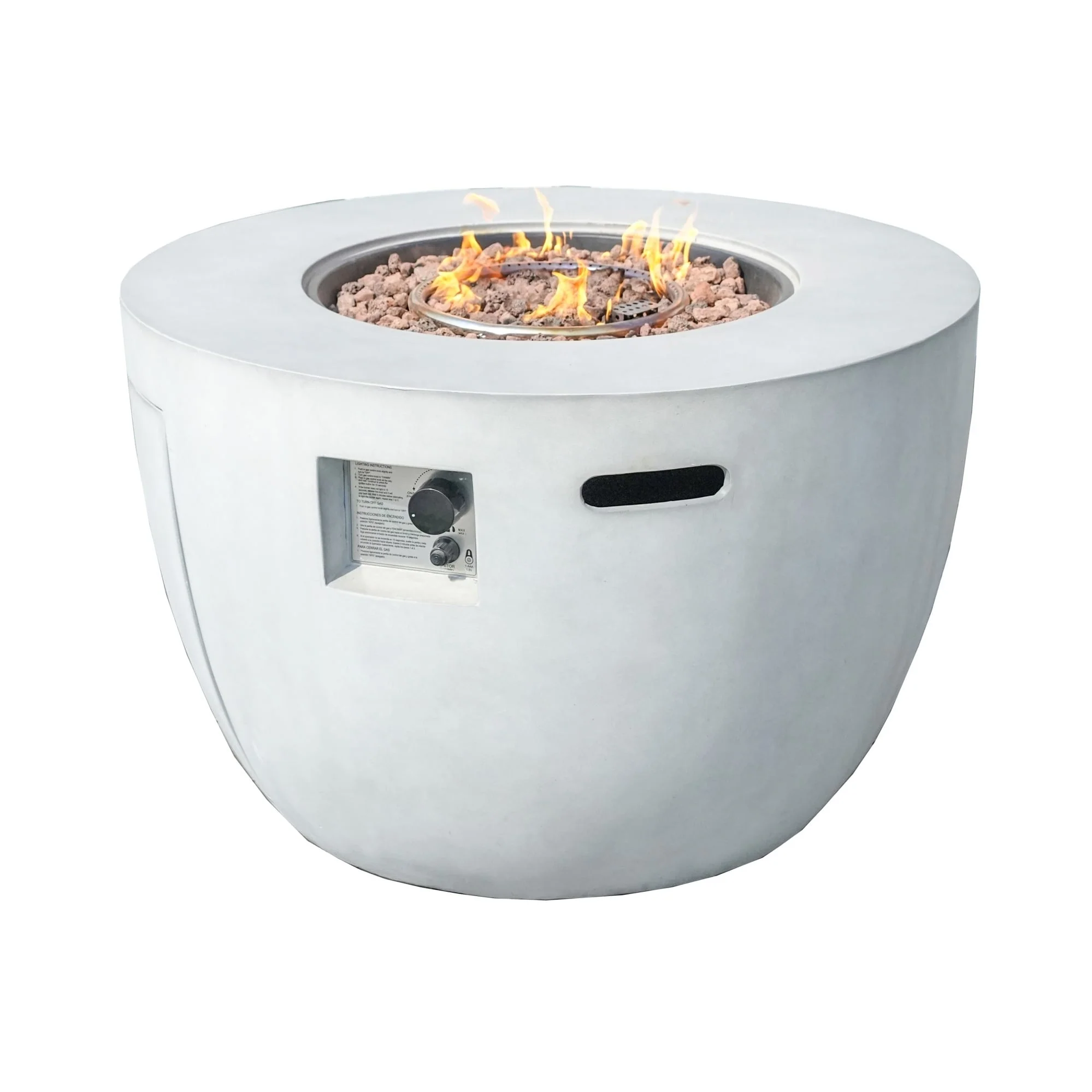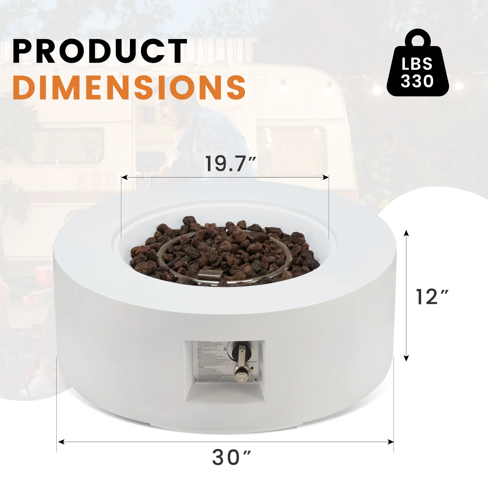AVAWING 50,000 BTU 30" Outdoor White Round Propane Fire Pit Table and Set (Set Includes Tank Holder)