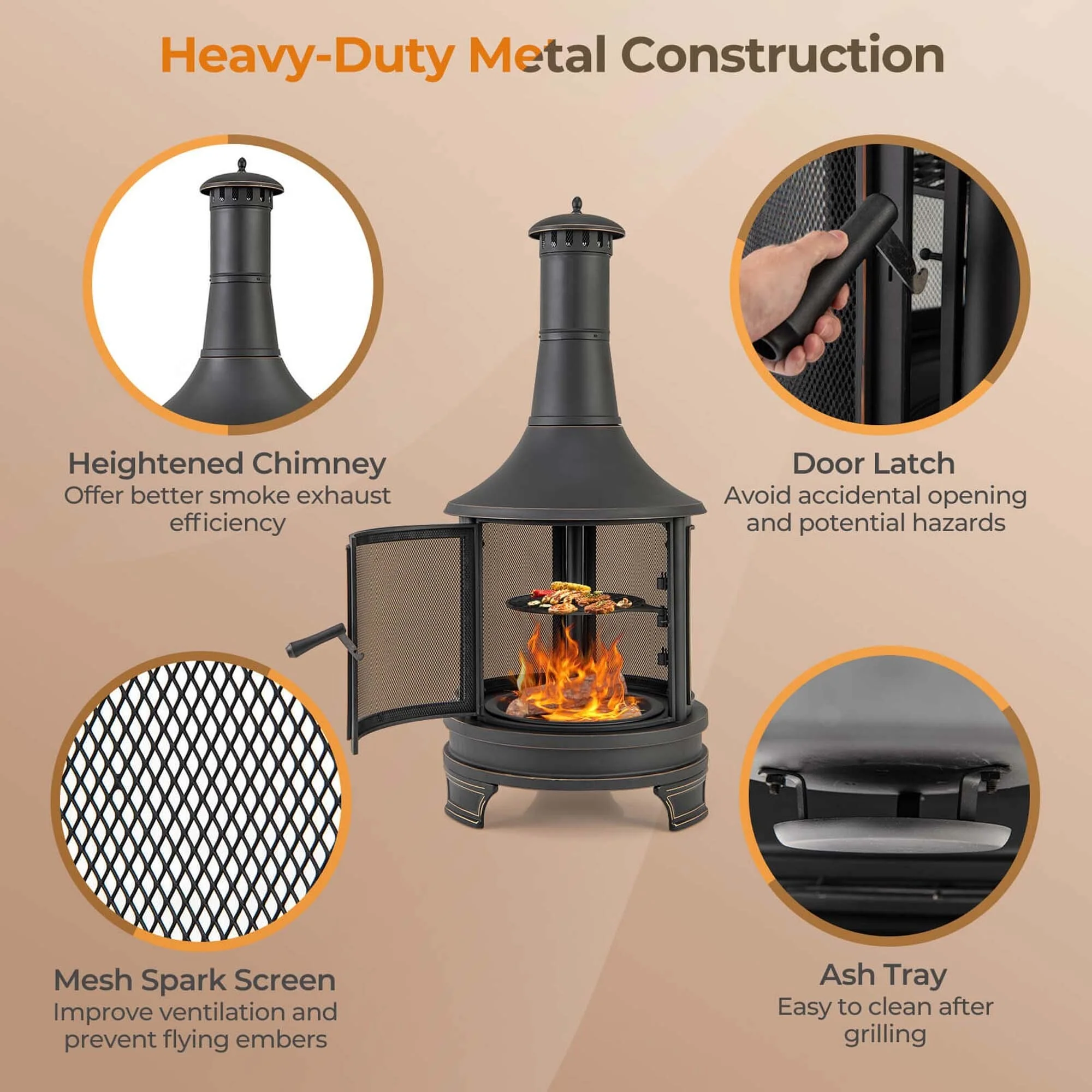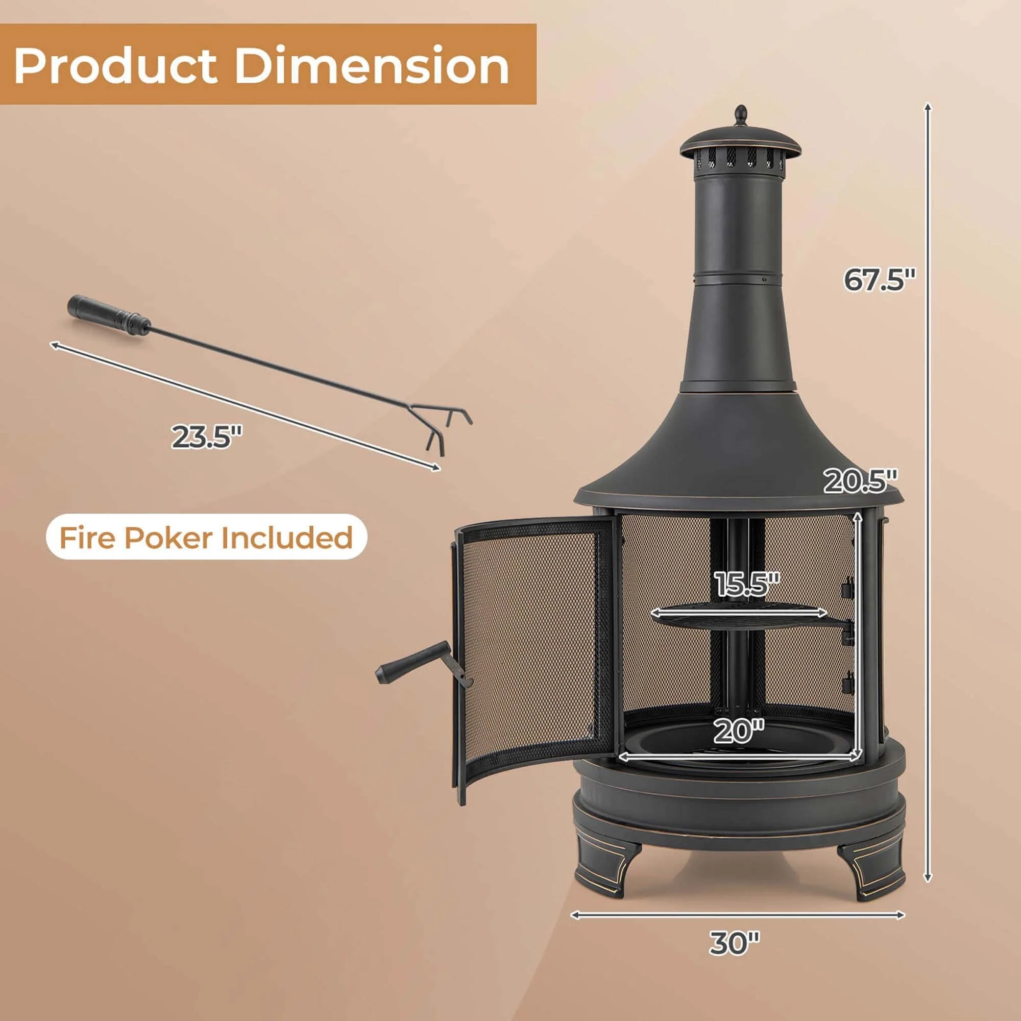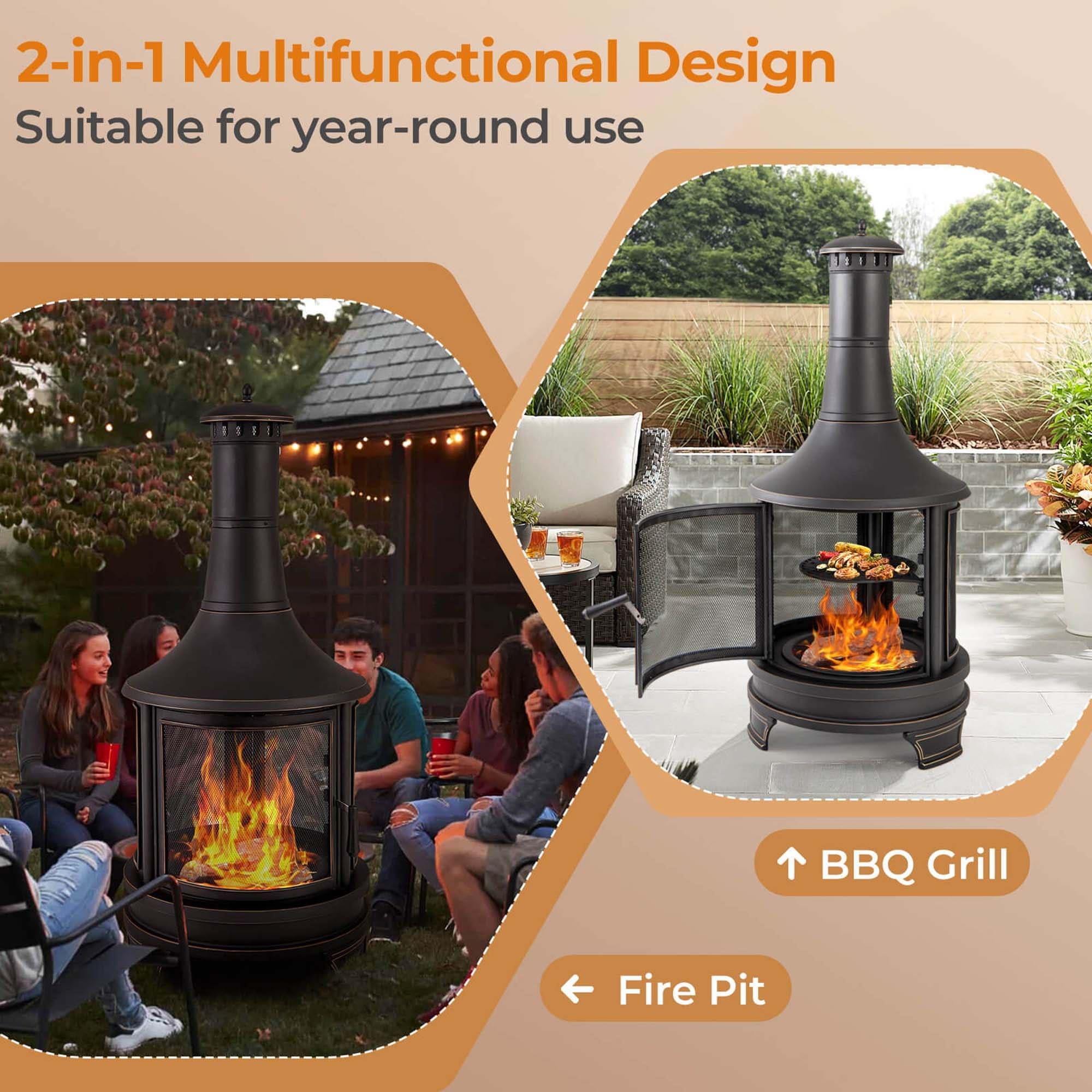 Costway 30 Inch Outdoor Fire Pit Chiminea 2 in 1 Wood Burning Metal - See Details