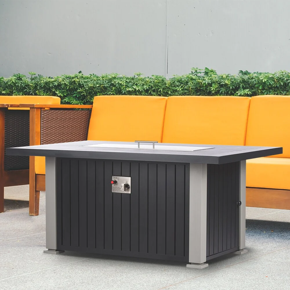 EV Fires 52" Aluminum Propane Gas Fire Pit Table in Black/Gray - 24"H x 52"W x 35"D