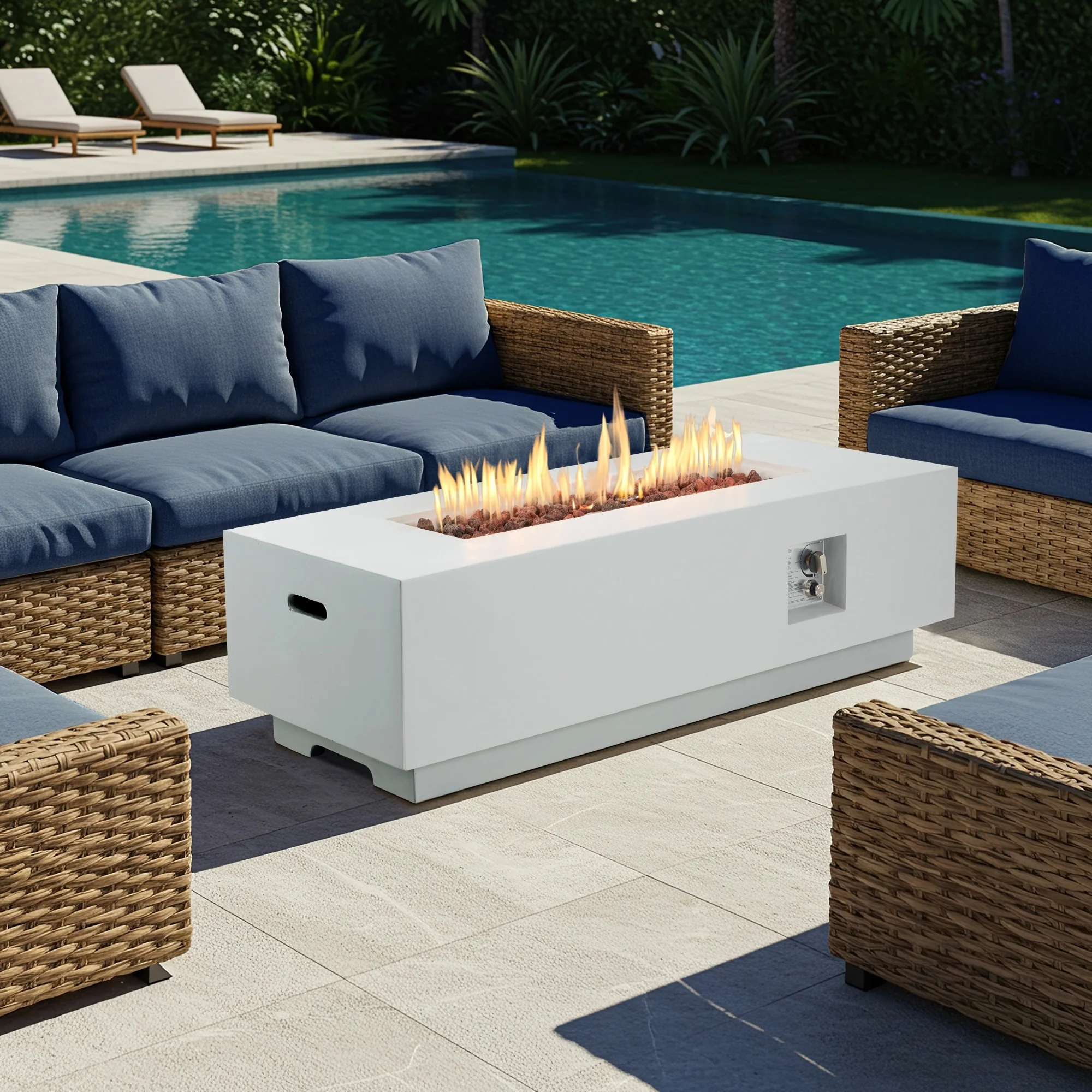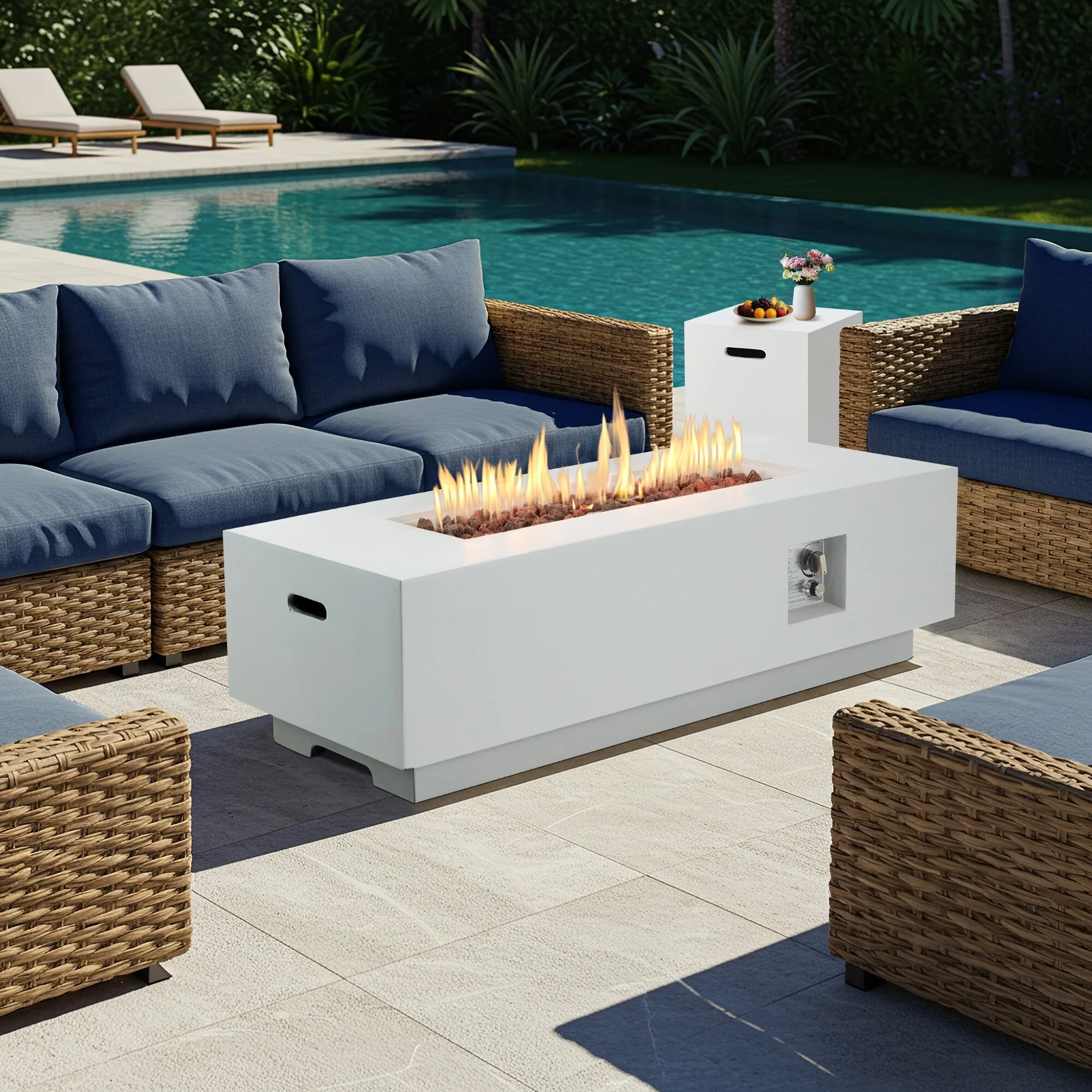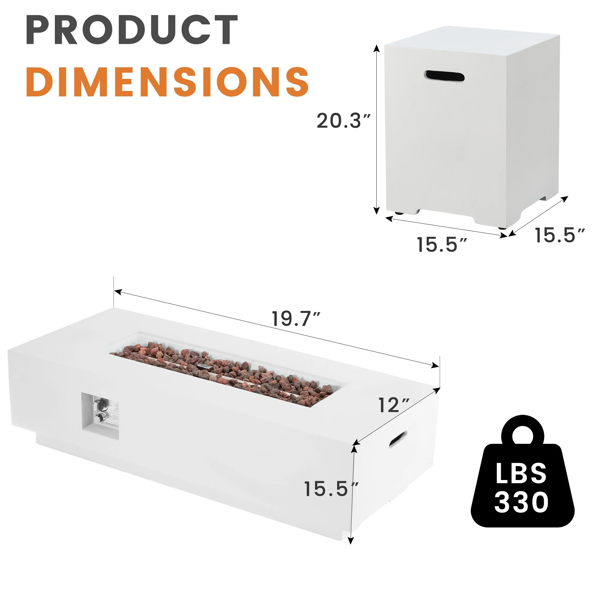 White Rectangle-Fire Pit Set