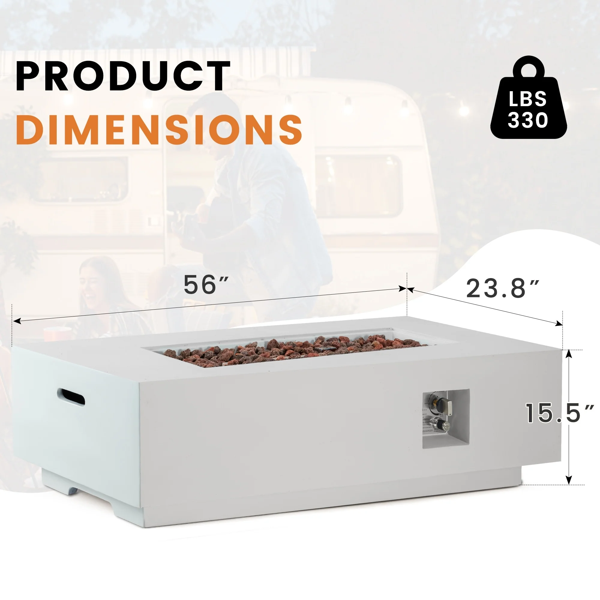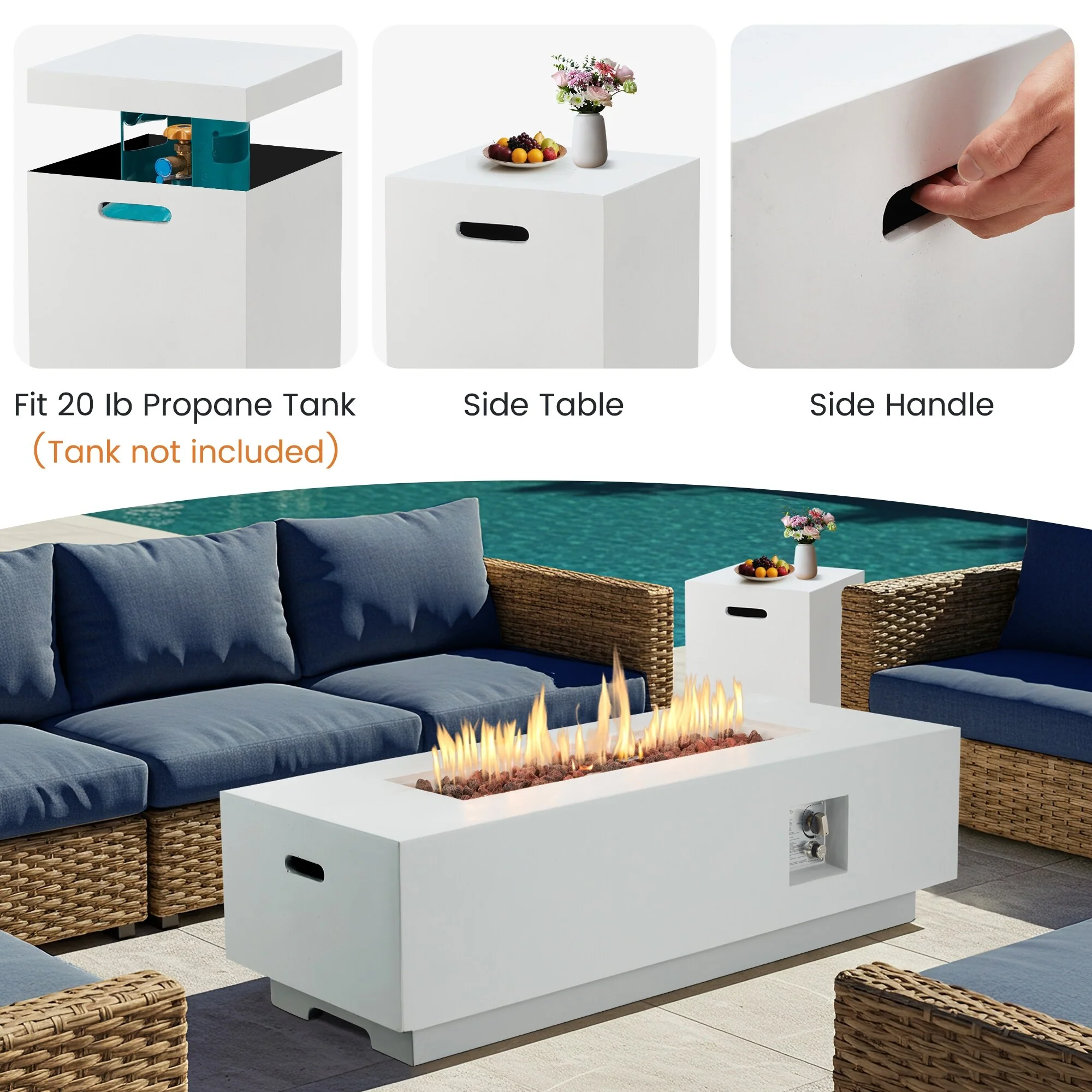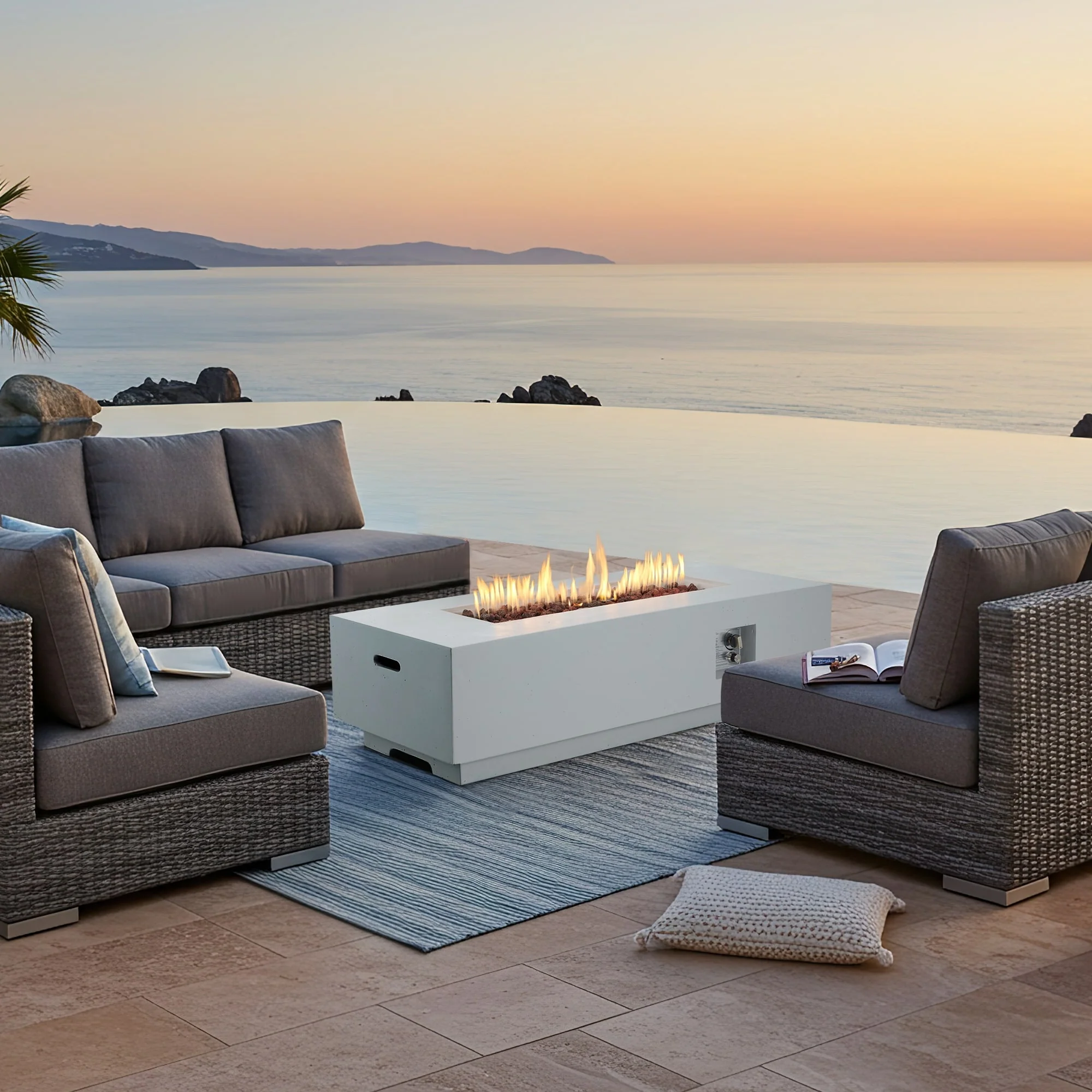 White Rectangle-Fire Pit Set