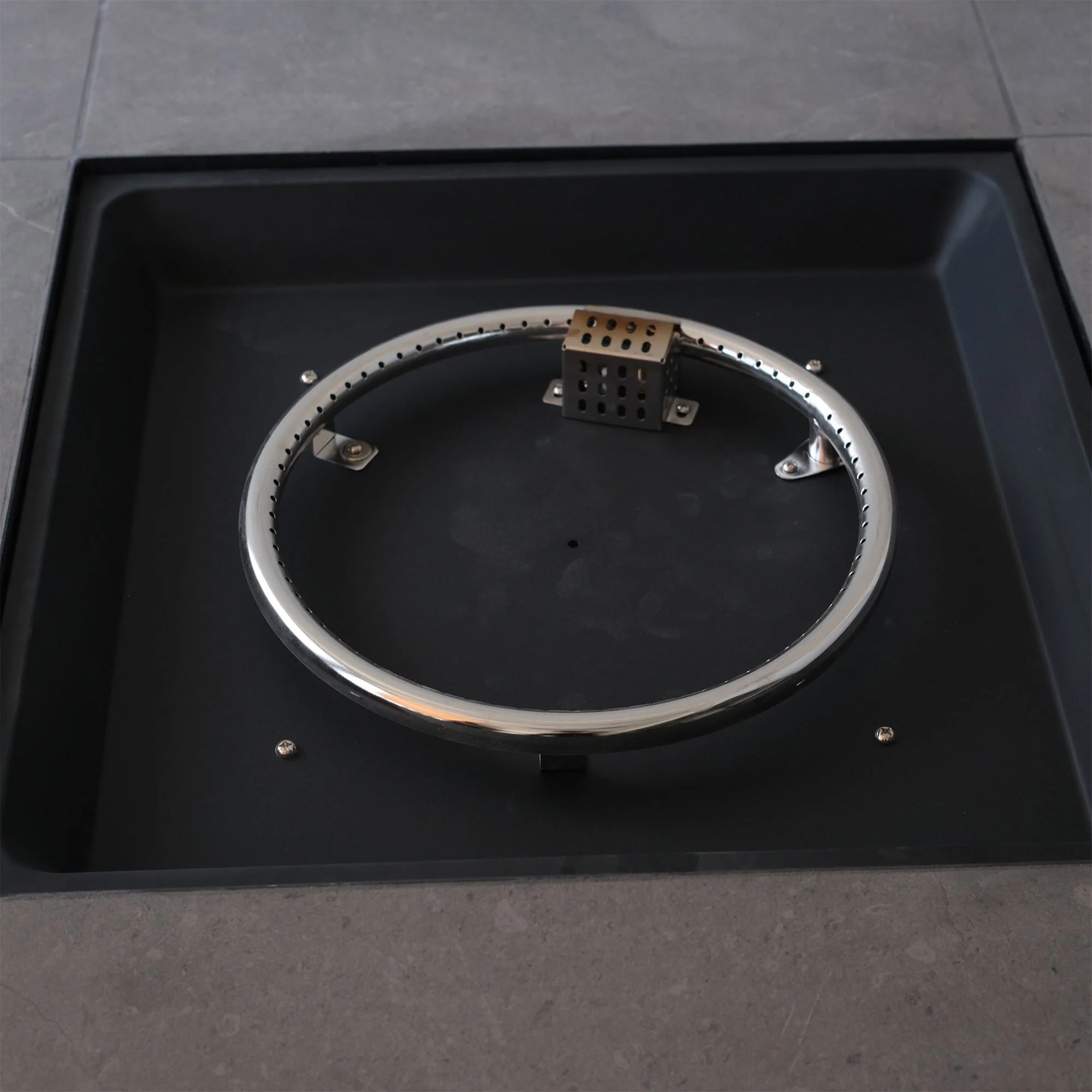 30 in. W x 30 in. D x 24 in. H Square Propane Burning Outdoor Fire Pit in Stone Gray