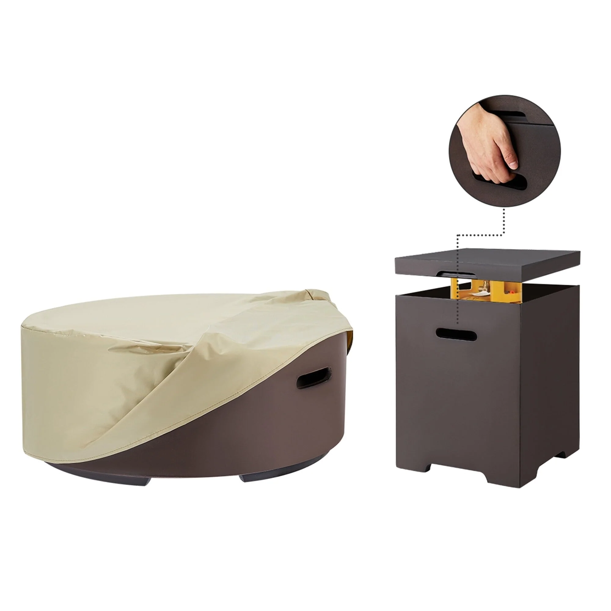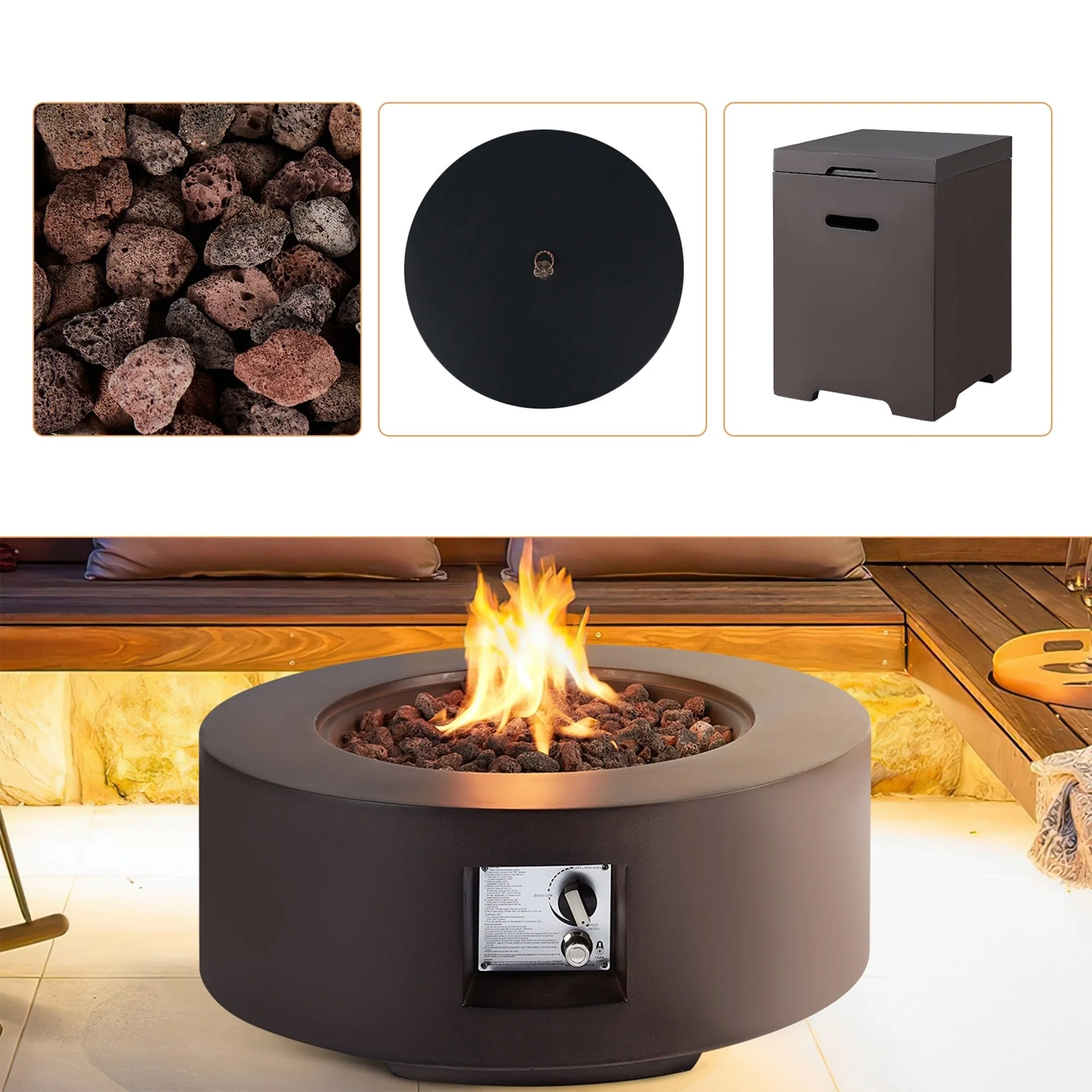 Brown Round-Fire Pit Set
