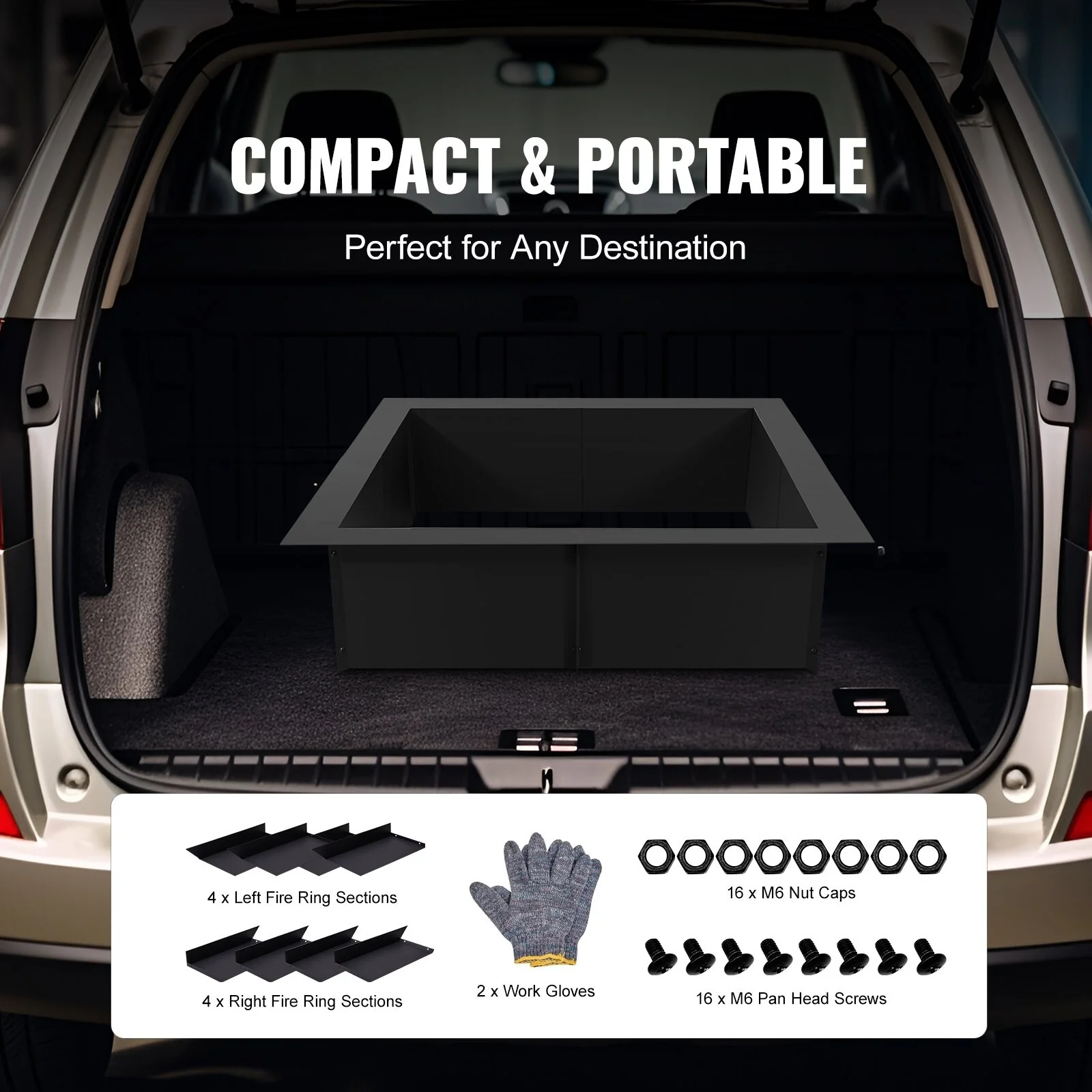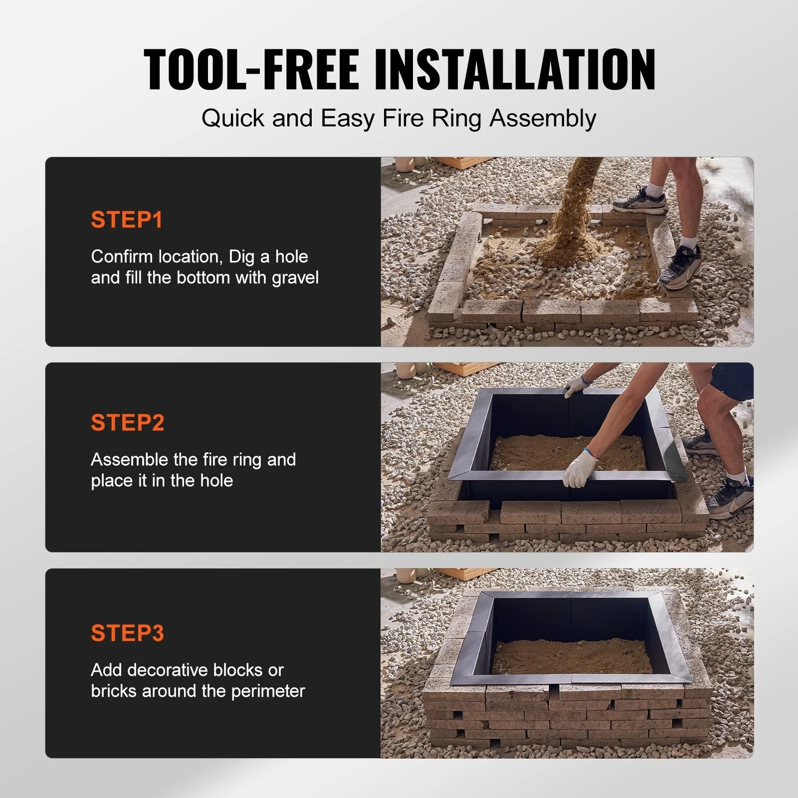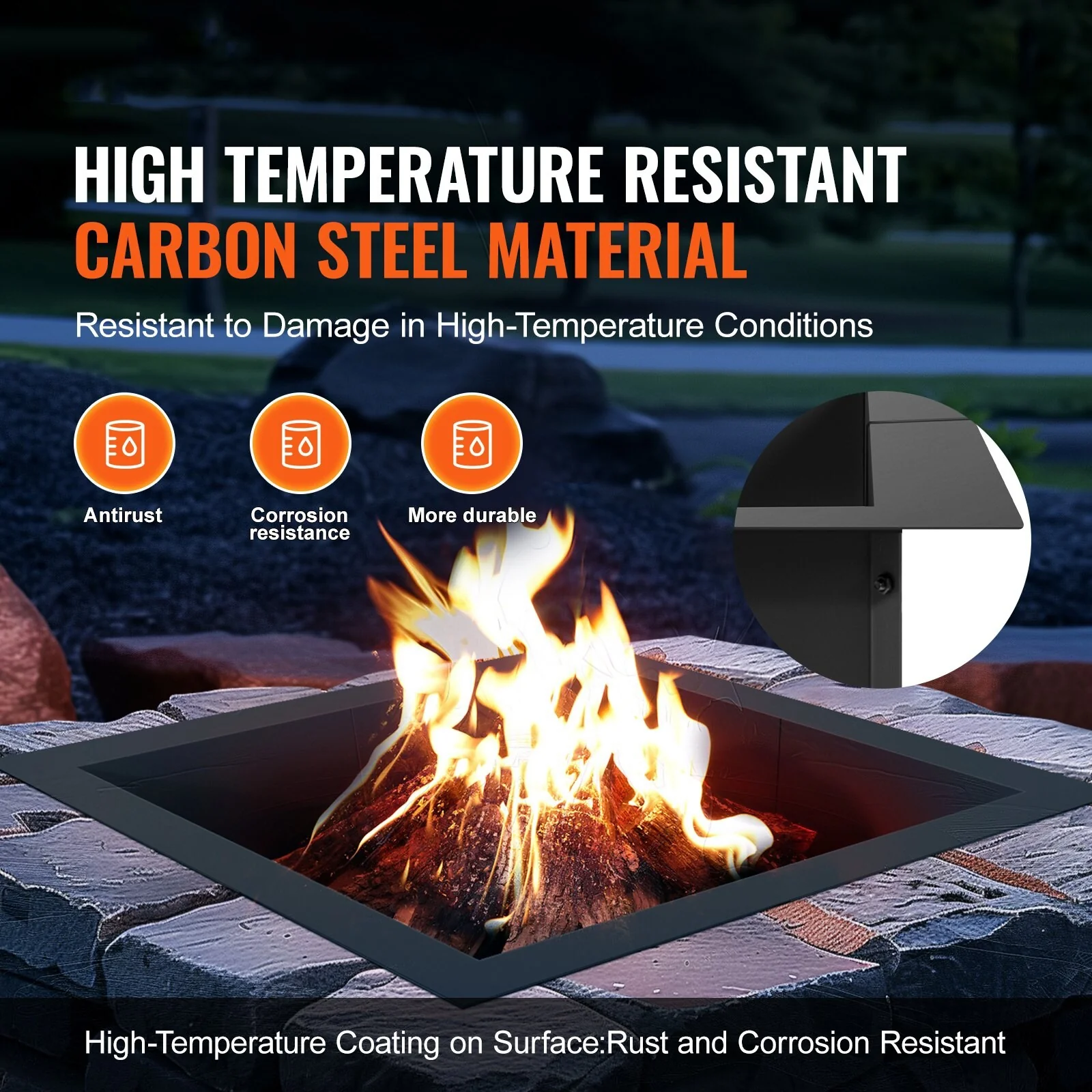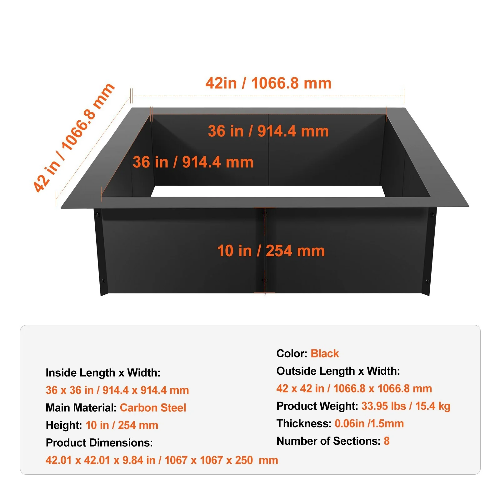 Black Carbon Steel Fire Pit Ring Liner, 8 Panels, Rust Resistant