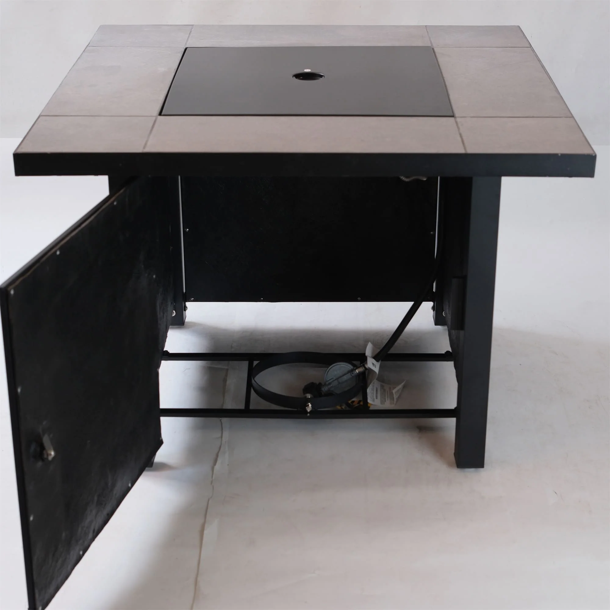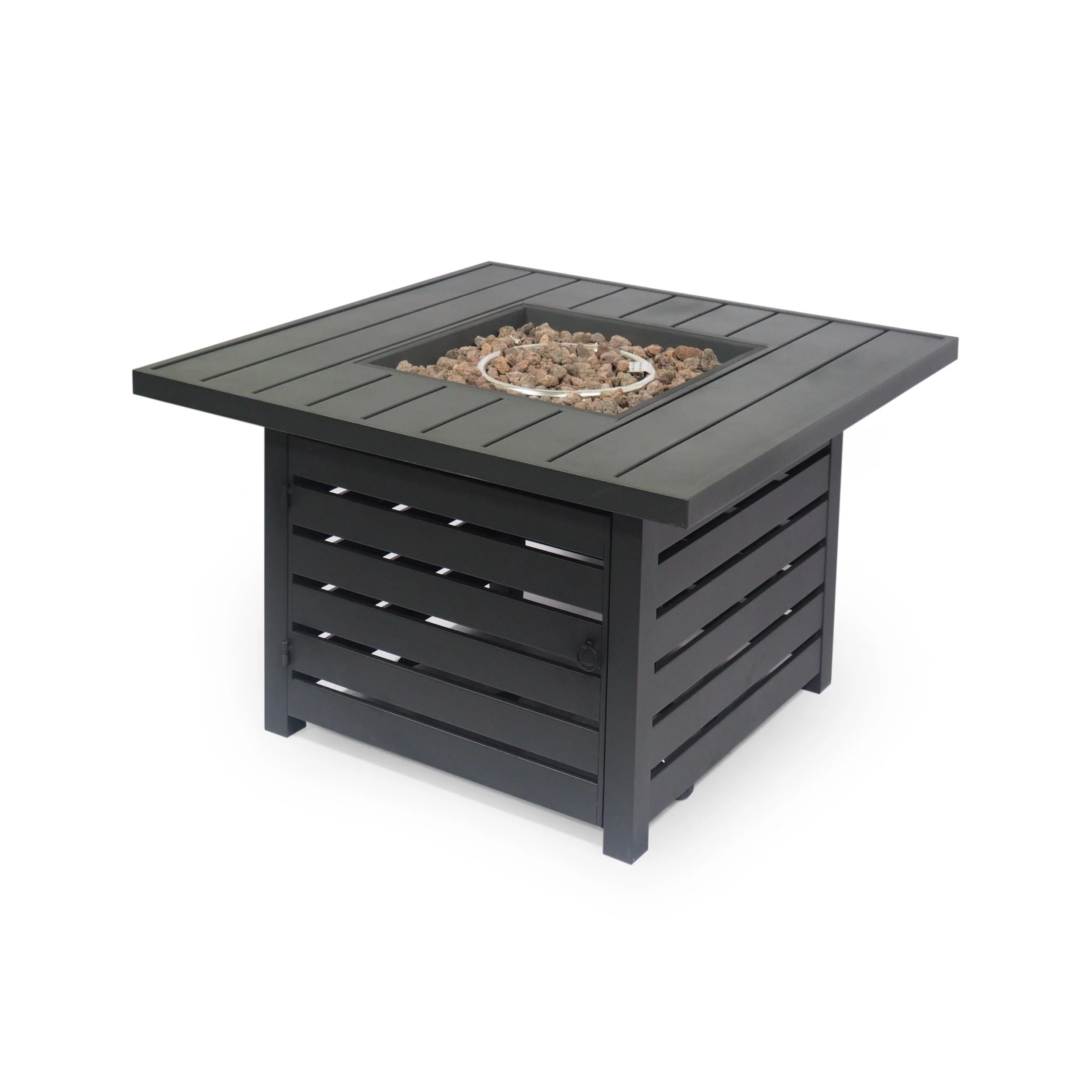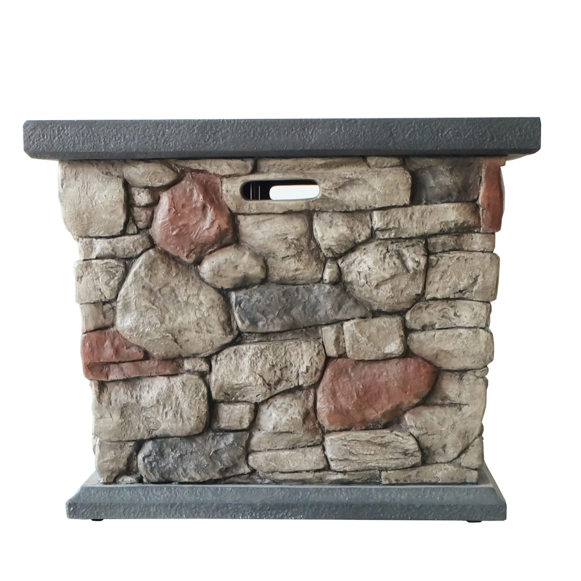 35 in. W x 35 in. D x 25 in. H Square Propane Burning Outdoor Fire Pit Table in Stone Gray