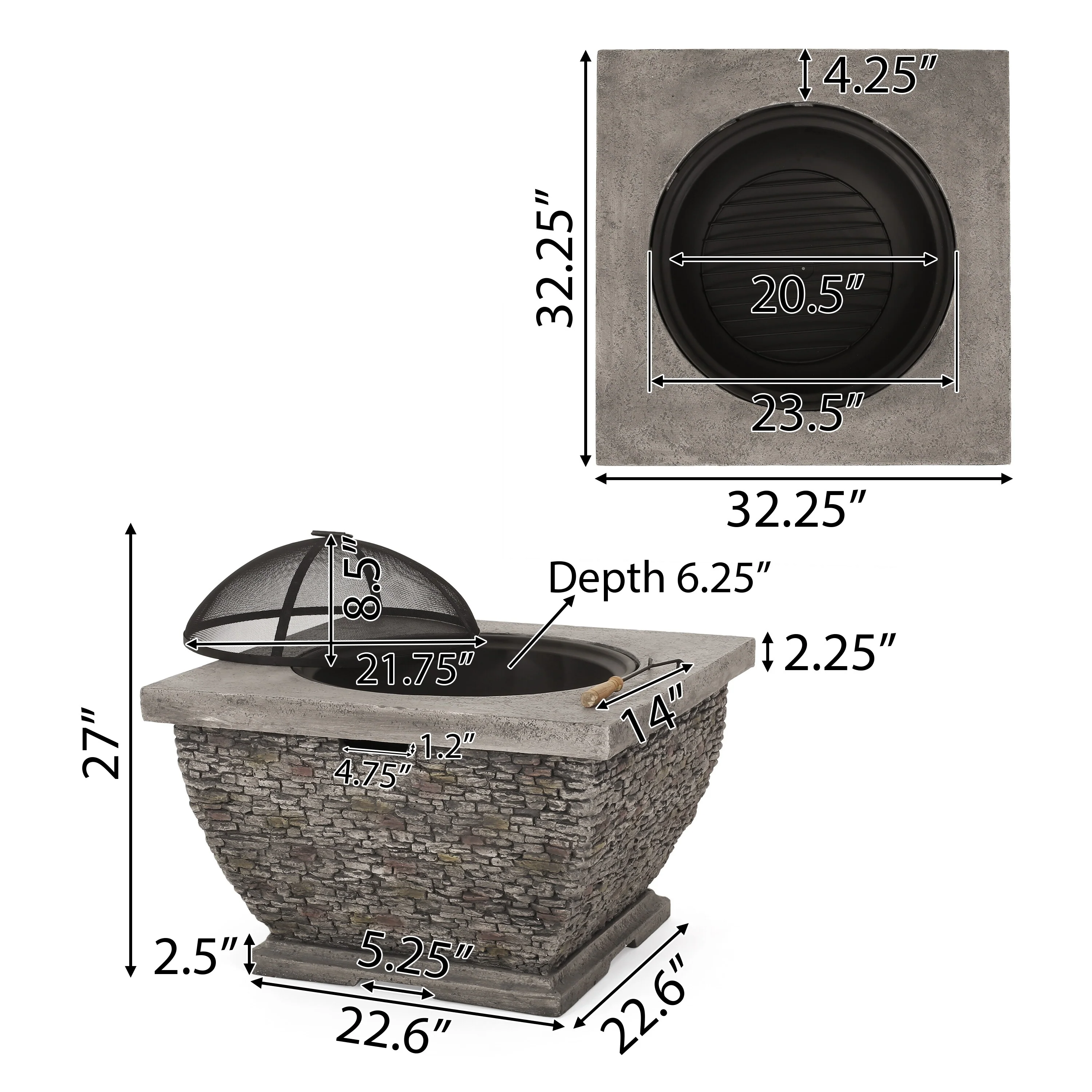 Mia Outdoor 32-Inch Wood Burning Light-Weight Concrete Square Fire Pit by Christopher Knight Home
