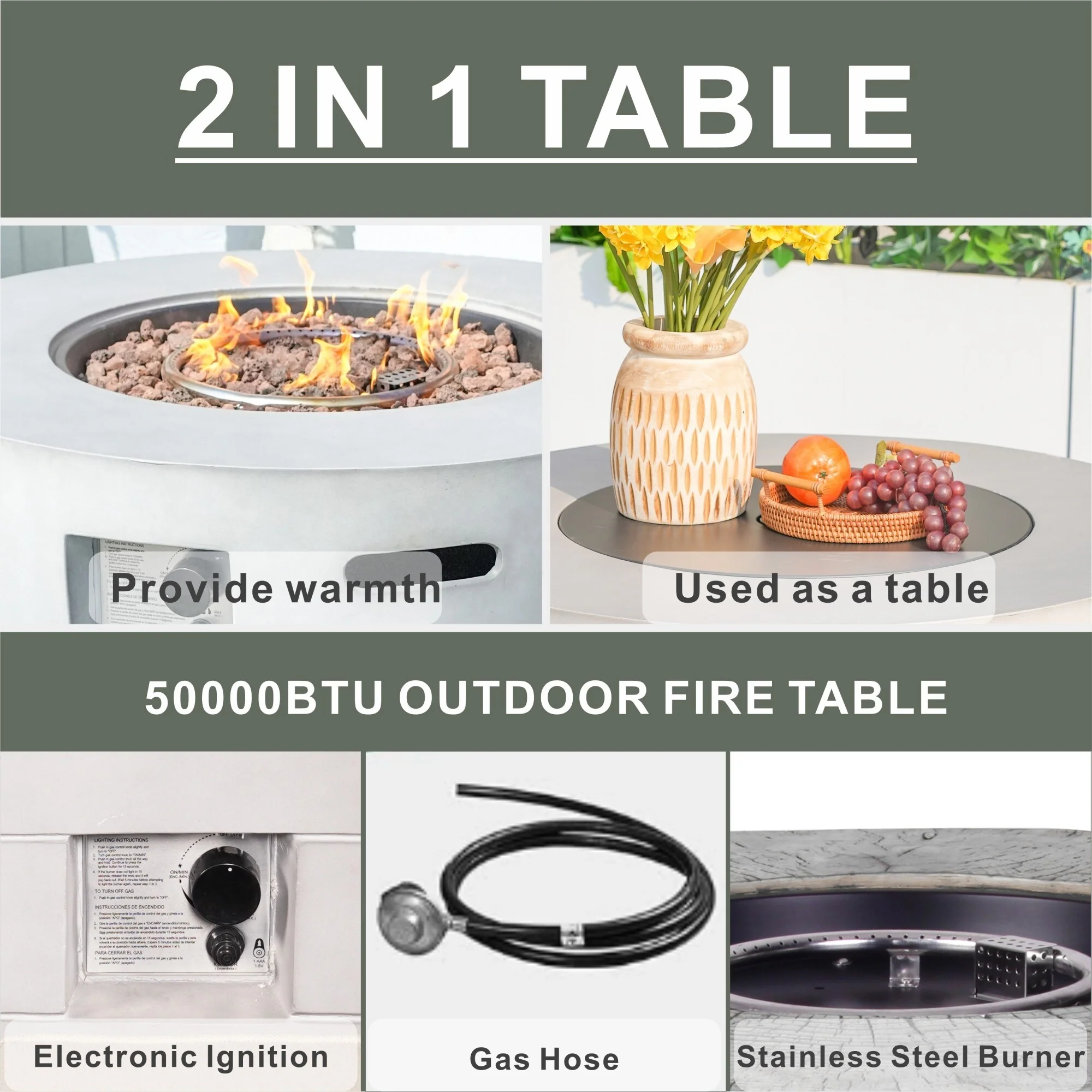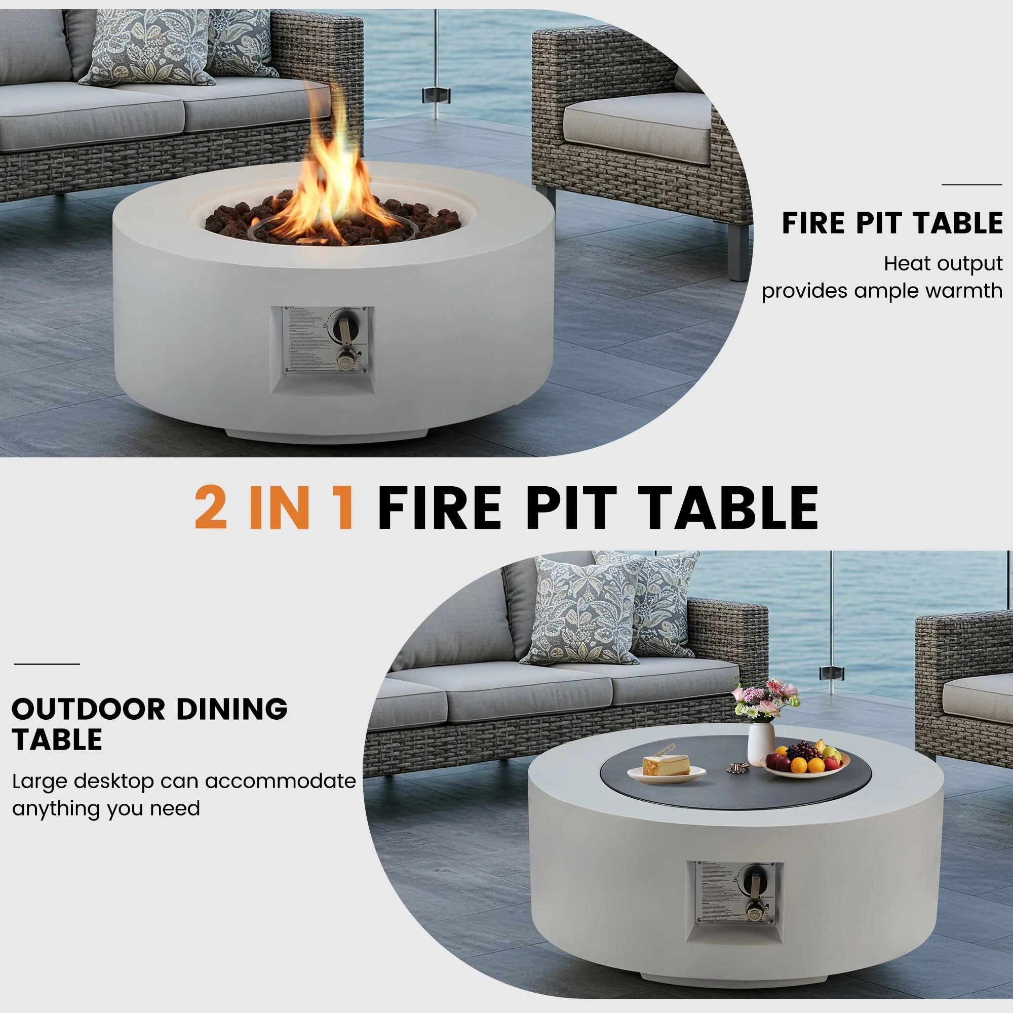 50,000 BTU?Terrafab Multifunctional Composite Fire Pit Table