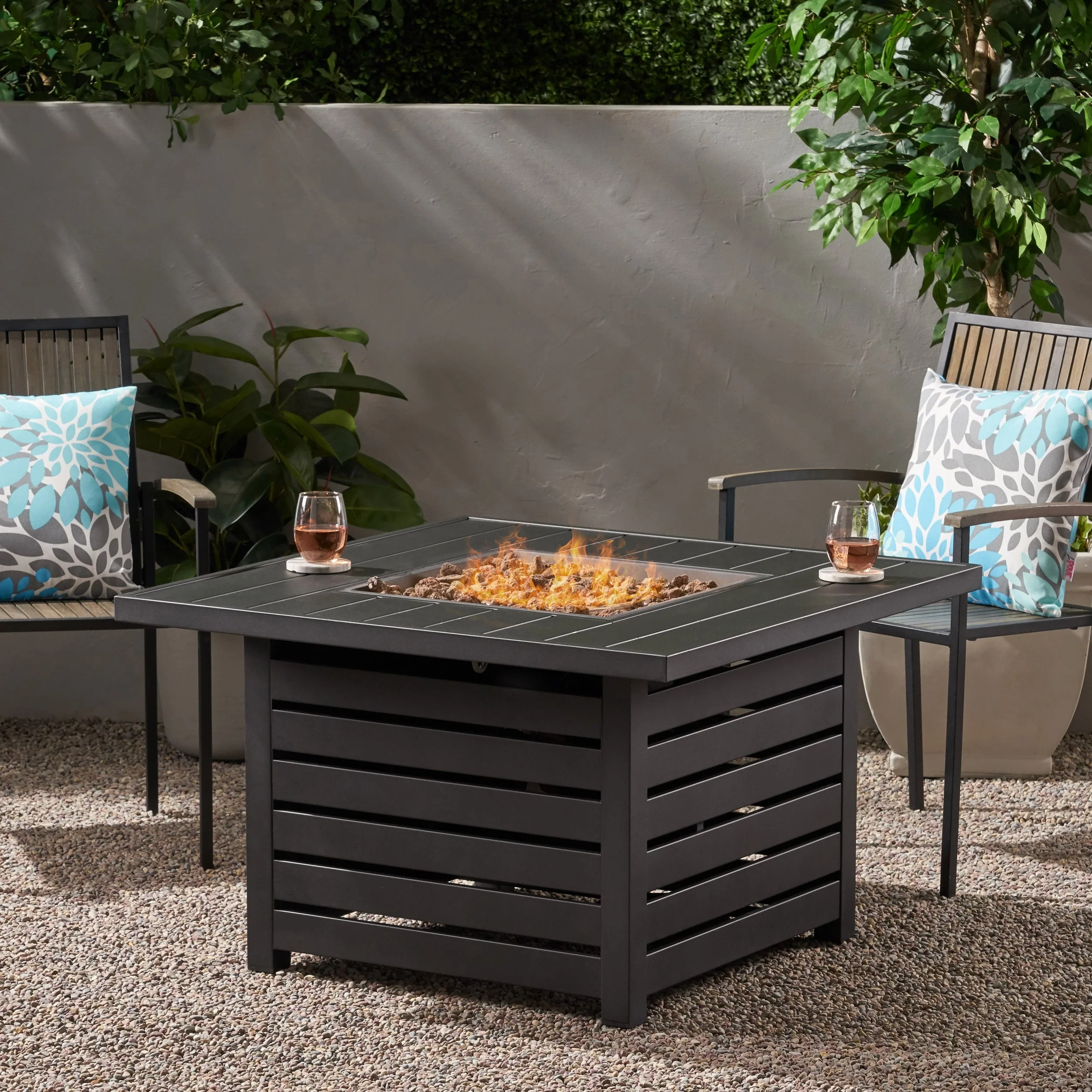 Hoonah 32-inch Outdoor Square Liquid Propane Fire Pit with Lava Rocks by Christopher Knight Home