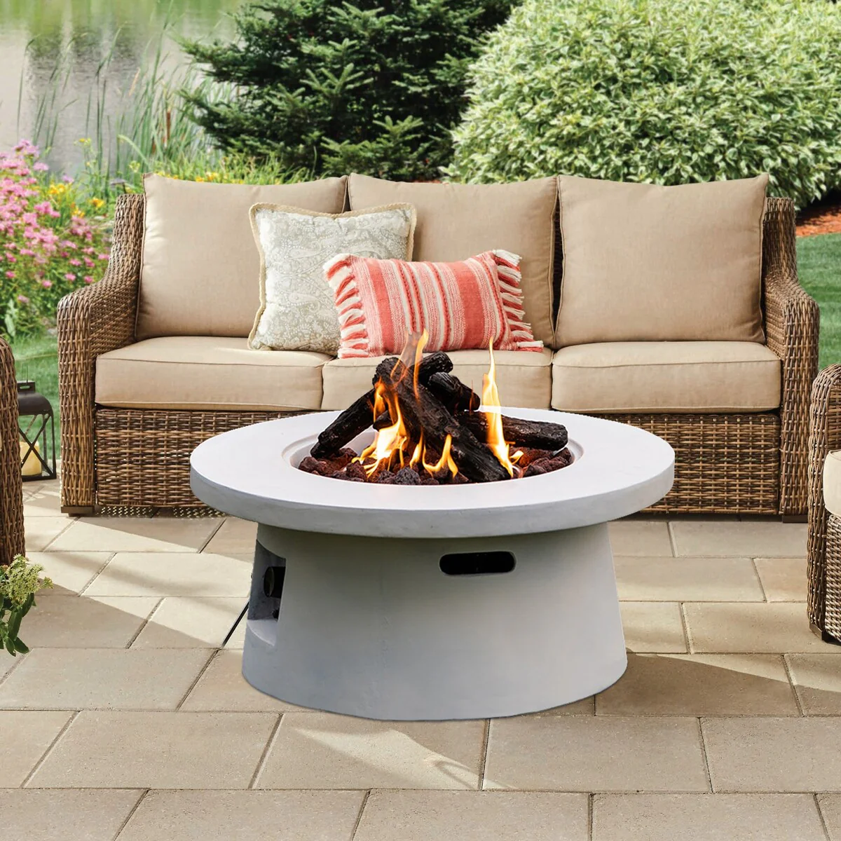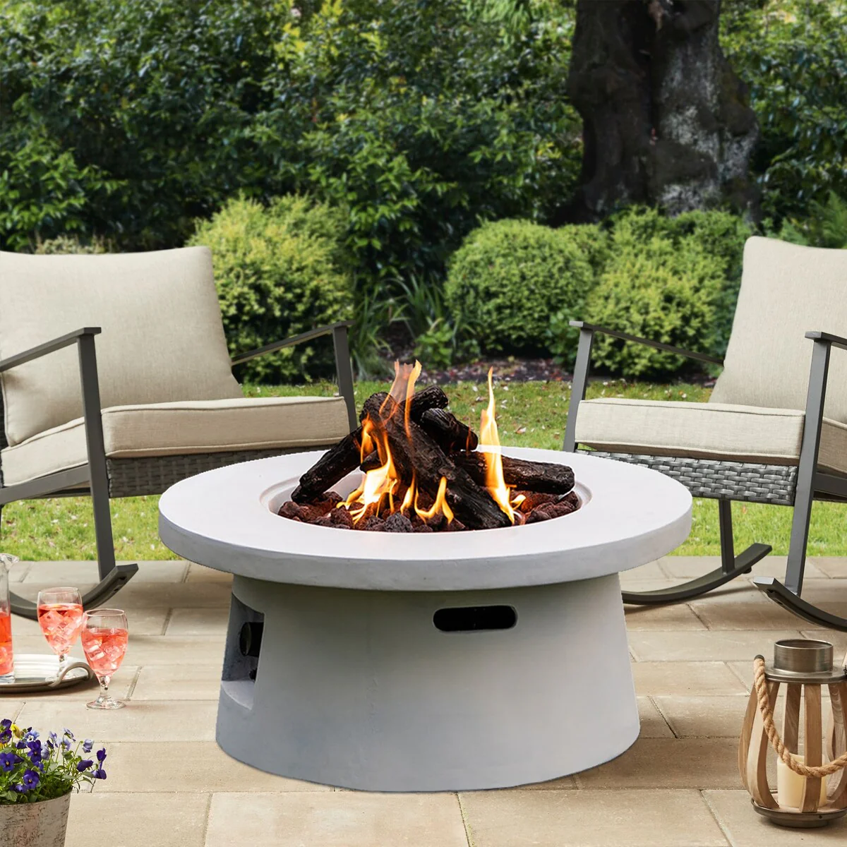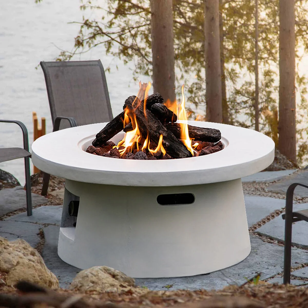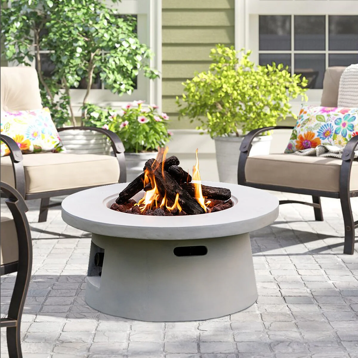 Ember Outdoor Wood Textured GRC Propane Firepit Includes Lava Rocks and Lid