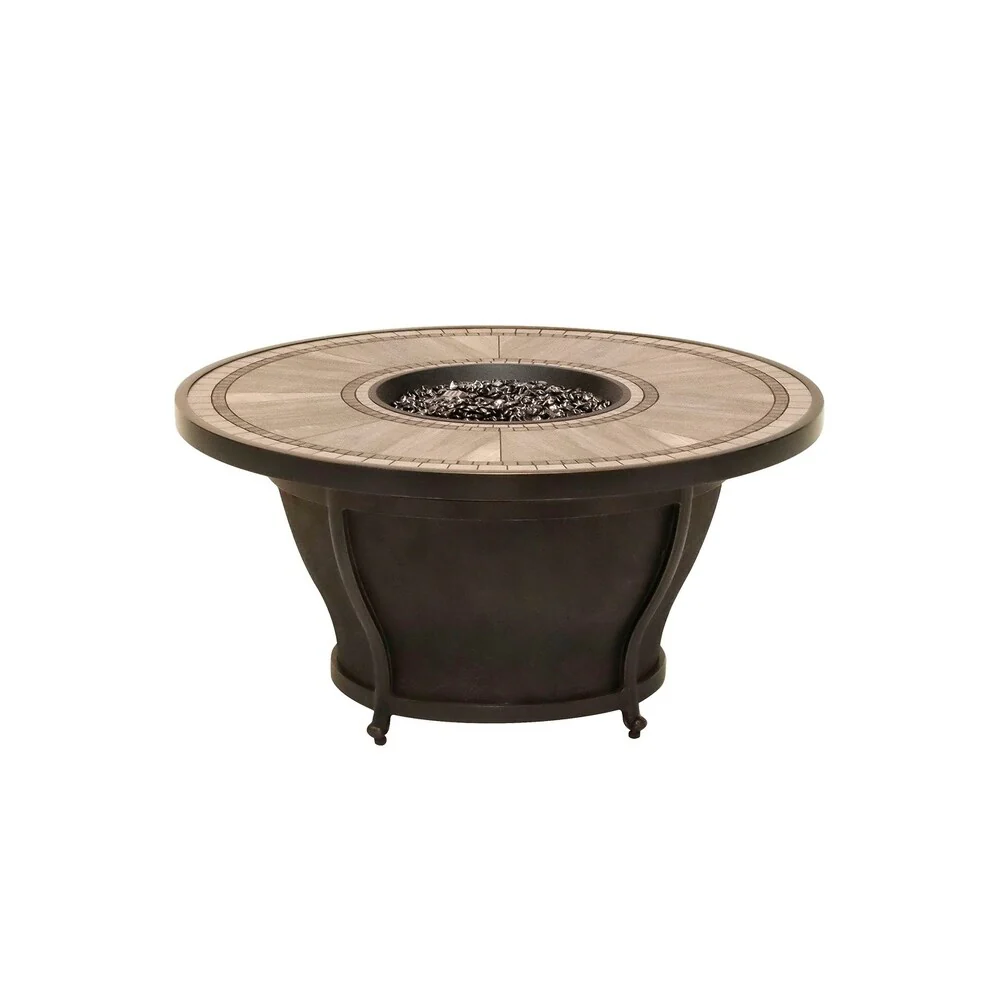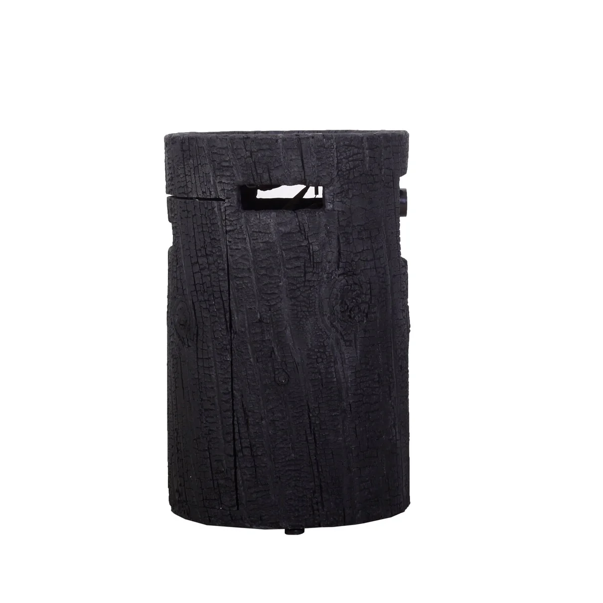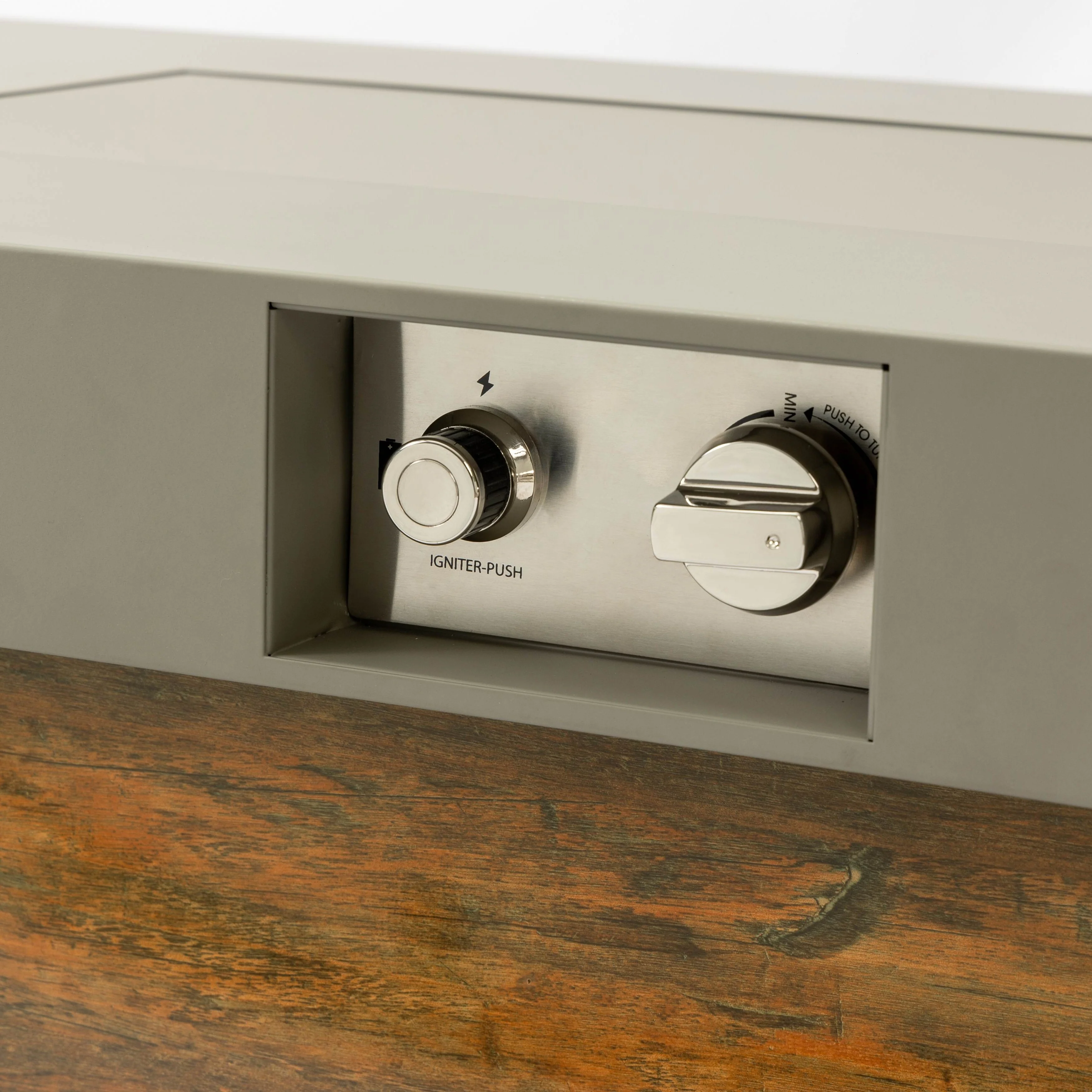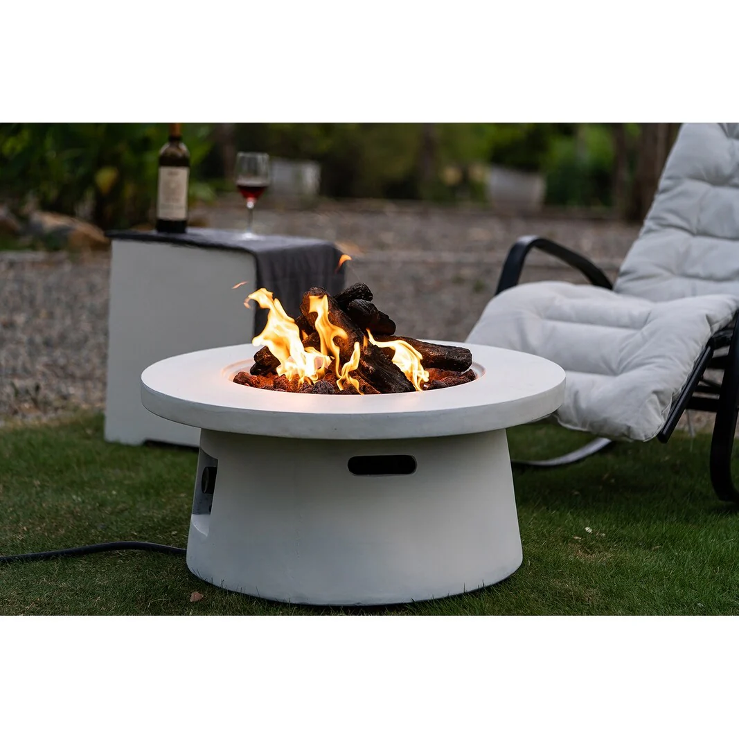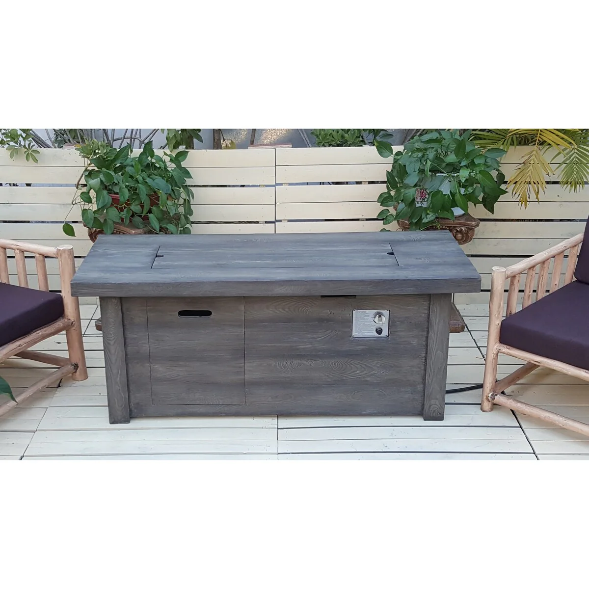 Ember Outdoor Wood Textured GRC Propane Firepit Includes Lava Rocks and Lid