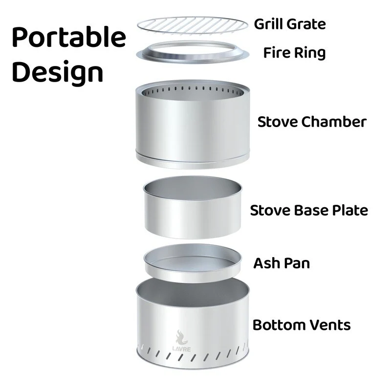 15 inch Smokeless Fire Pit Outdoor Wood Burning Portable