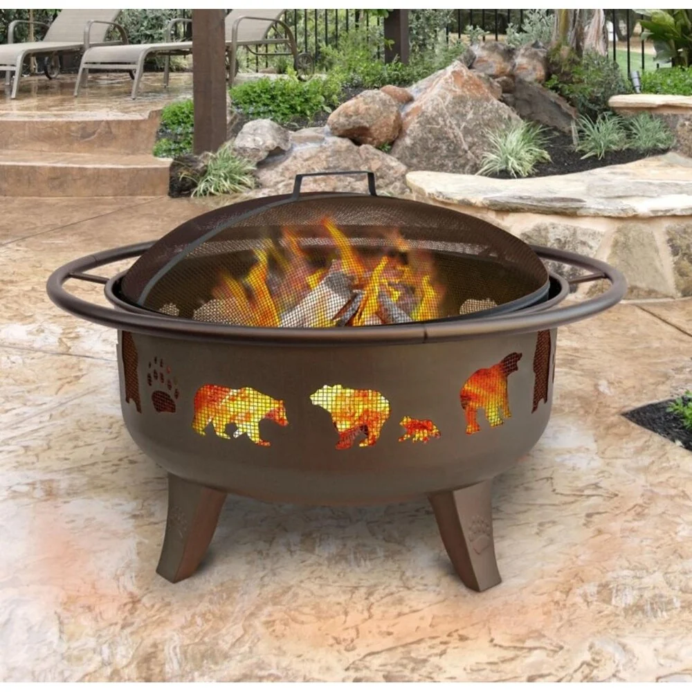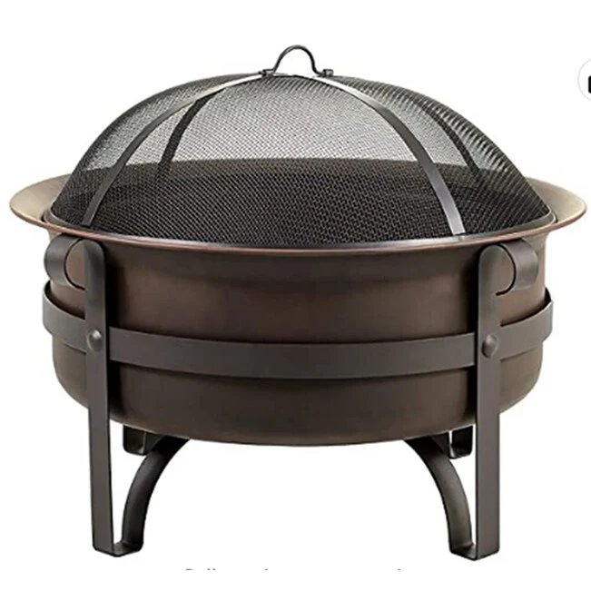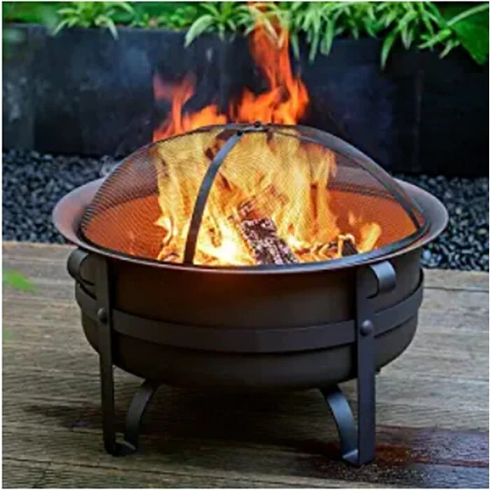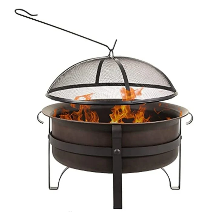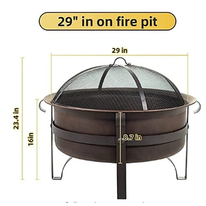Outdoor Fire Pit- 29 Inch Wood Burning Firepit, Fire Pits for Outside, with Round Spark Screen, Fire Poker, Metal Grate