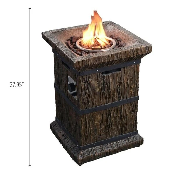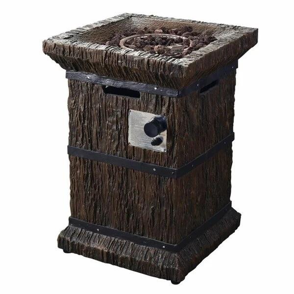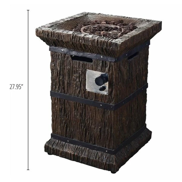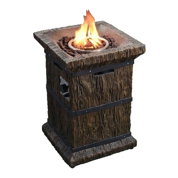 Teamson Peaktop Wood-grain Outdoor Square Column Propane Gas Fire Pit