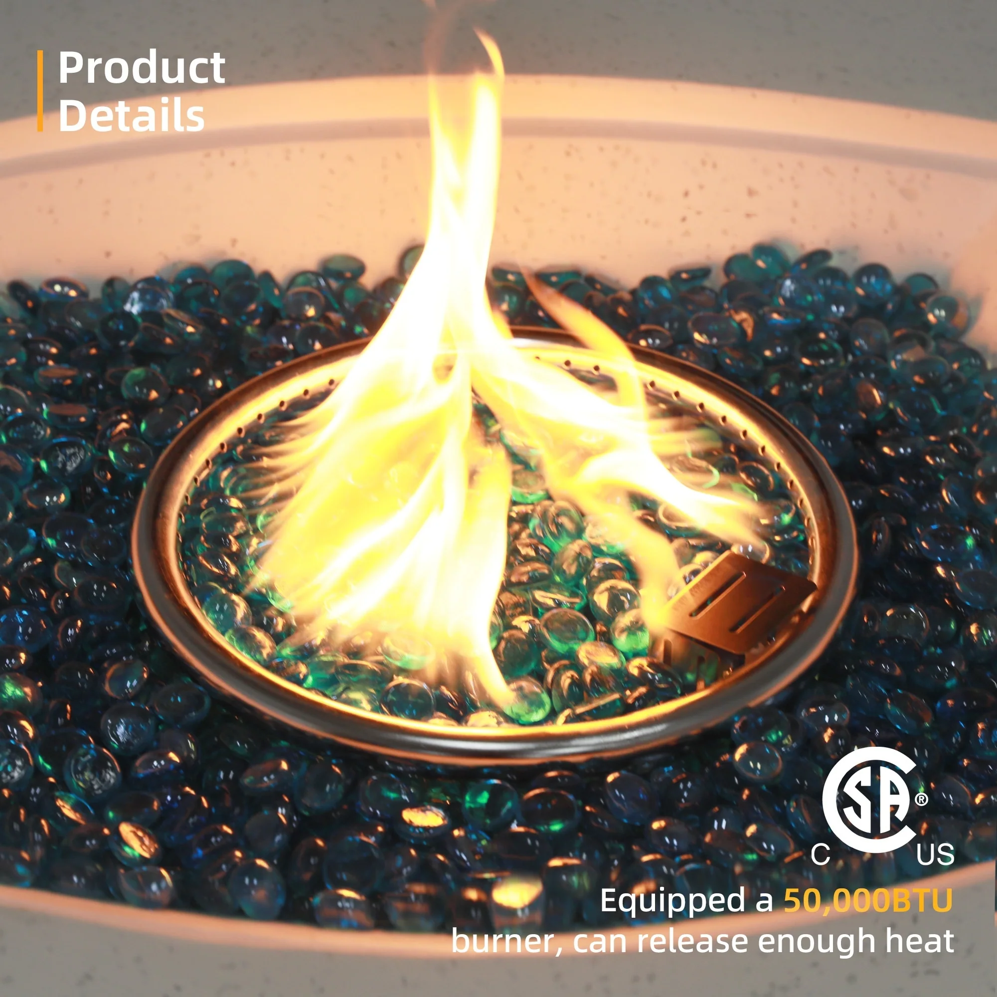 Outdoor 50000 BTU White Finish Round Fire Pit with Tank Outside - 29.5*29.5*14INCH