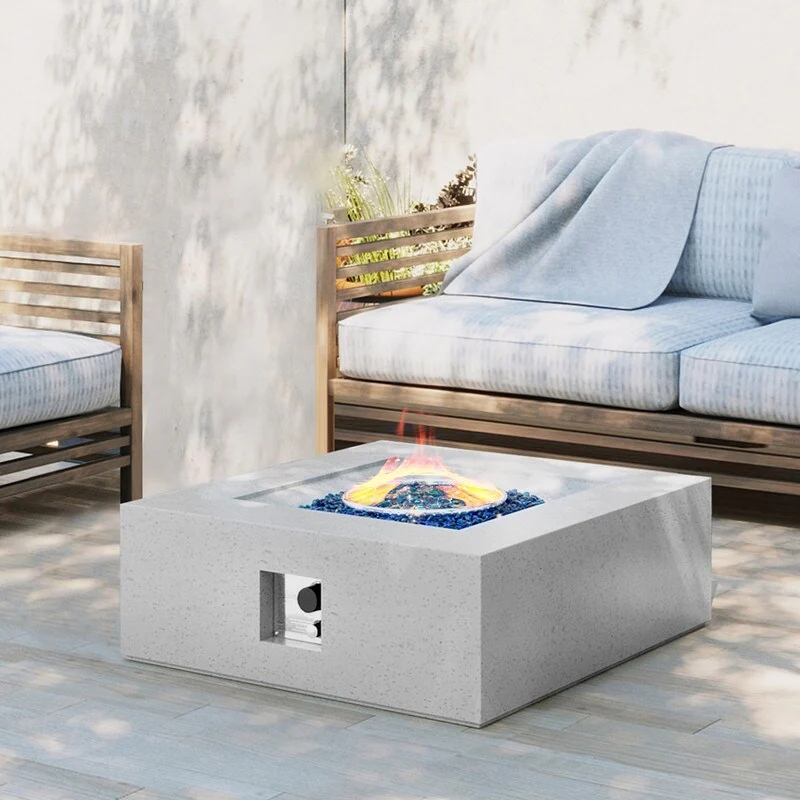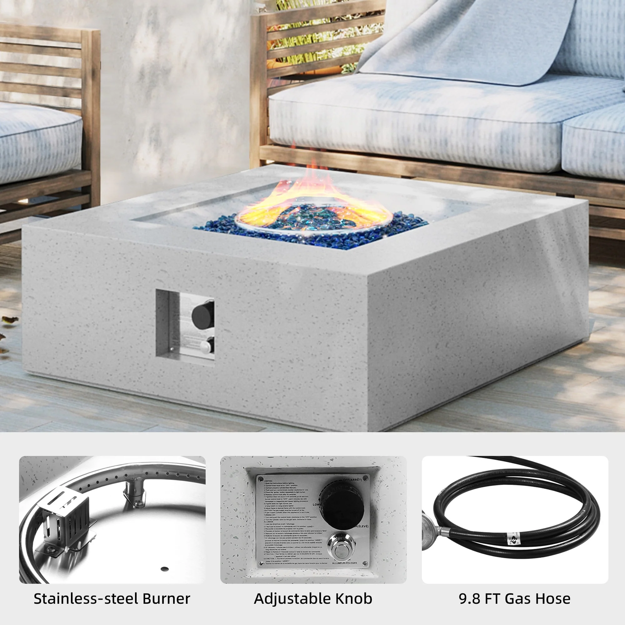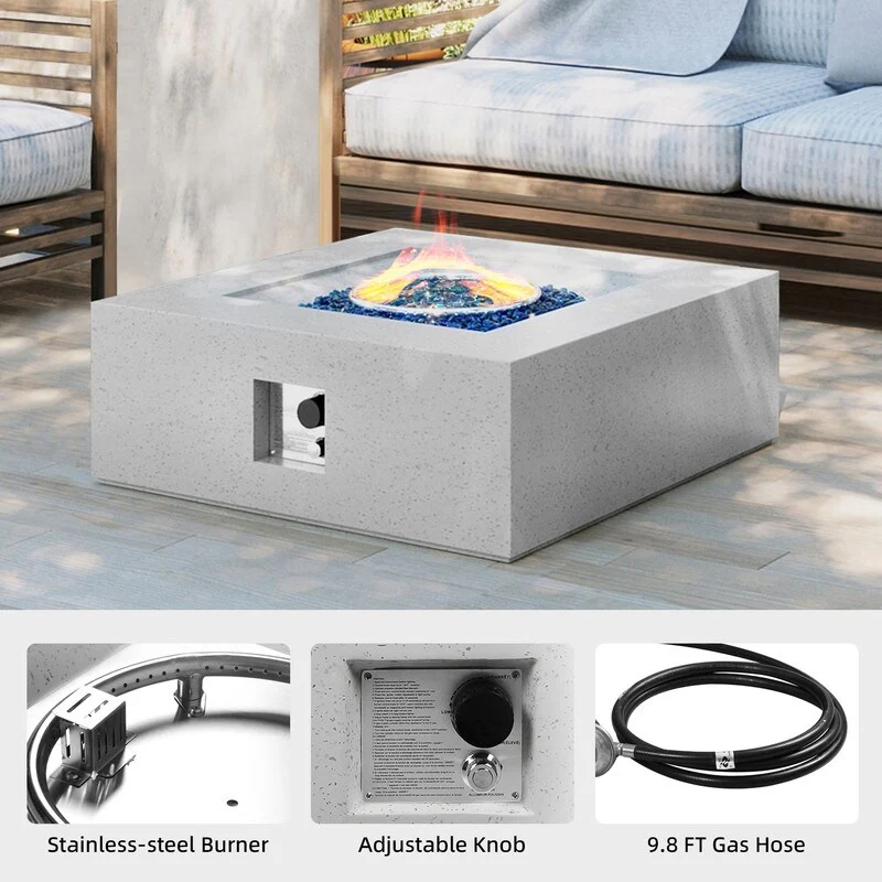 Patio Watcher 40000BTU Outdoor Square Off-White Terrazzo Fire Pit Table