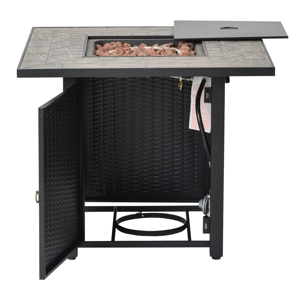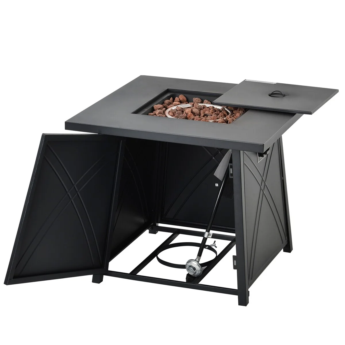 Multifunctional Fire Pit Table 32" Metal Square Patio Firepit Table