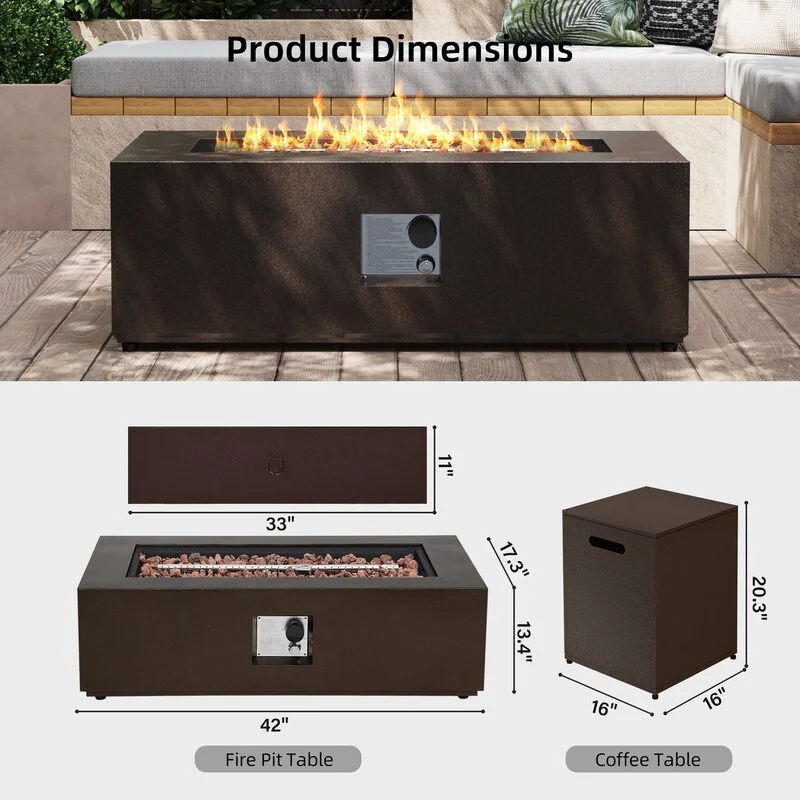 Patio Watcher 42-inch Rectangle iron outdoor fire pit table with gas tank cover, lid - 42