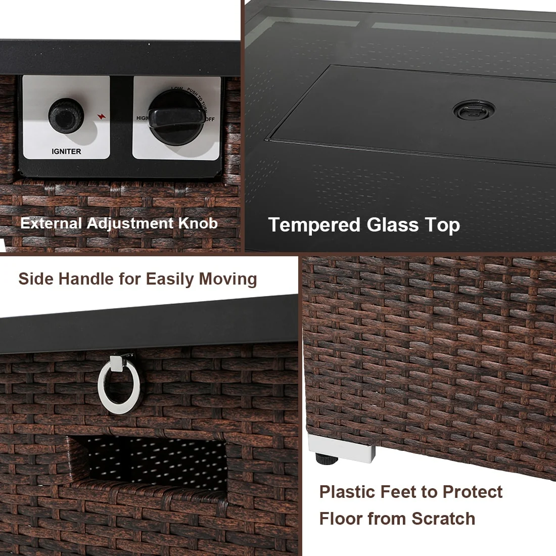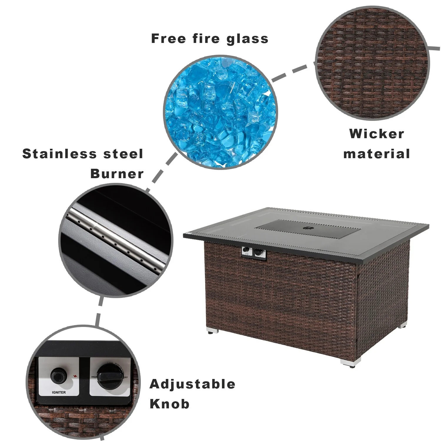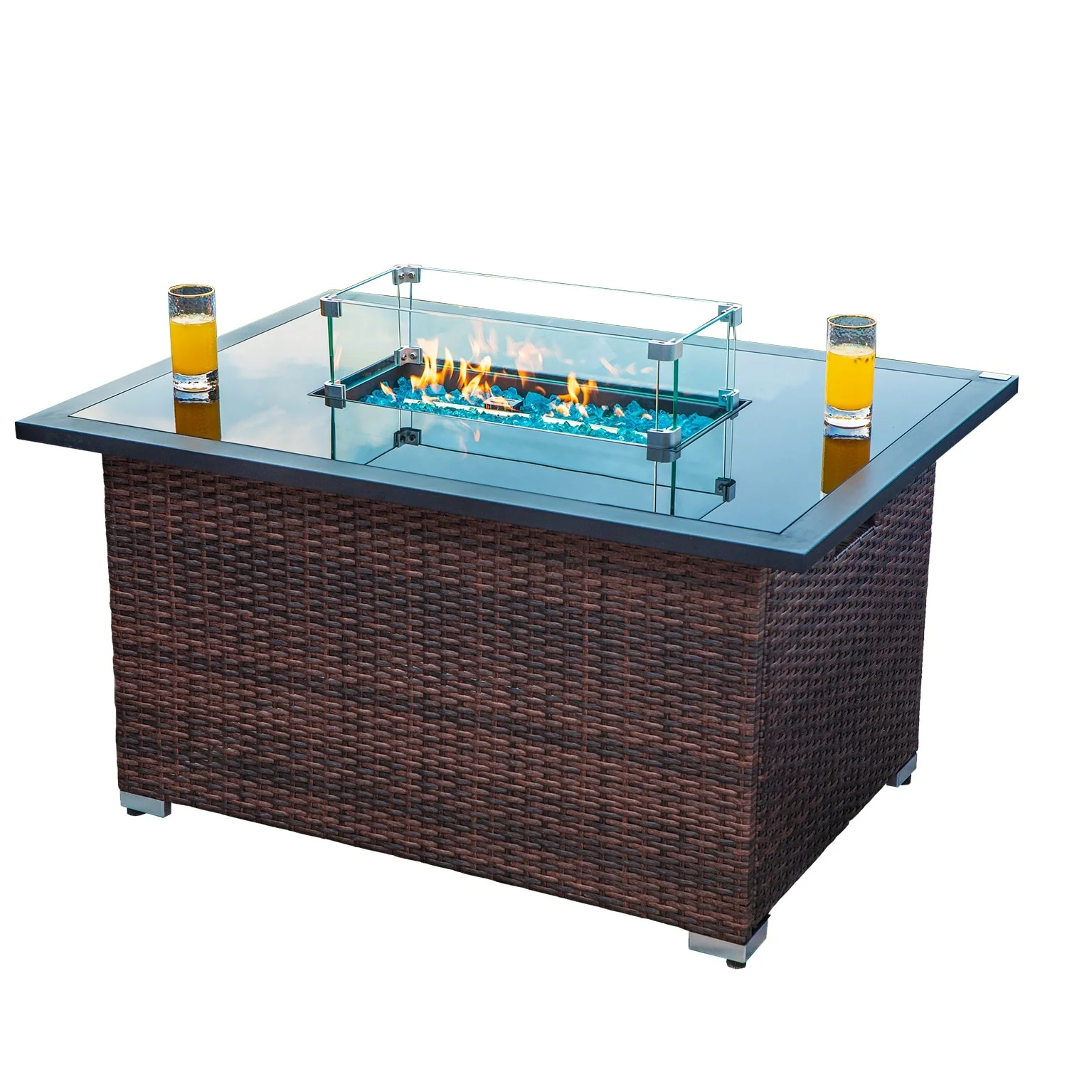 COSIEST Outdoor Propane Rectangle Wicker Fire Table