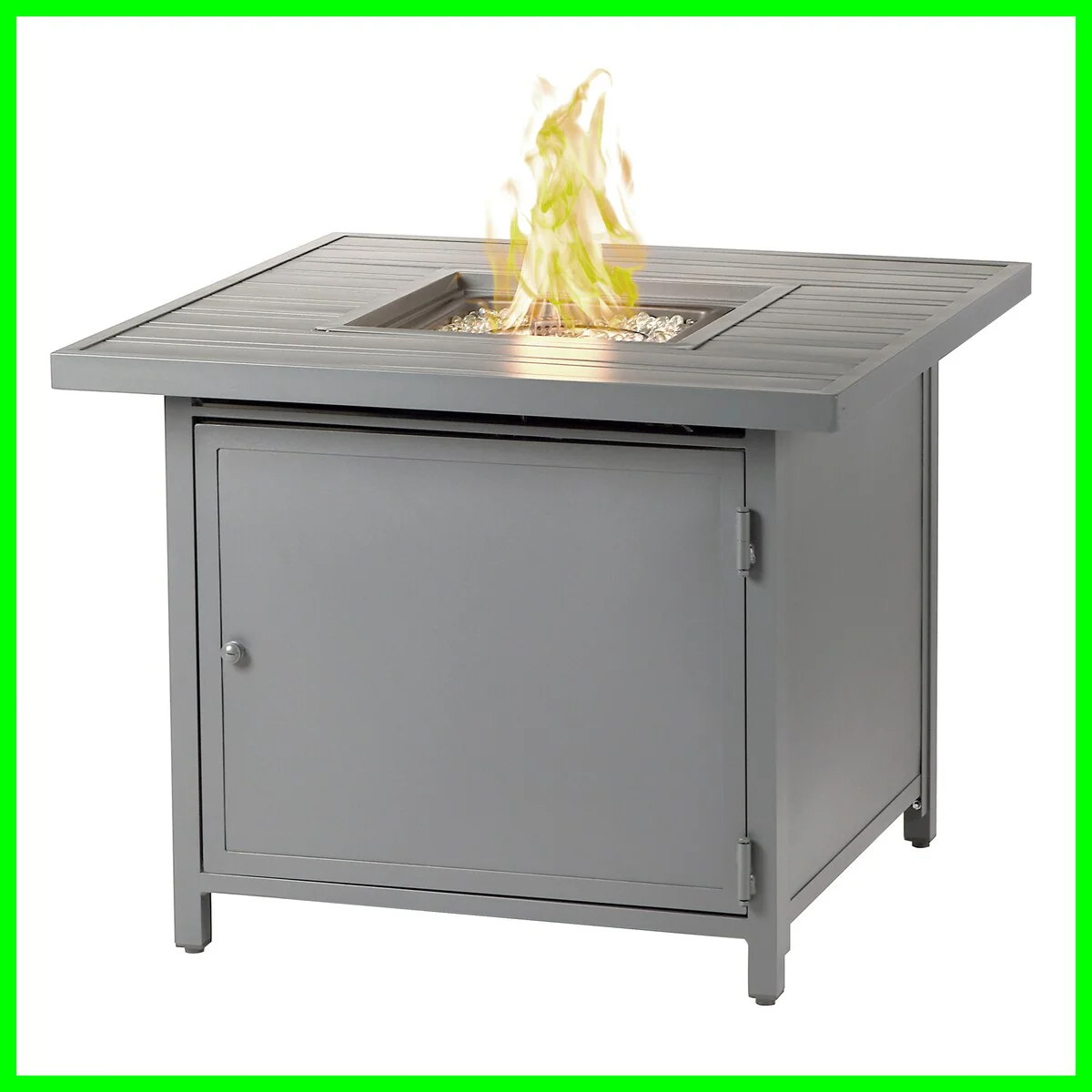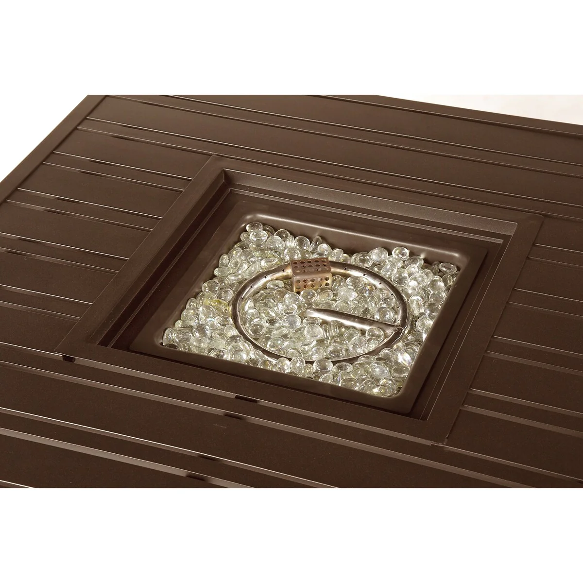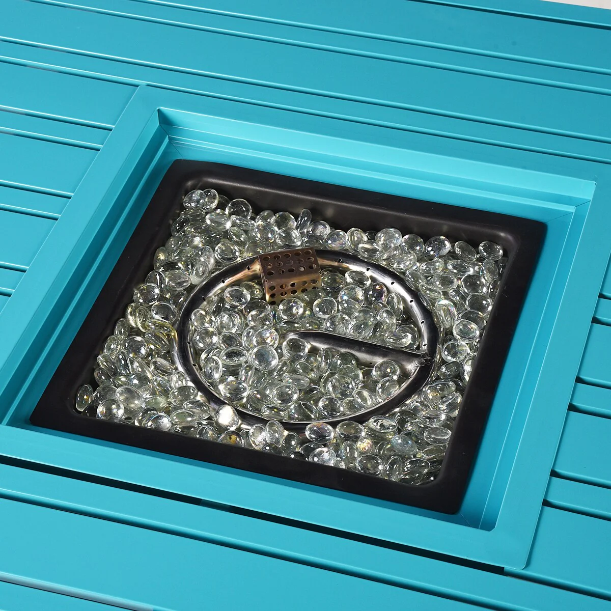 Square 32 in. x 32 in. Aluminum Propane Fire Pit Table with Glass Beads, Two Covers, Lid, 37,000 BTUs - N/A