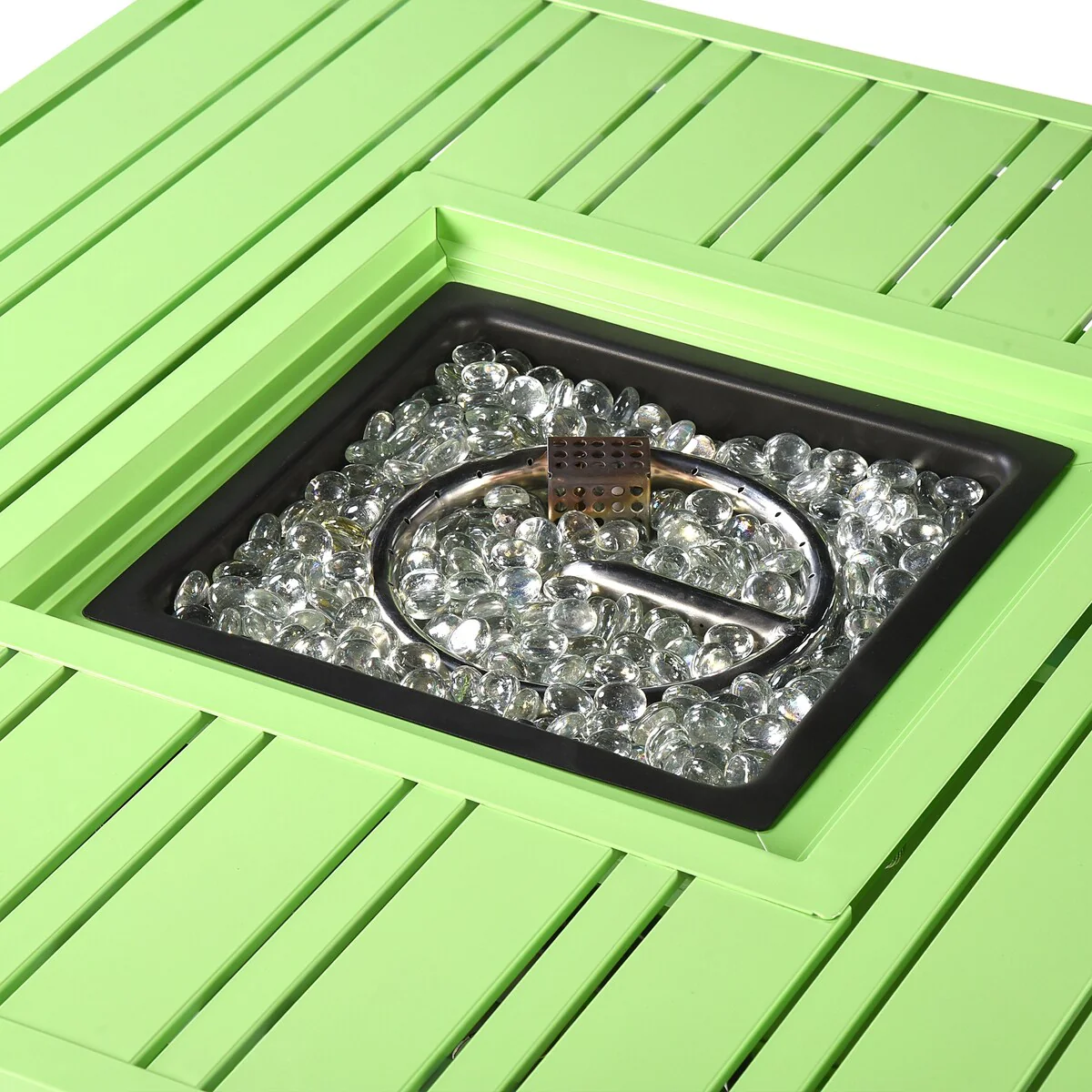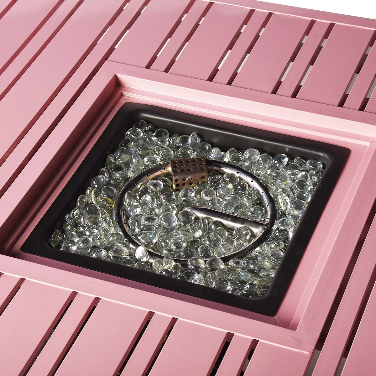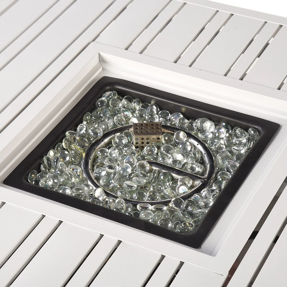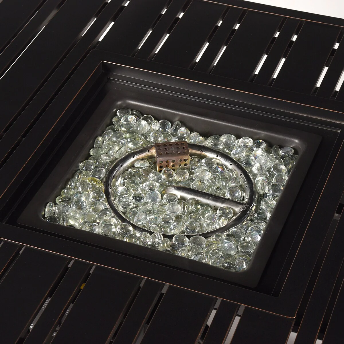 Square 32 in. x 32 in. Aluminum Propane Fire Pit Table with Glass Beads, Two Covers, Lid, 37,000 BTUs - N/A
