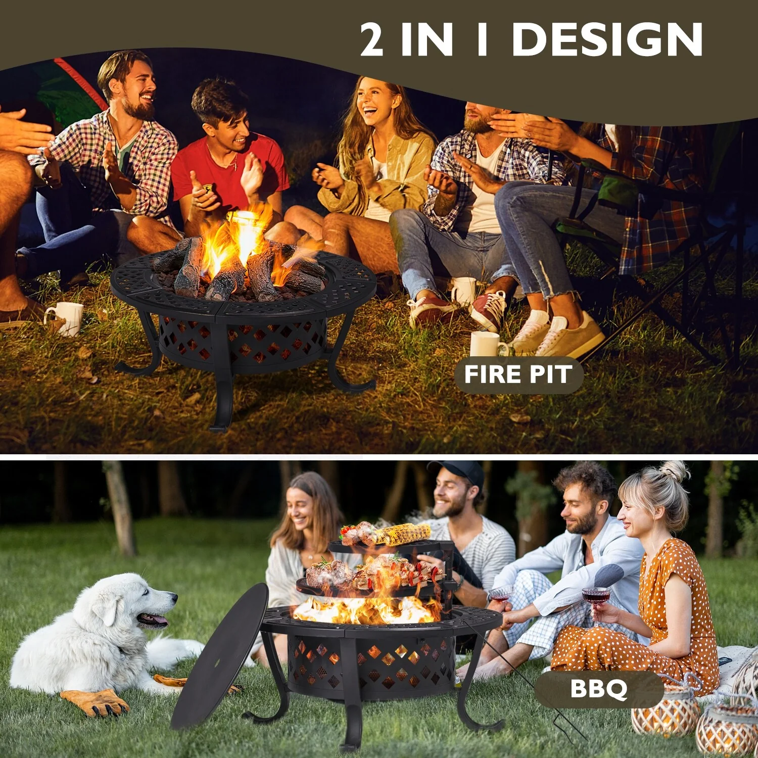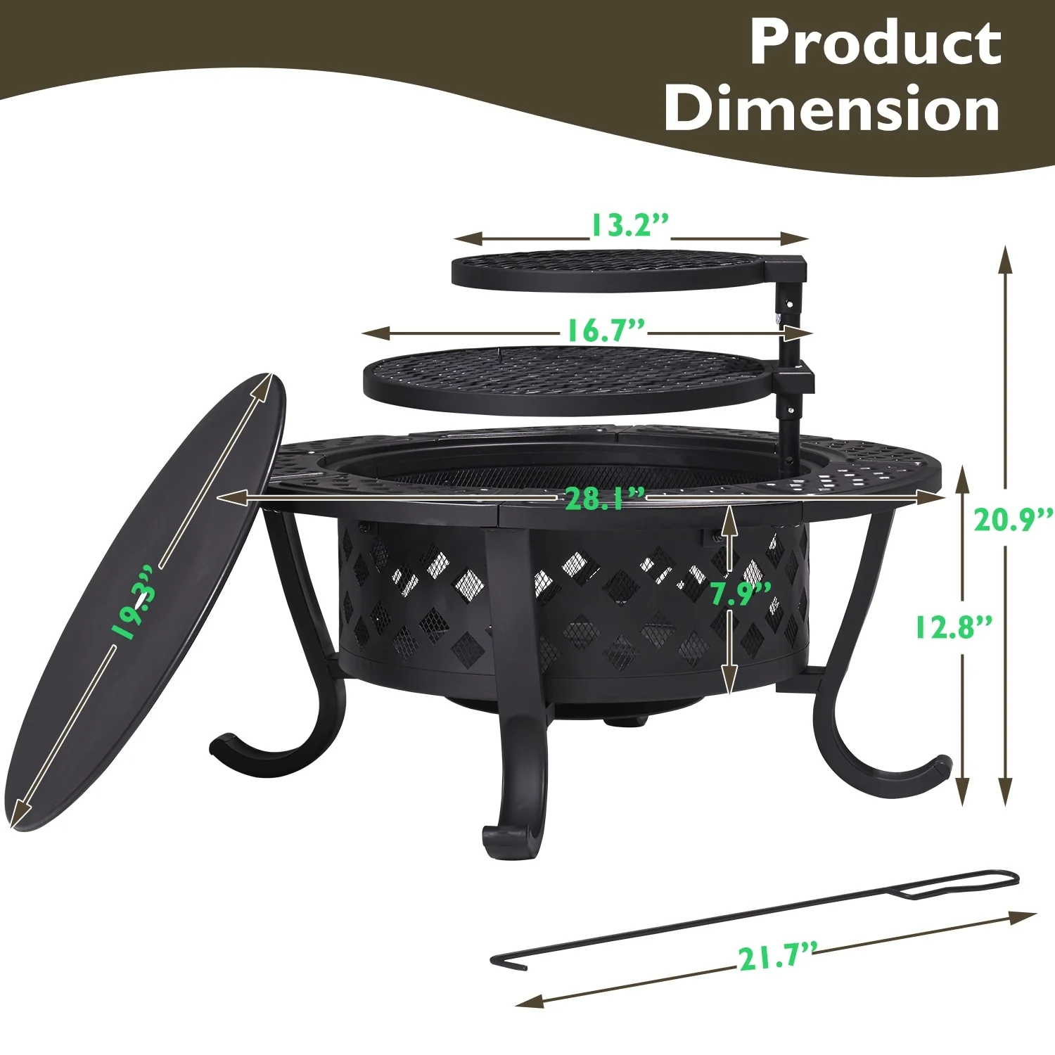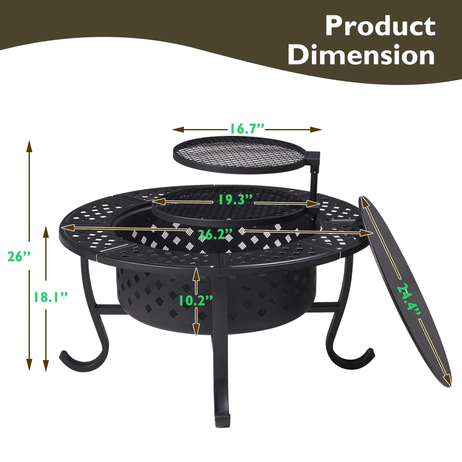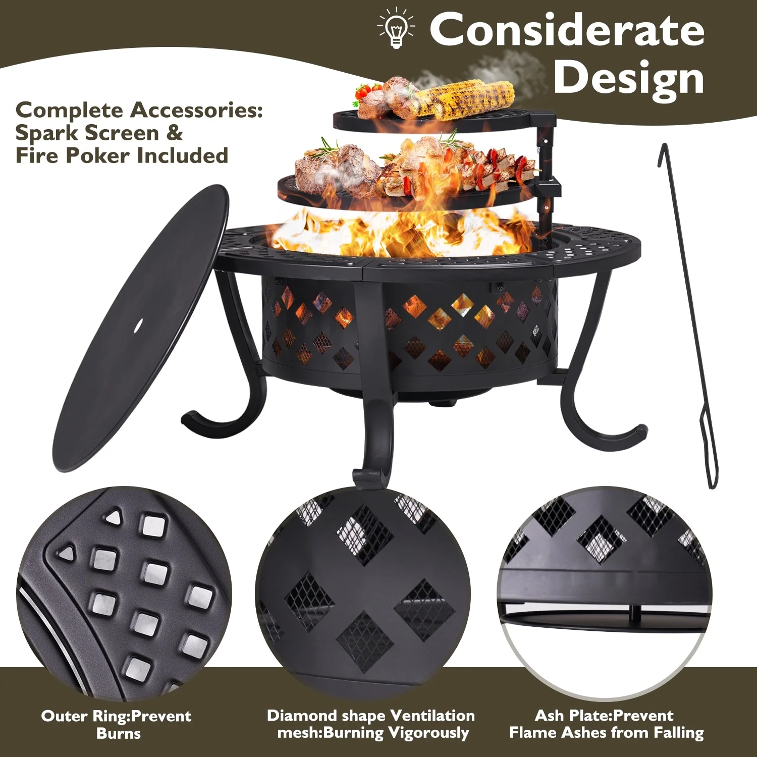 18 IN. Outdoor Fire Pit Wood Burning Fire Pits With Cover and Fire Poker For Outside Patio