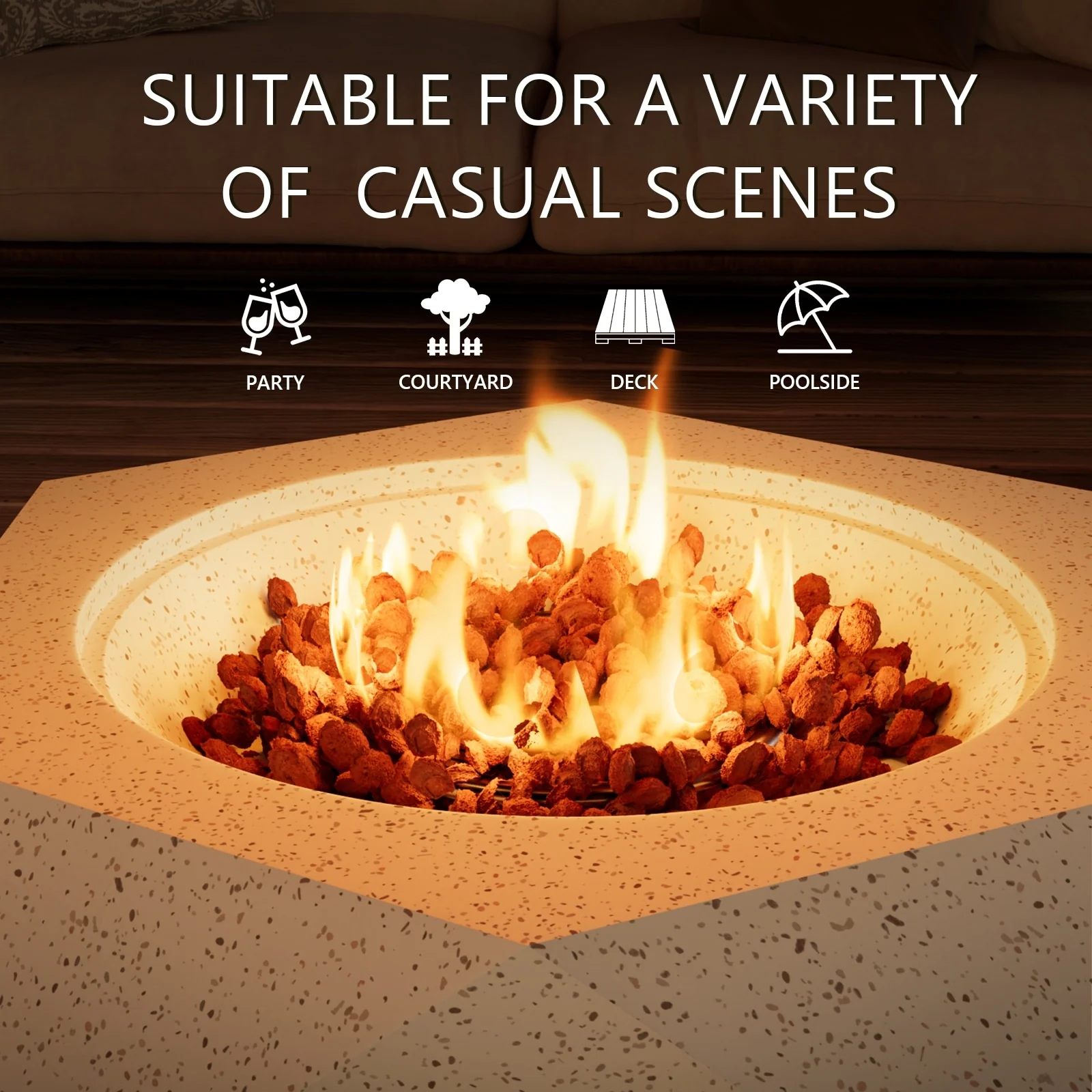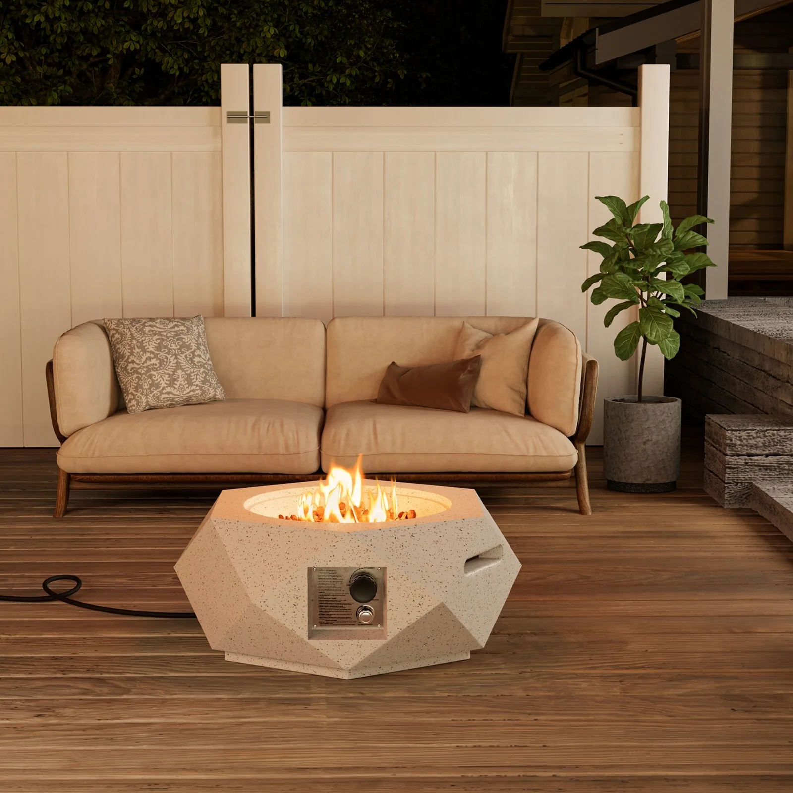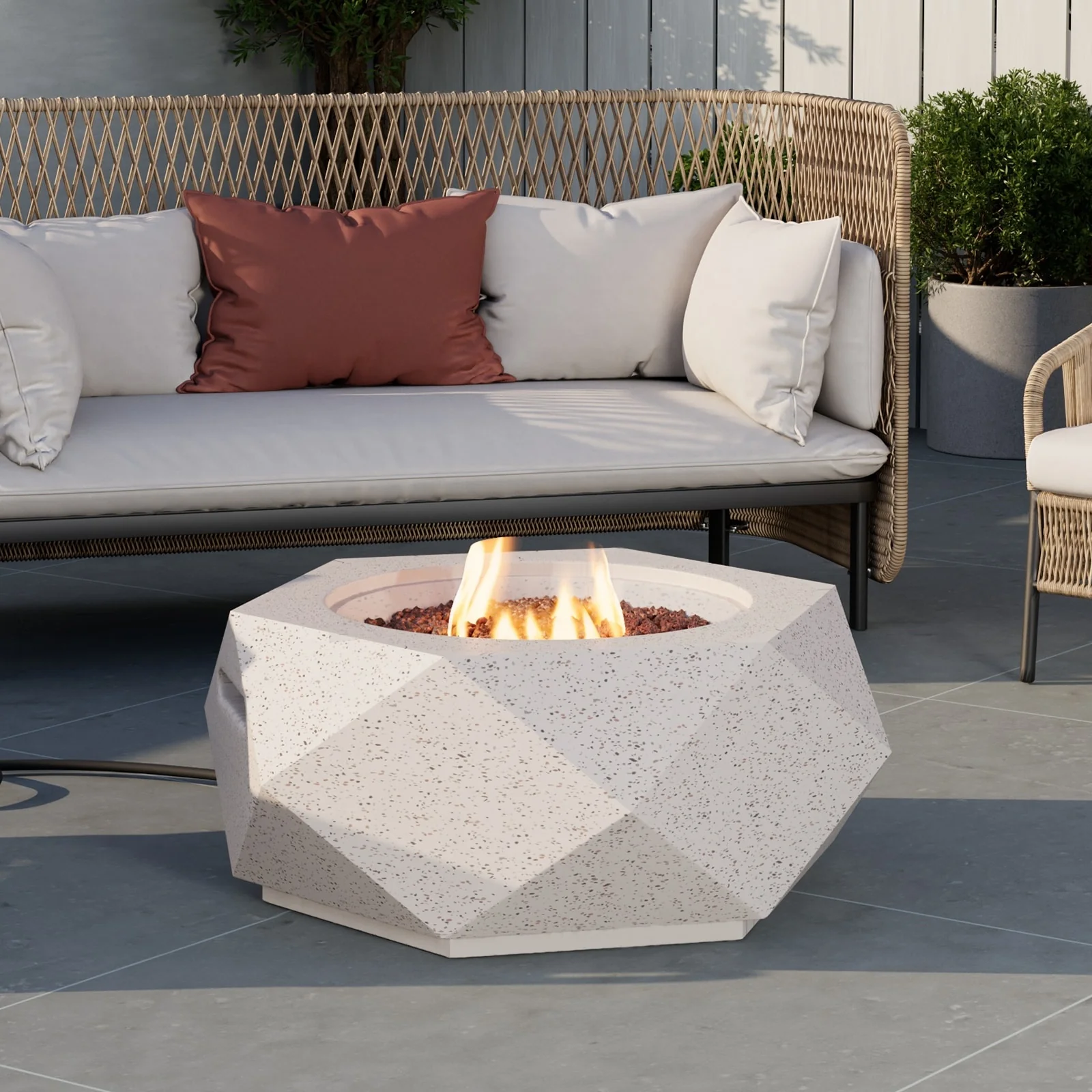 Hexagonal Terrazzo Outdoor Firepit Table