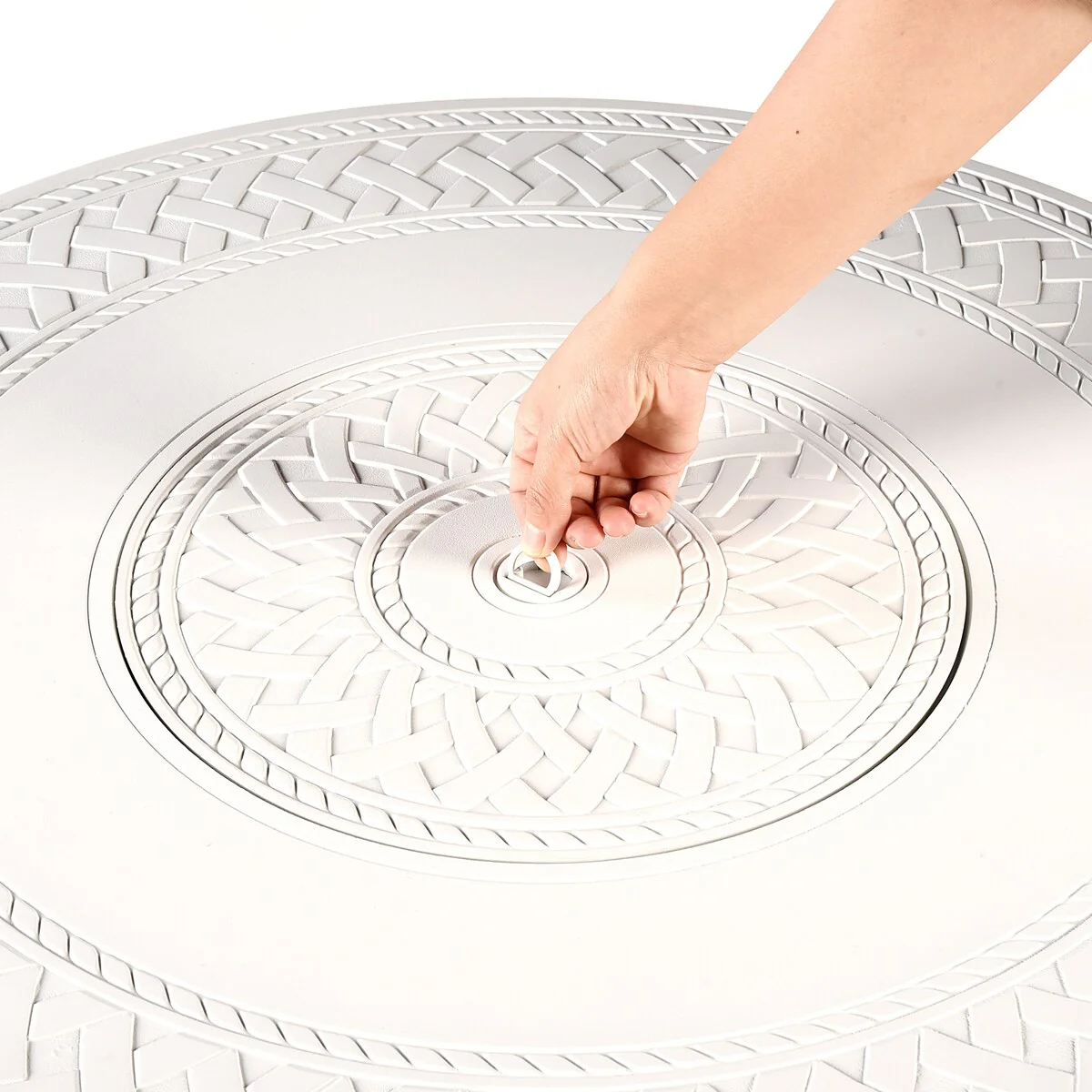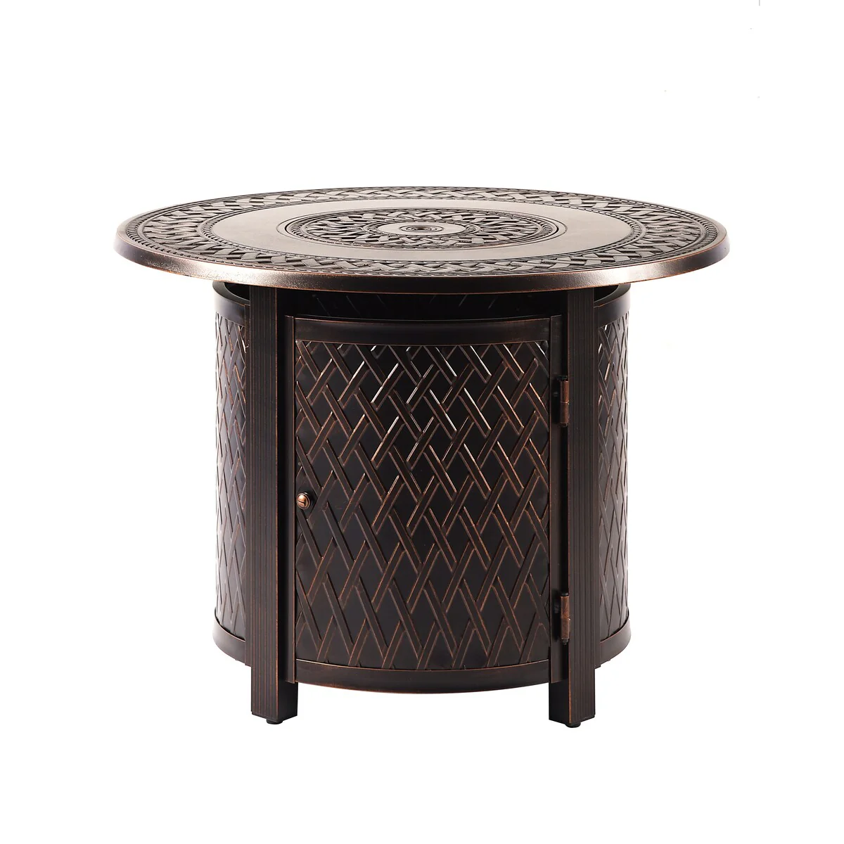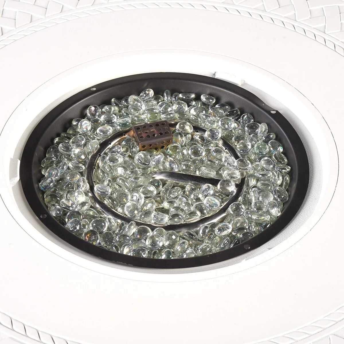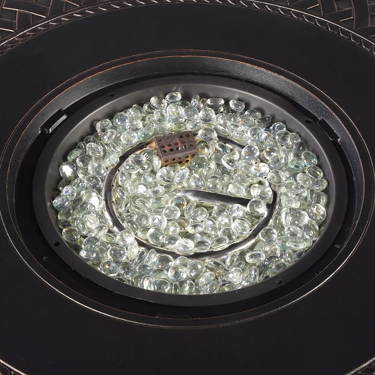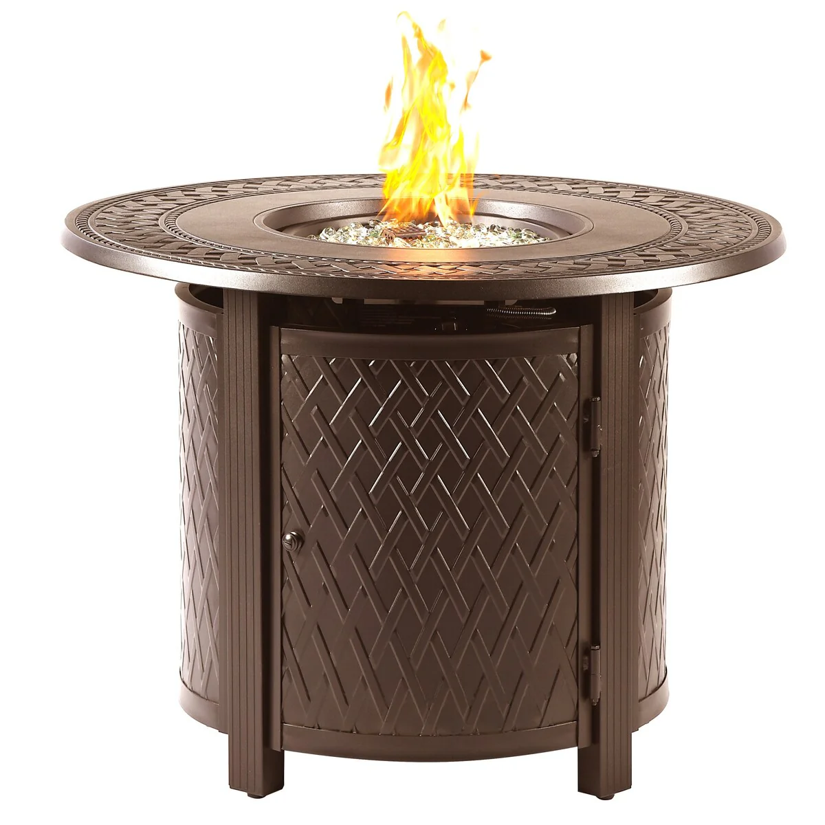 Round 34 in. x 34 in. Aluminum Propane Fire Pit Table with Glass Beads, Two Covers, Lid, 37,000 BTUs - N/A