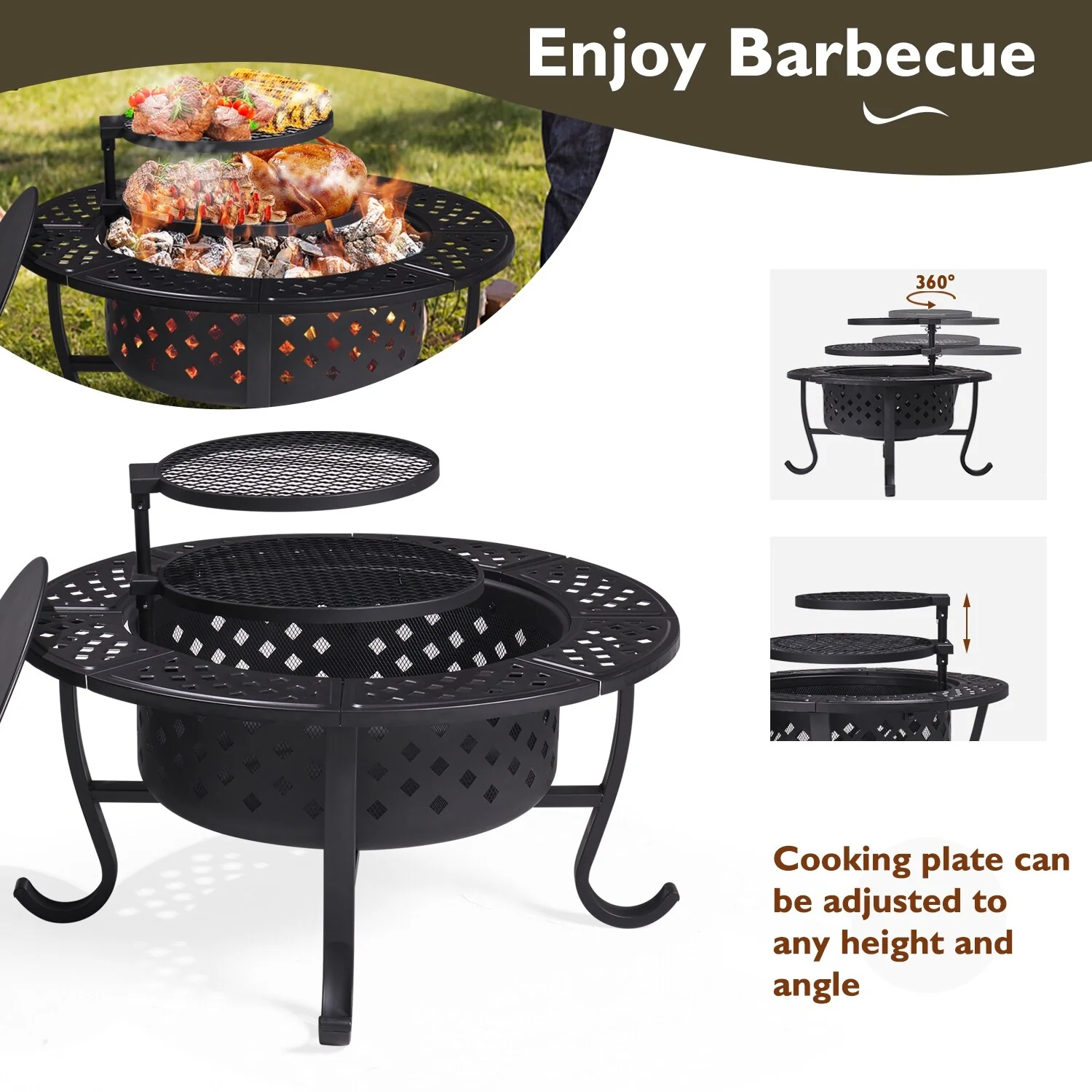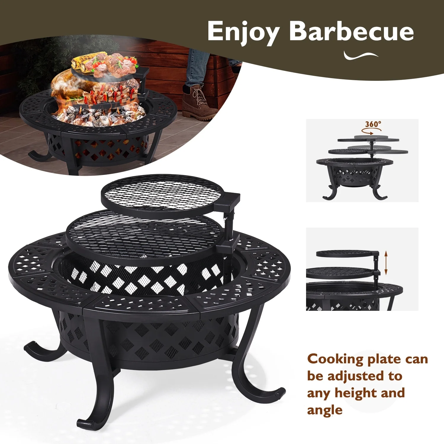 Aoxun 28" Outdoor Wood Burning Fire Pit