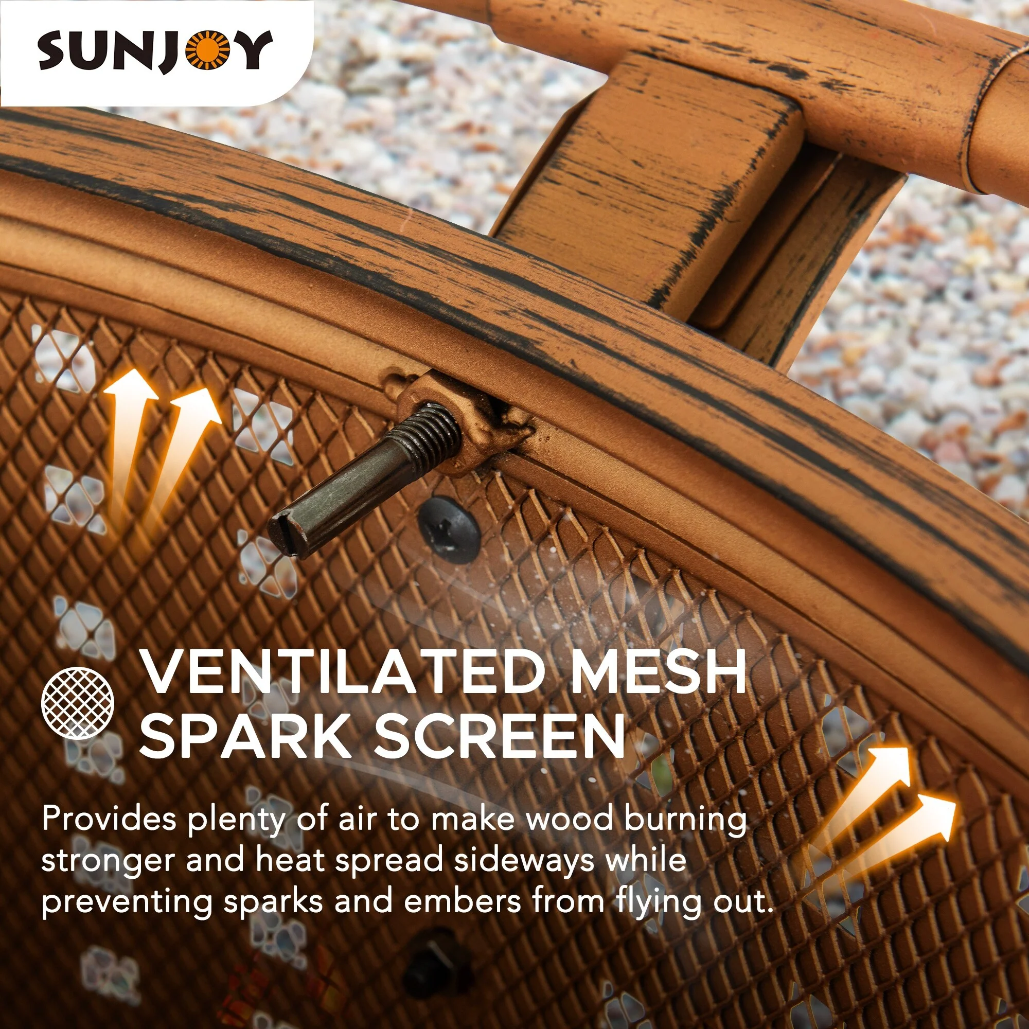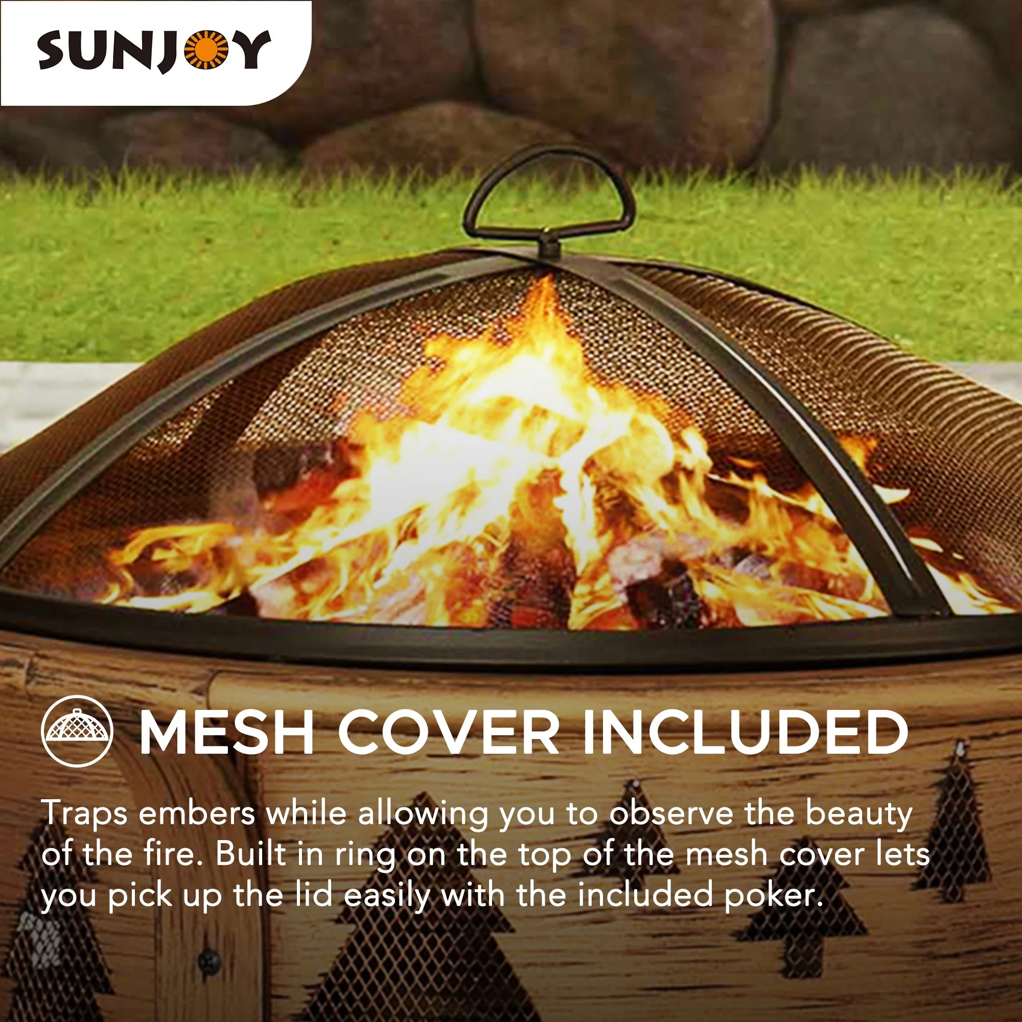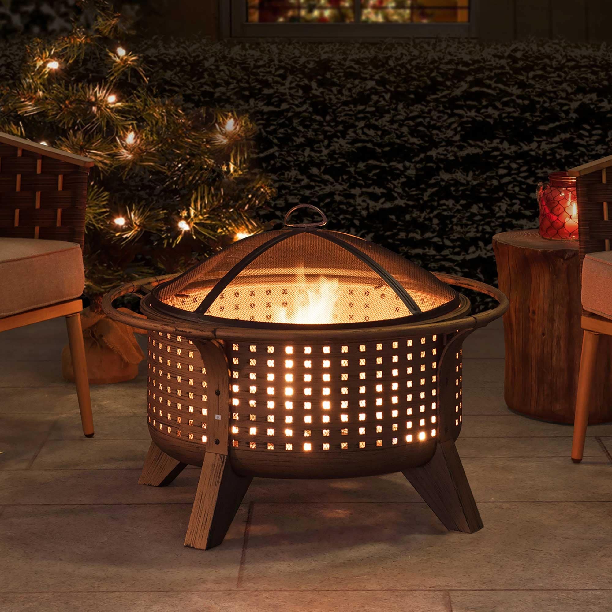 Sunjoy 30 in. Outdoor Wood-Burning Fire Pit, Patio Woven Round Steel Firepit Outside with Spark Screen and Poker - N/A
