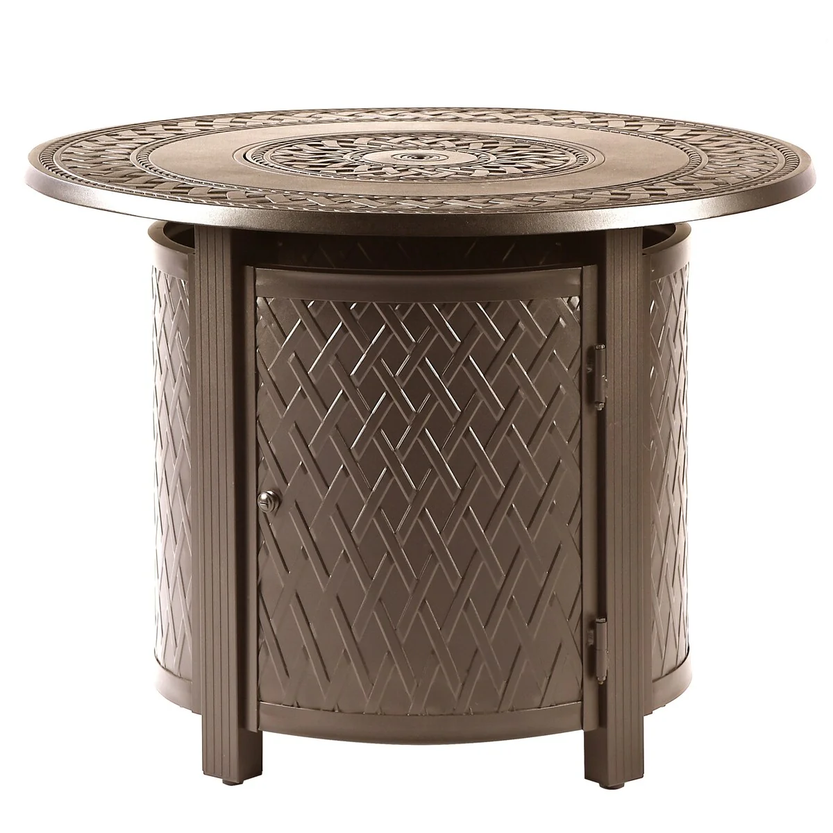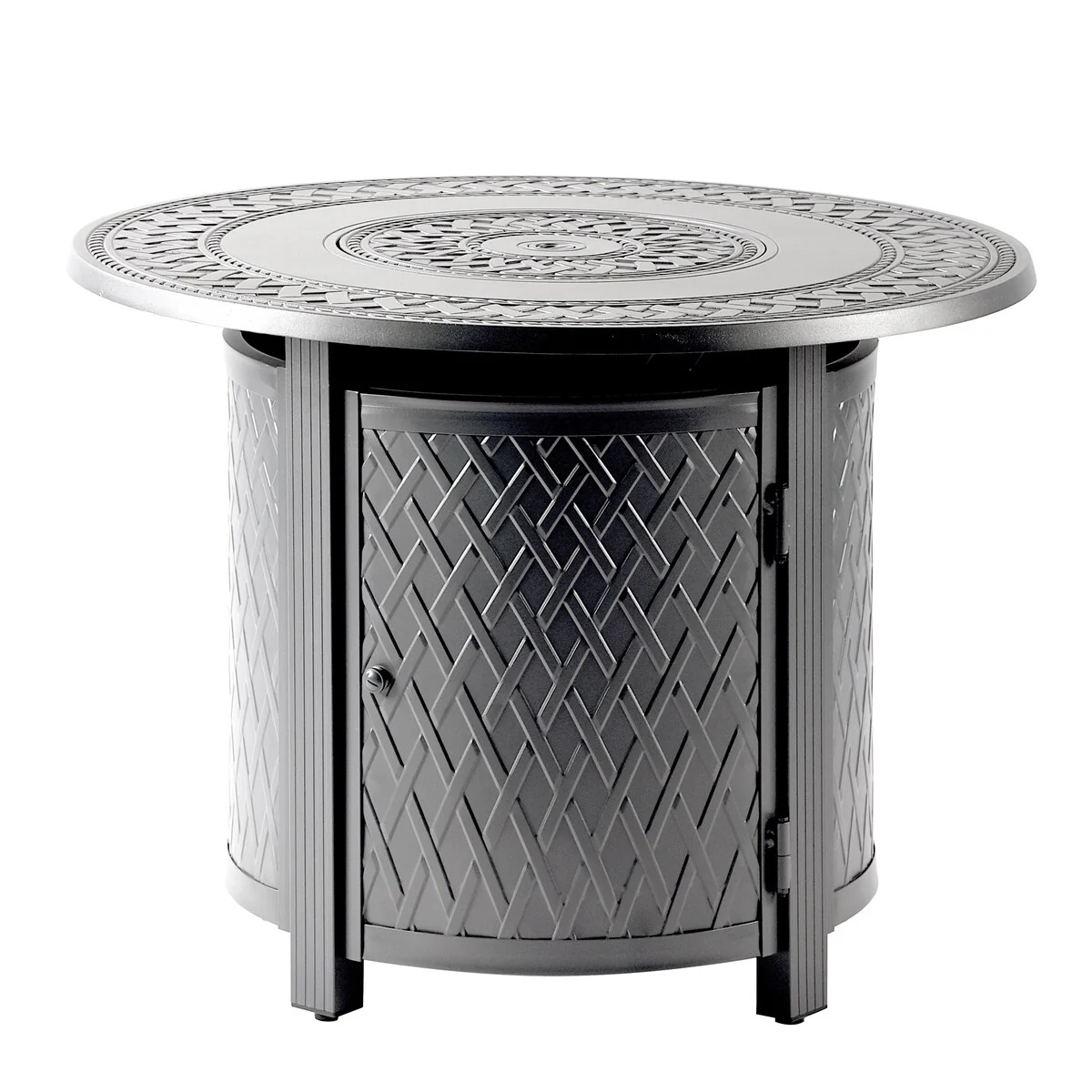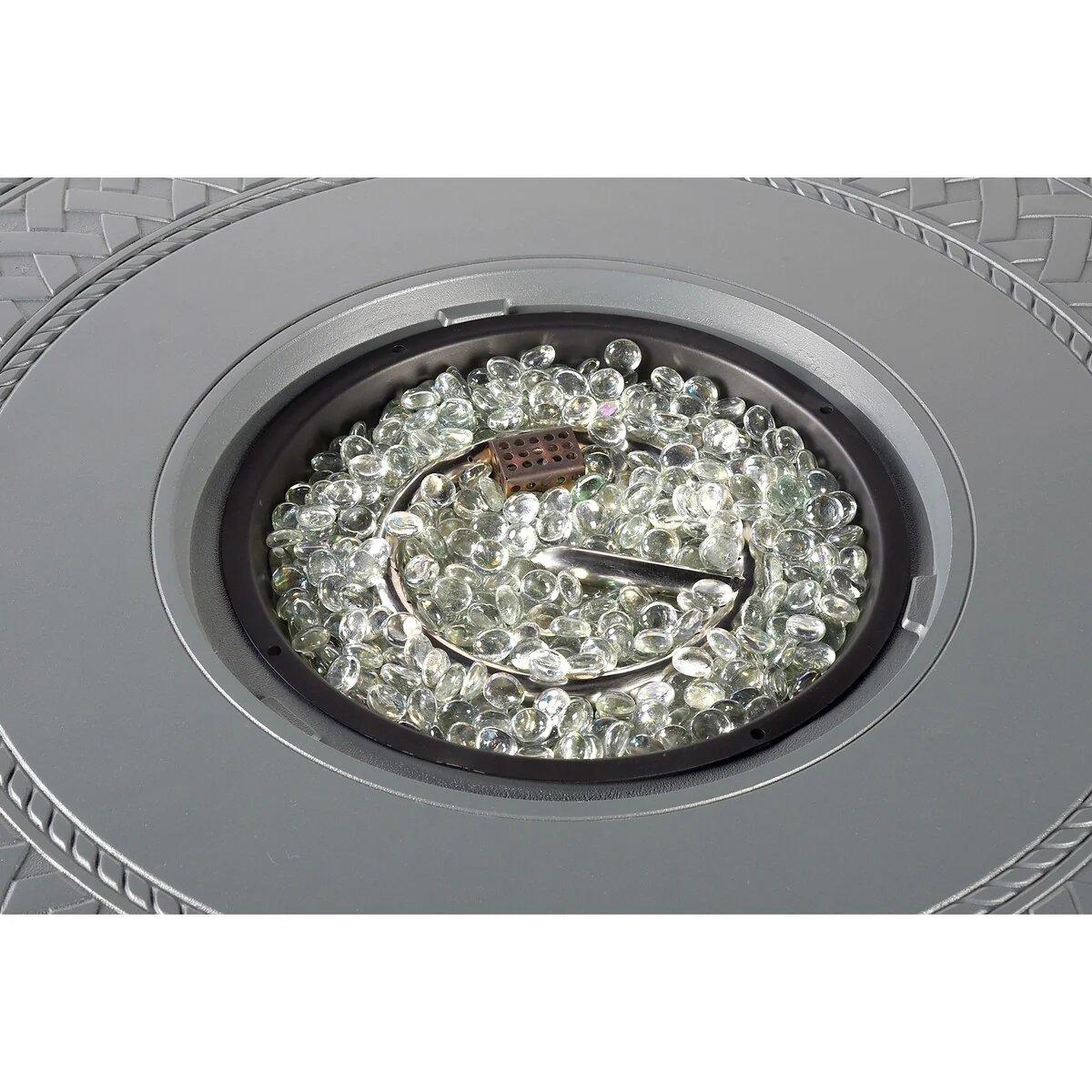 Round 44 in. x 44 in. Aluminum Propane Fire Pit Table with Glass Beads, Two Covers, Lid, 55,000 BTUs - N/A