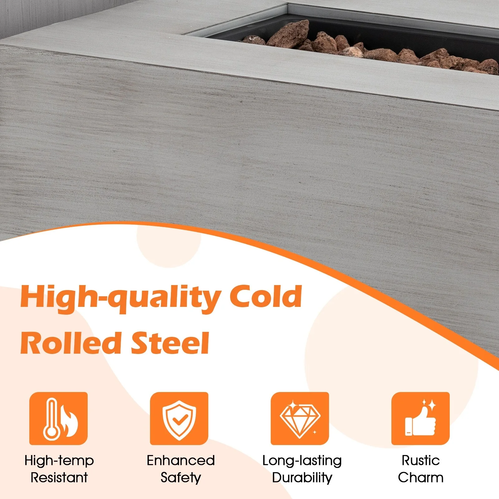 48_inch Iron Fire Pit Table with Wood Grain