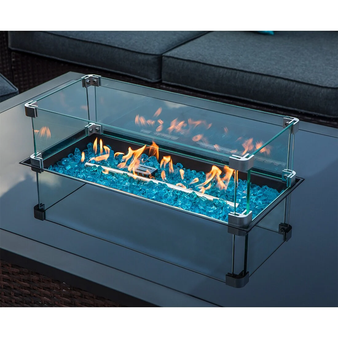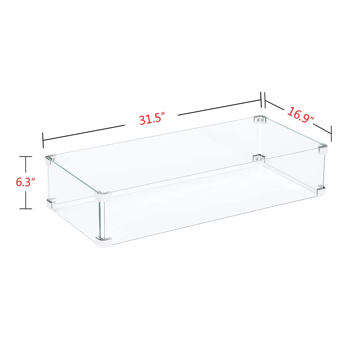 Rectangle 31.5-in X 16.9-in Tempered Glass Fire Table Windshield Flame Blocker - 31.5