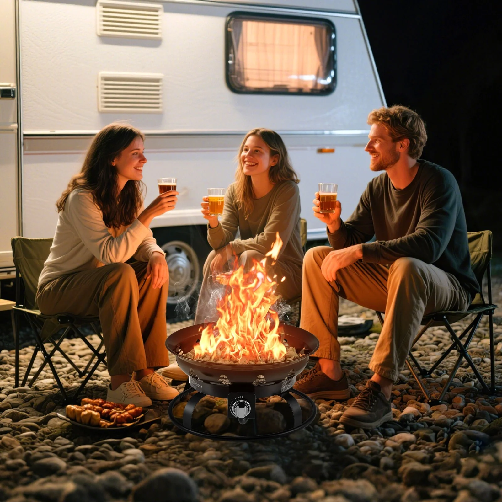 21 Inch Diameter Propane Gas Fire Pit Patio Portable Fire Bowl-Black - Multi