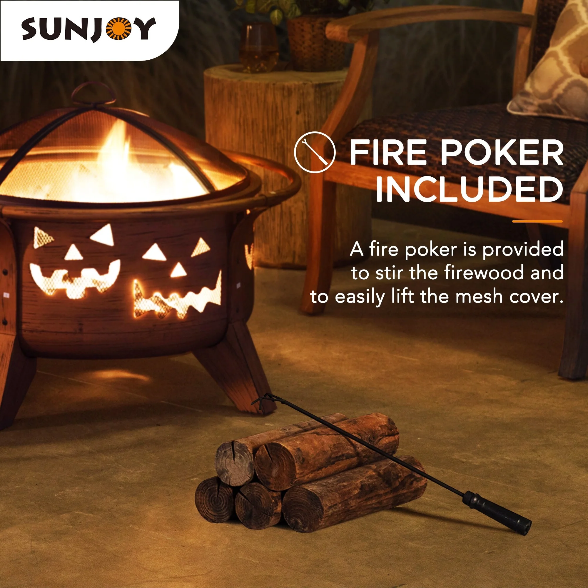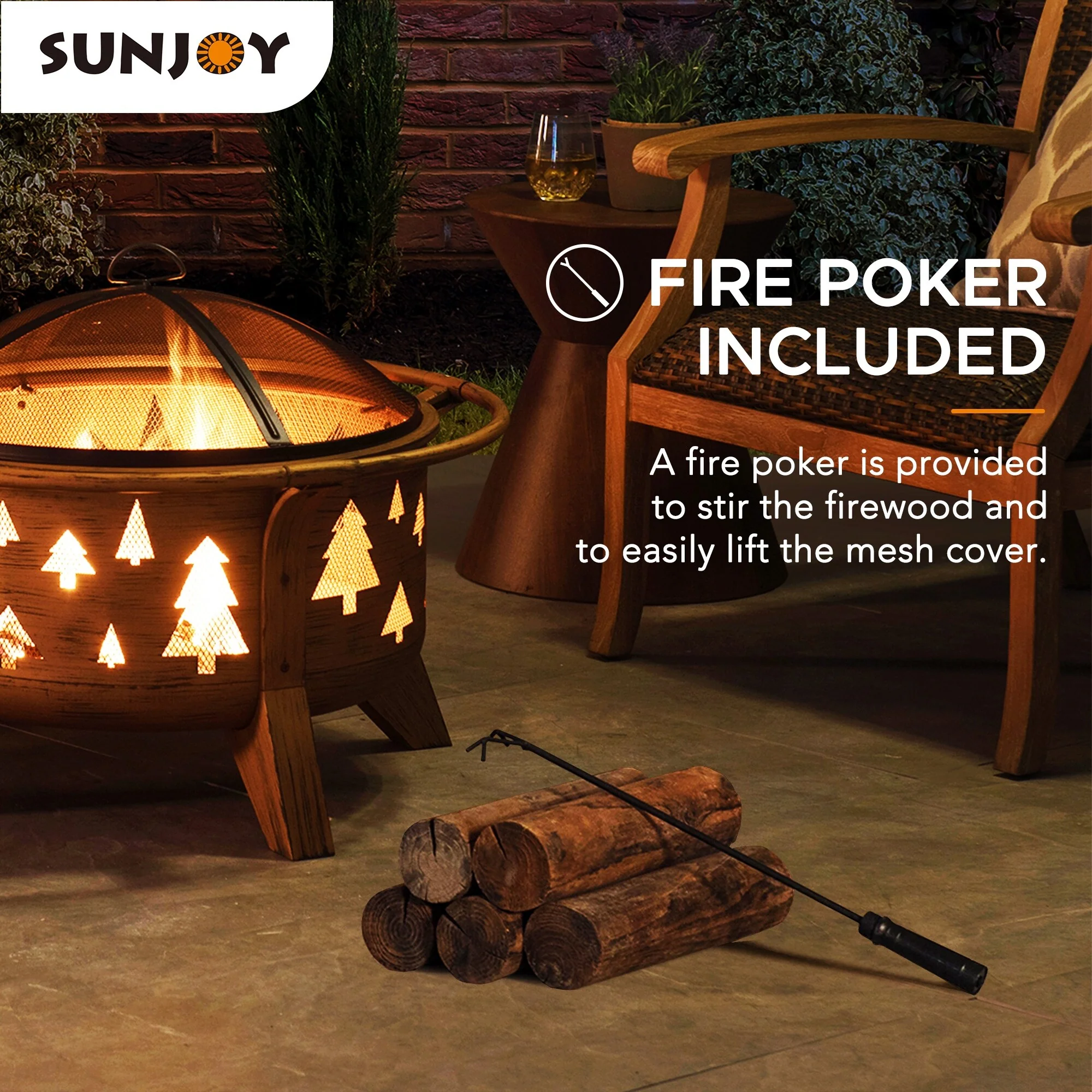 Sunjoy 38 In Outdoor Portable Wood Burning Fireplace Smokeless Fire Pit with PVC Cover and Fire Poker