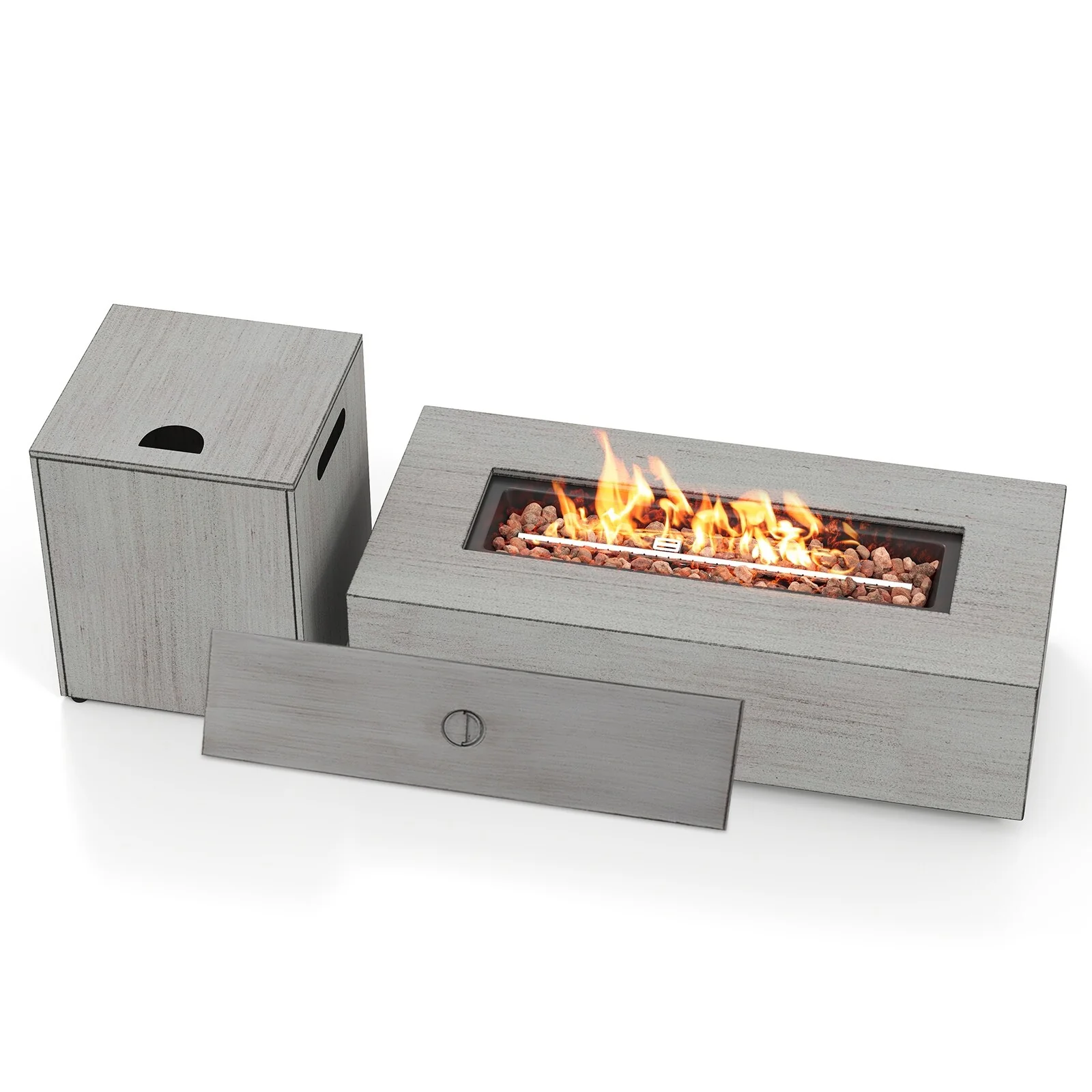 19.5 in. W x 29 in. H Square Stone Propane Gas Burning Outdoor Fire Pits in Gray