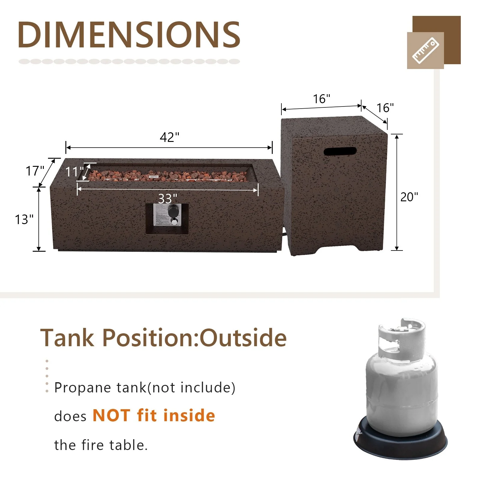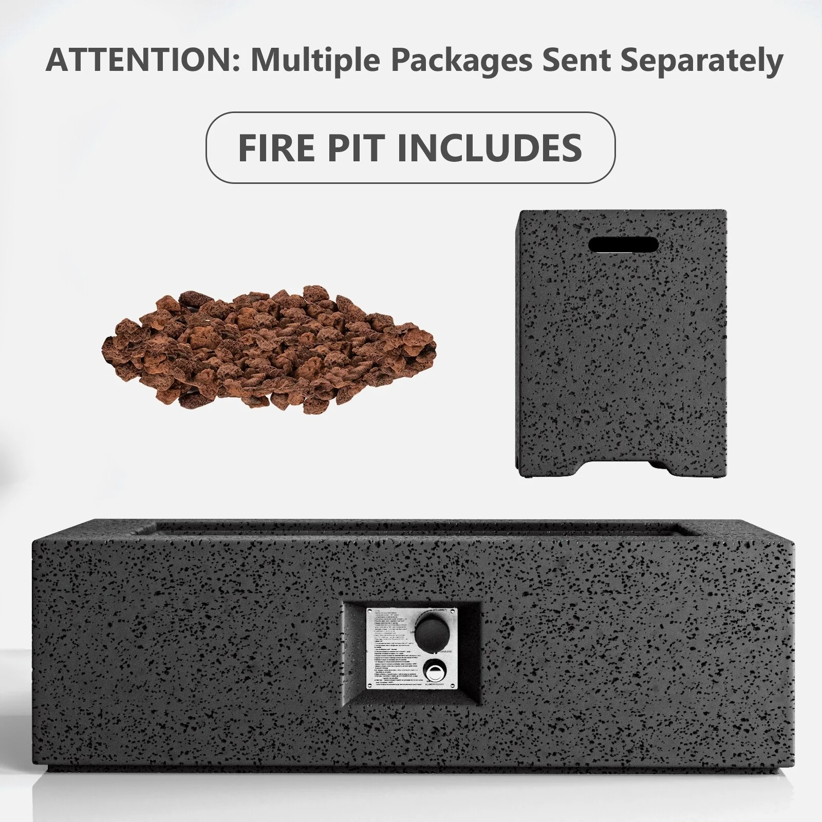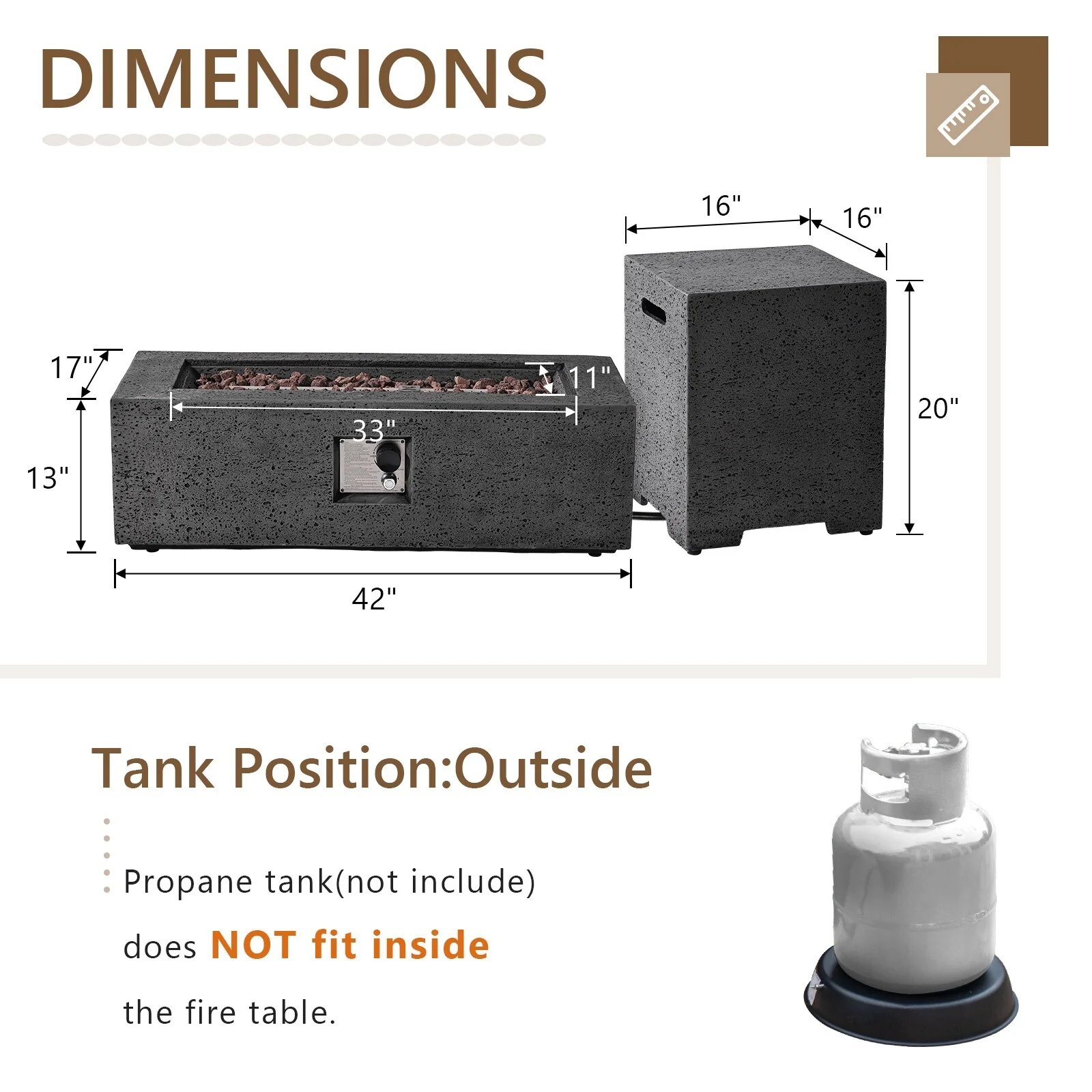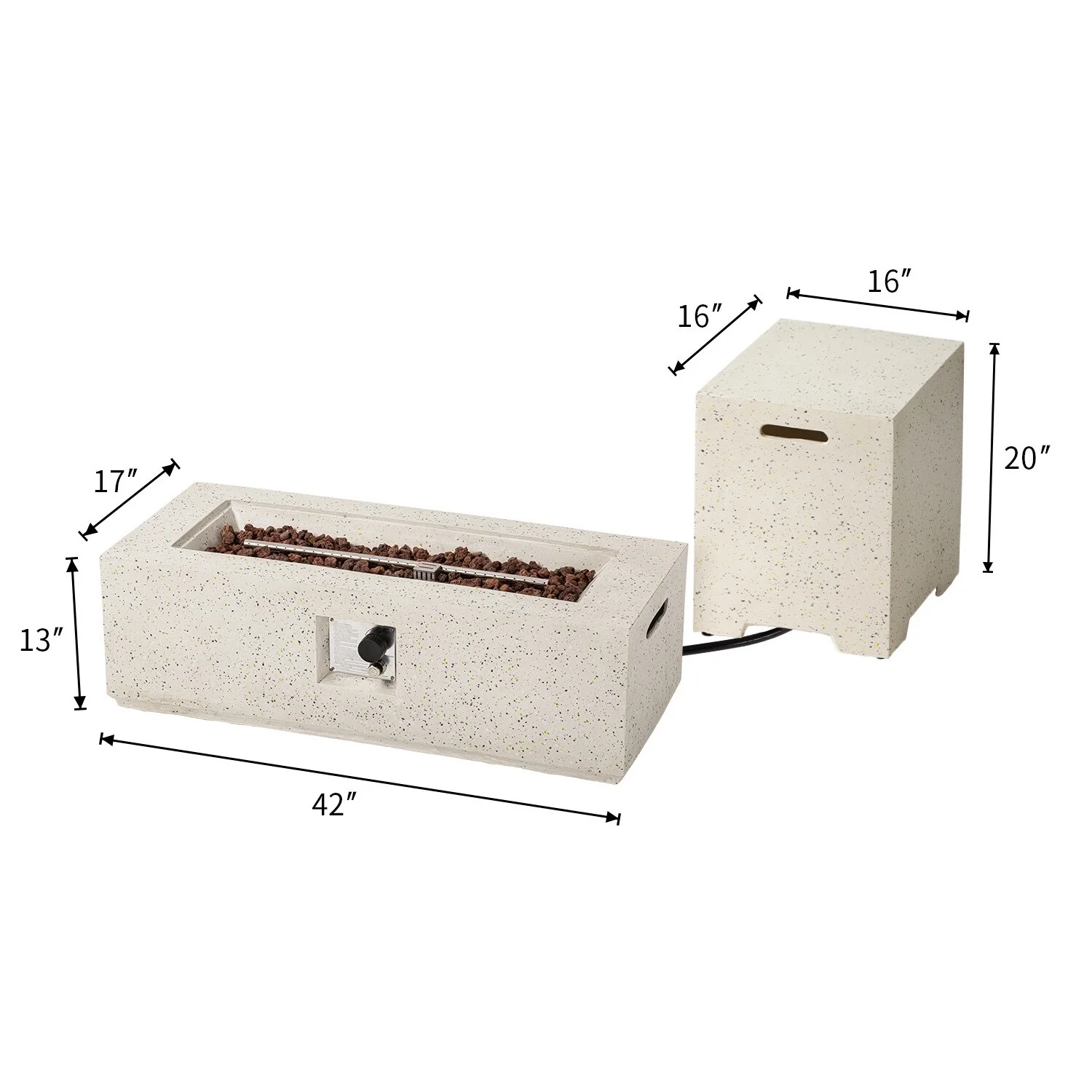 AVAWING 2-Piece 42" Rectangle Concrete Fire Pit Table with Tank Holder