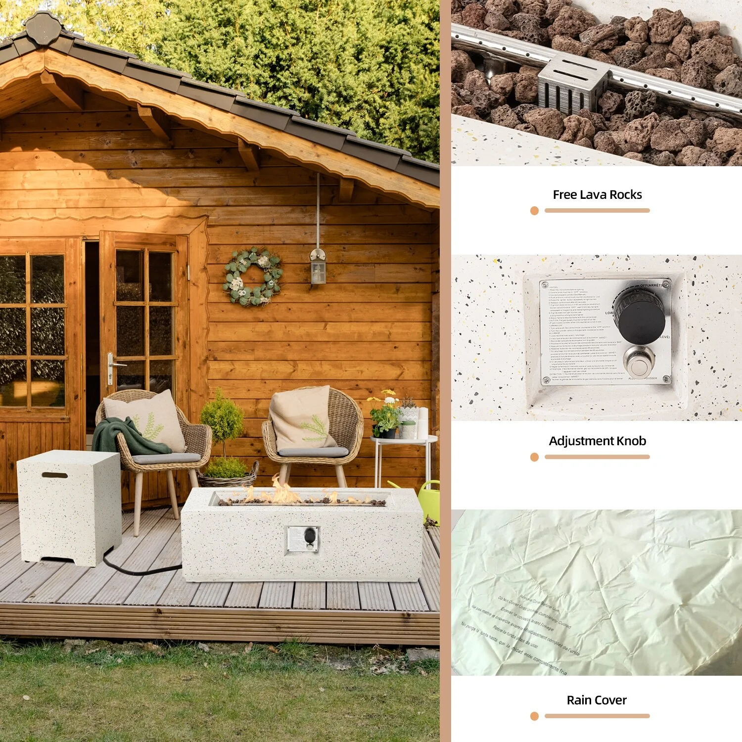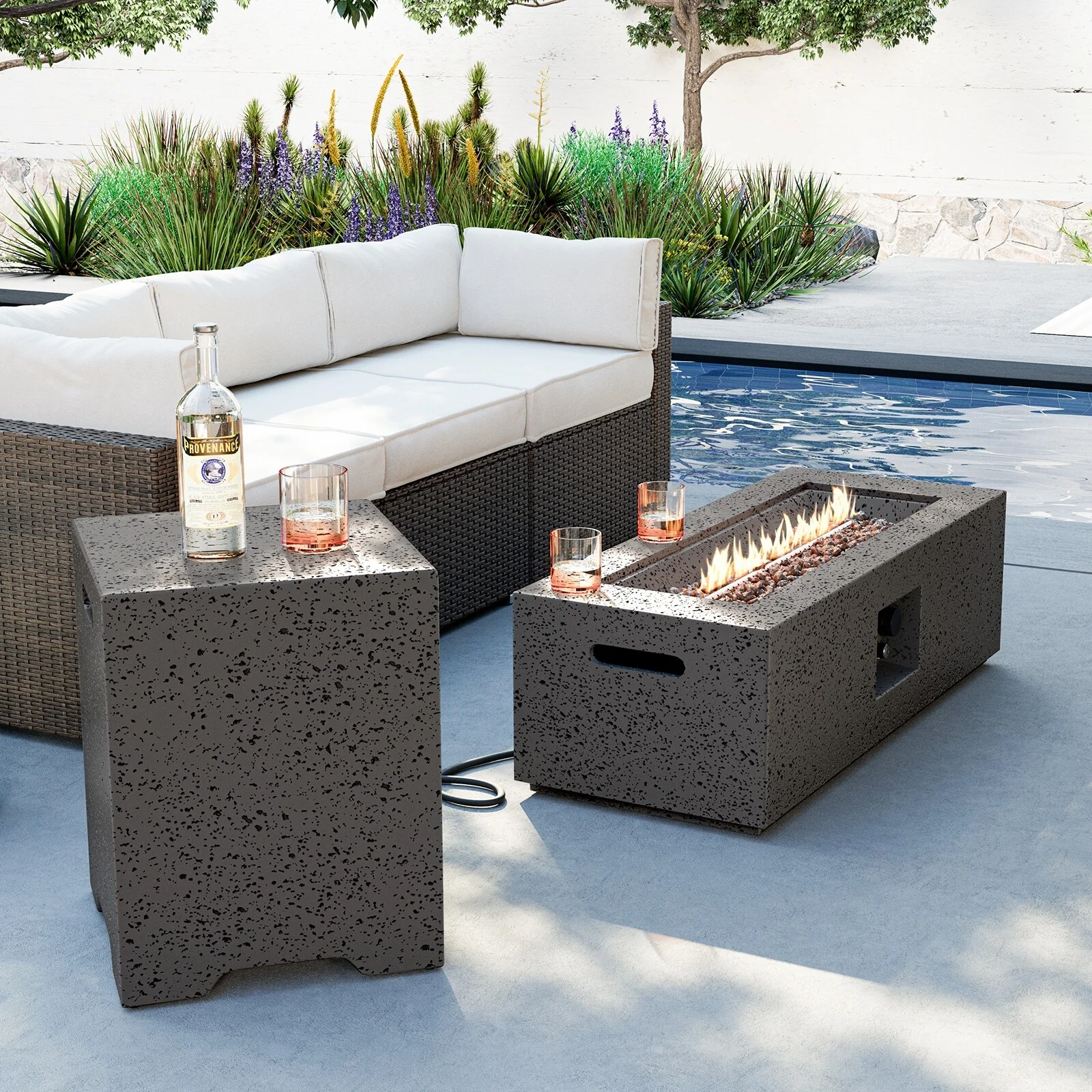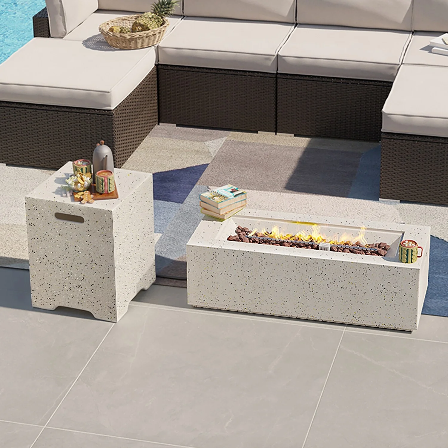 AVAWING 2-Piece 42" Rectangle Concrete Fire Pit Table with Tank Holder